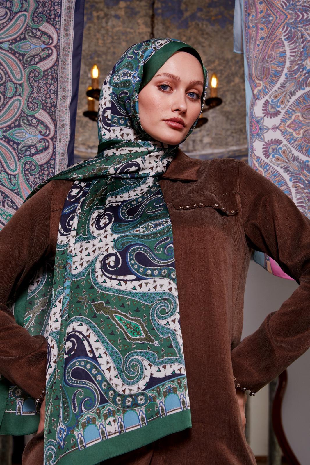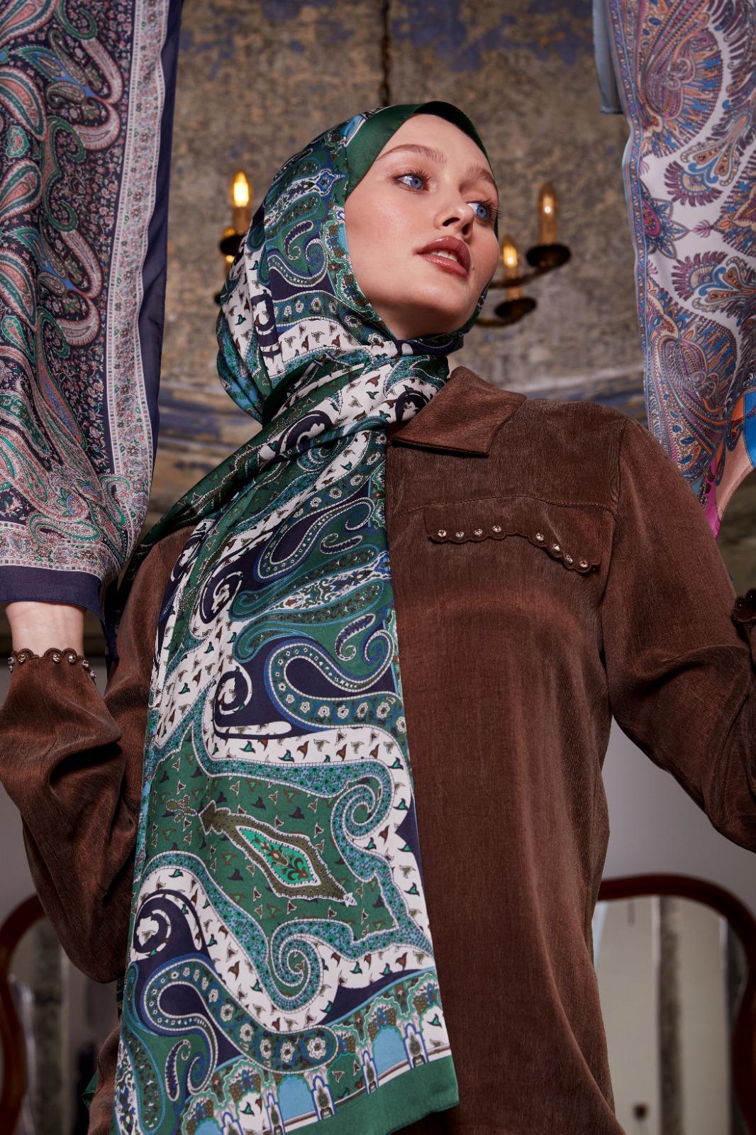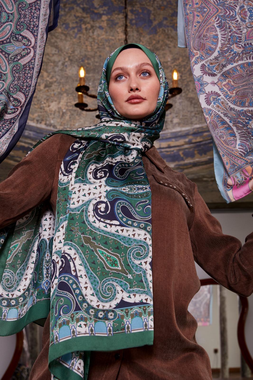 Luven 11776 Sara Hint İpeği Şal - Yeşil (365195817)