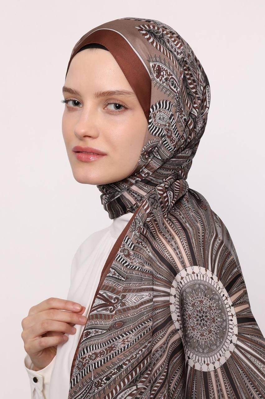 Luven 11855 Luven Sara Hint İpeği Şal - Açık Kahve (365195818)