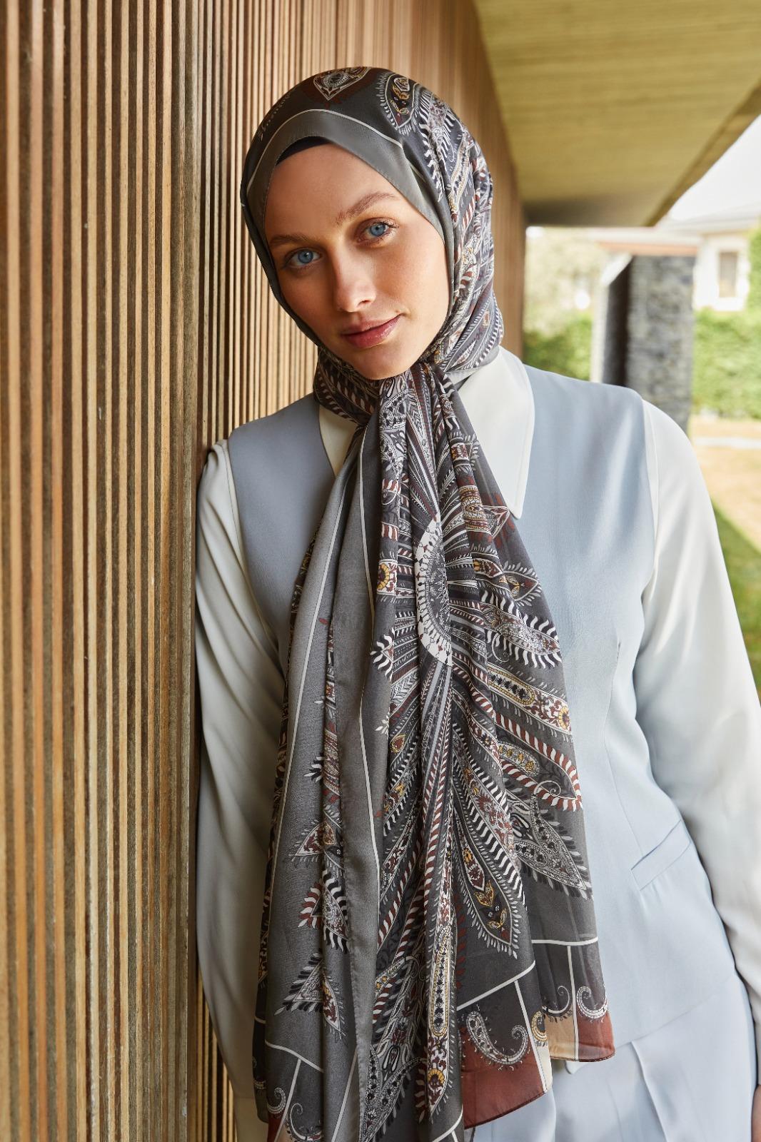 Luven 11855 Luven Sara Hint İpeği Şal - Gri (365195818)