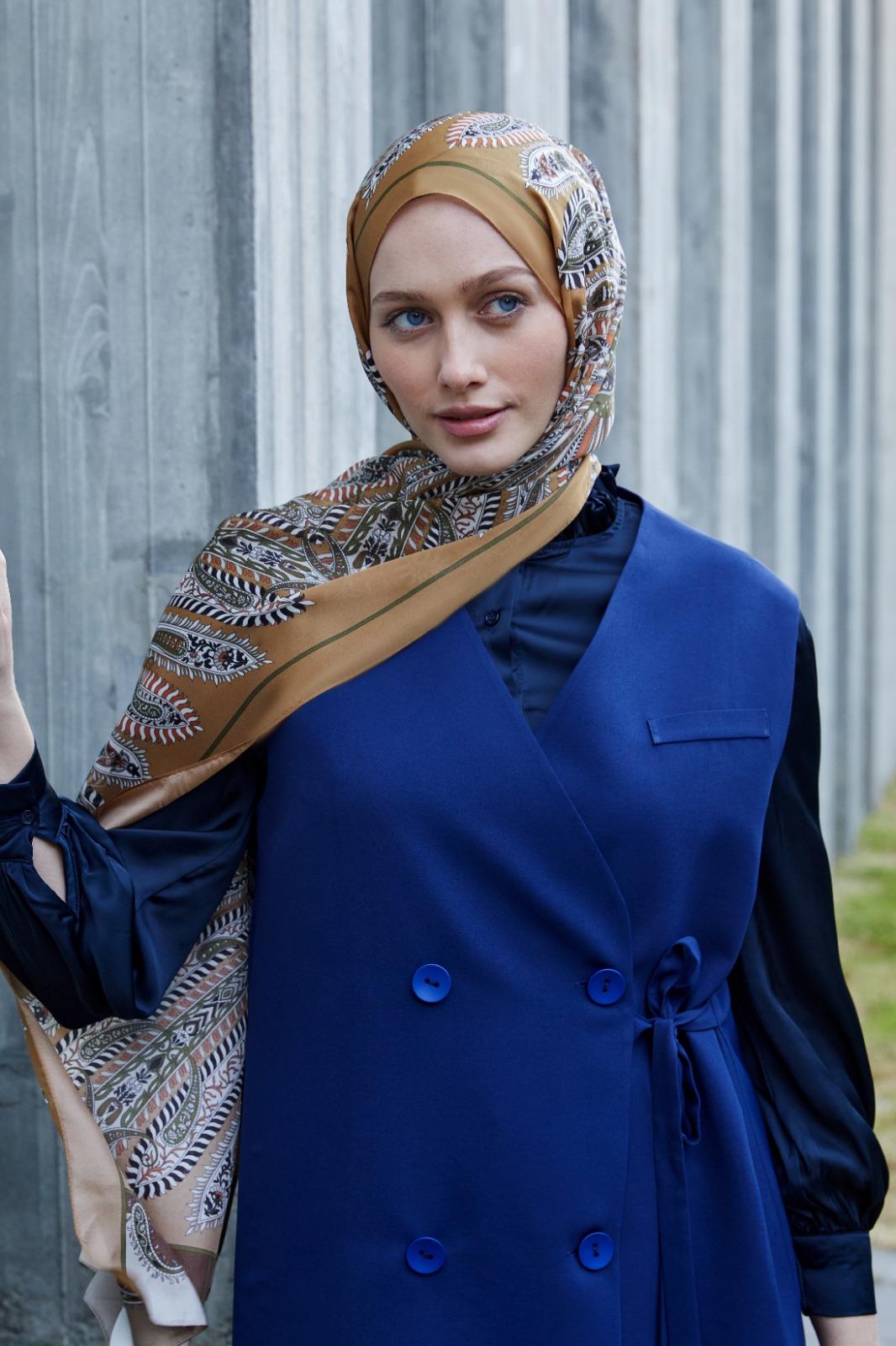 Luven 11855 Luven Sara Hint İpeği Şal - Safran (365195818)