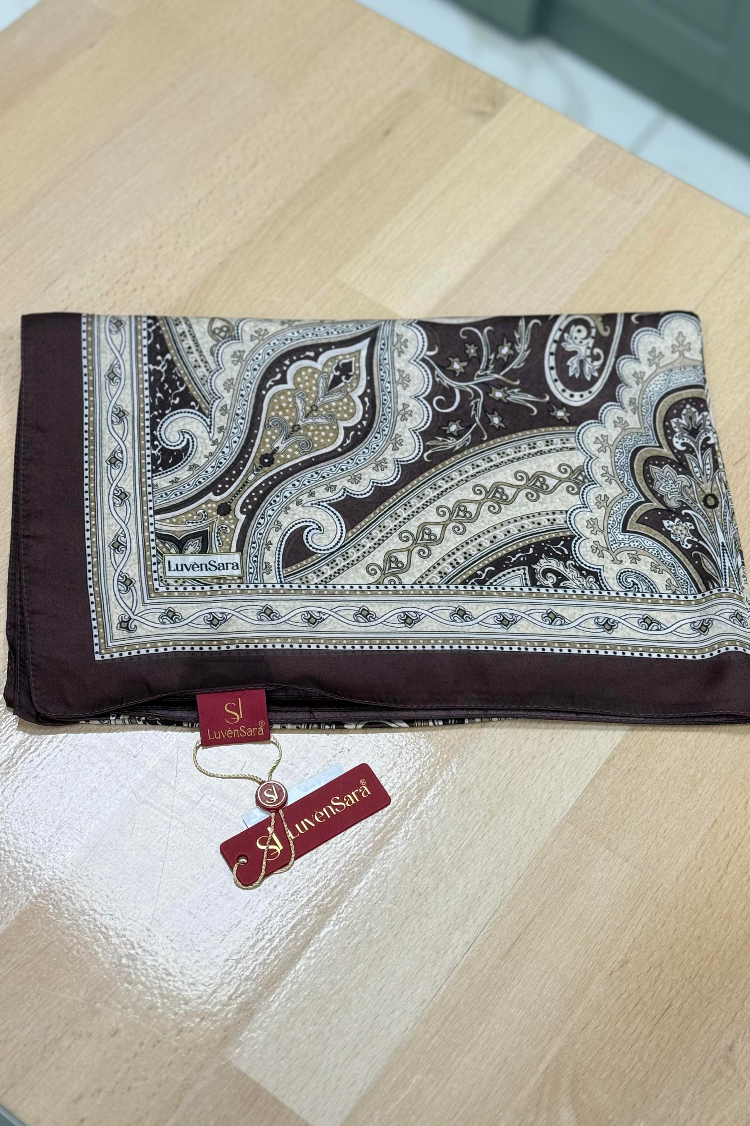 Luven Sara 11842 Hint İpeği Şal - Kahve