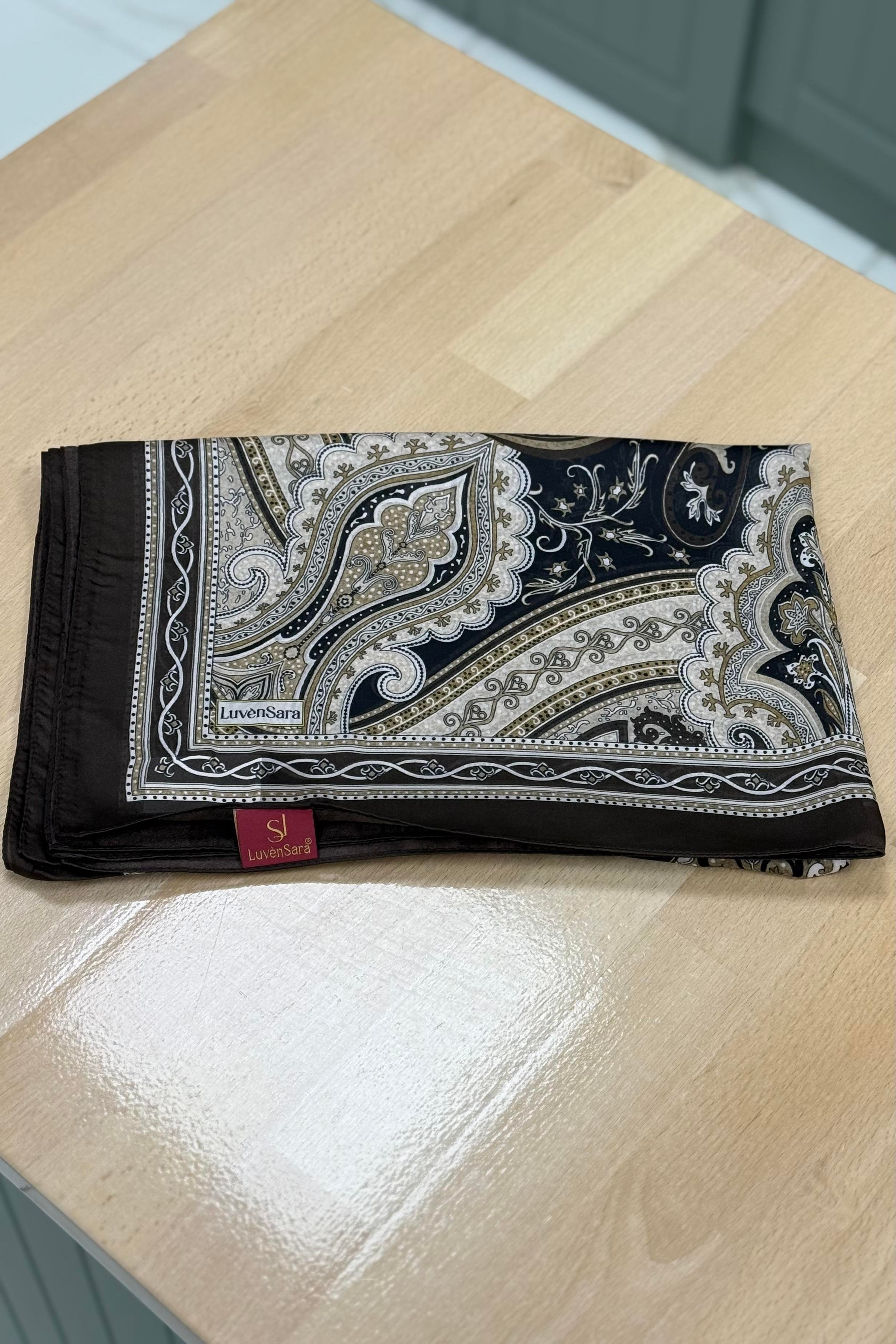 Luven Sara 11842 Hint İpeği Şal - Koyu Kahve