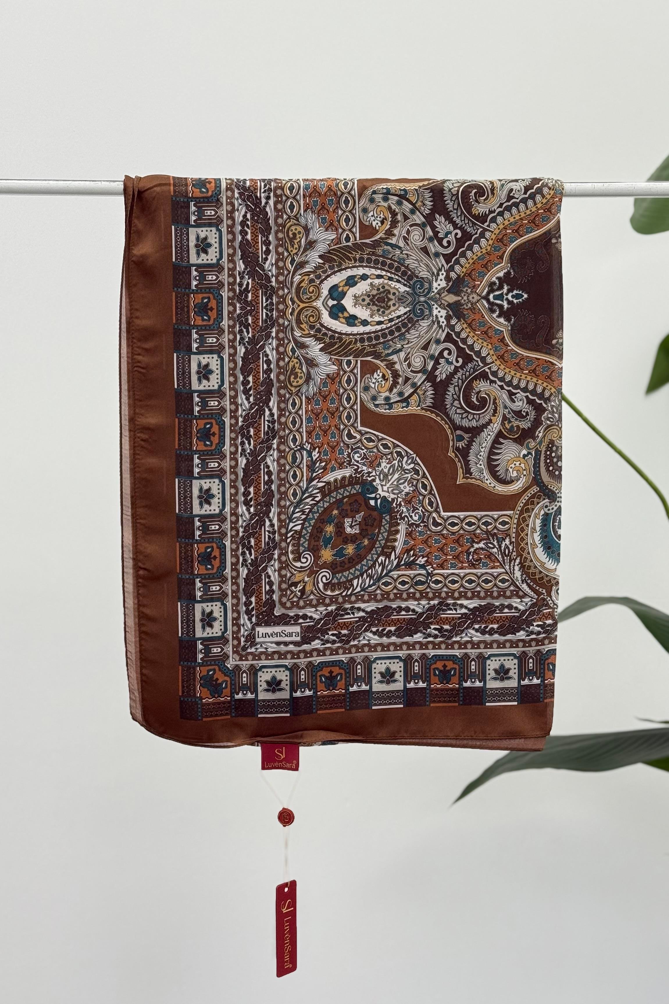Luven Sara 11856 Hint İpeği Şal - Acı Kahve