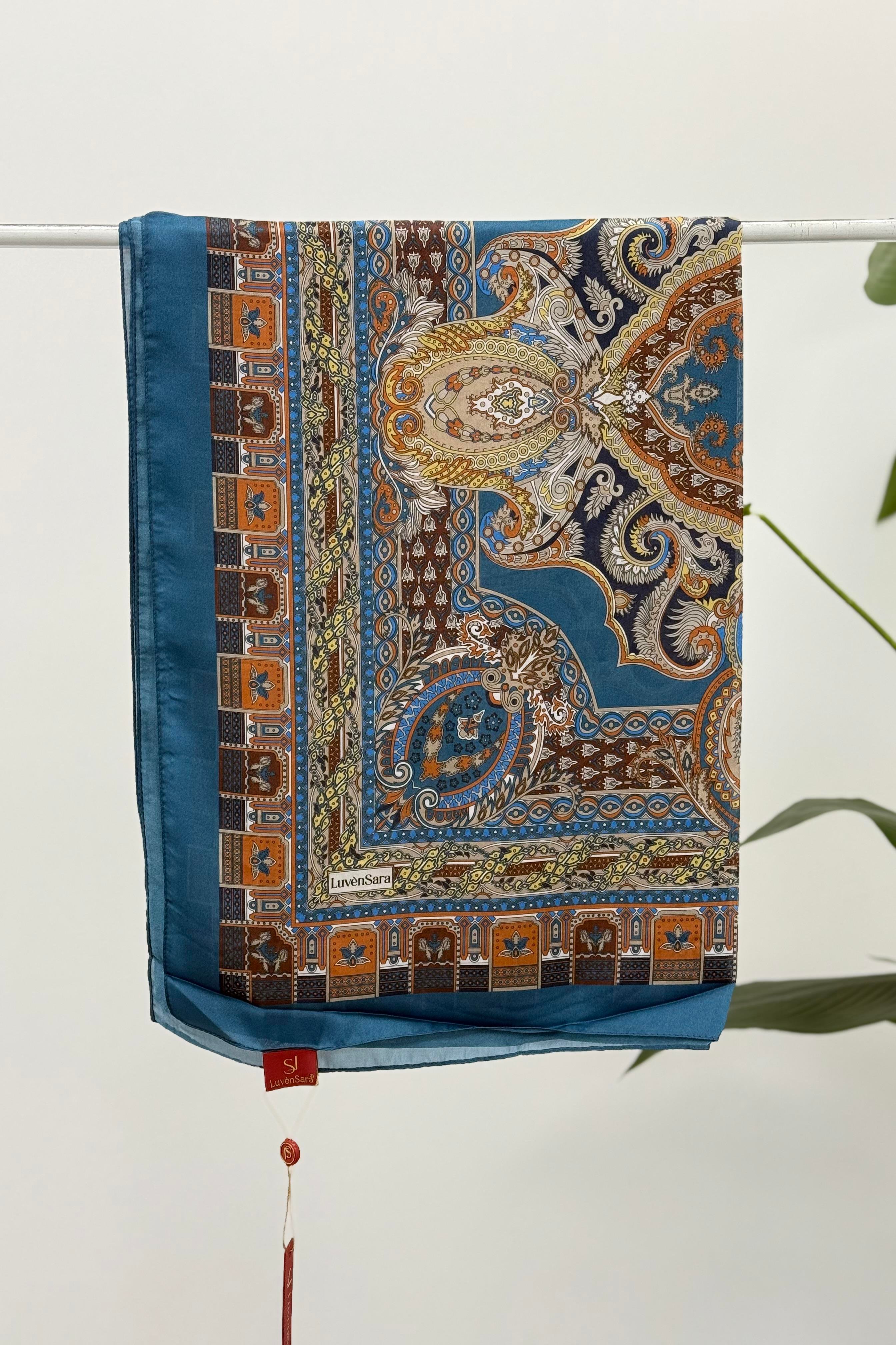 Luven Sara 11856 Hint İpeği Şal - İndigo
