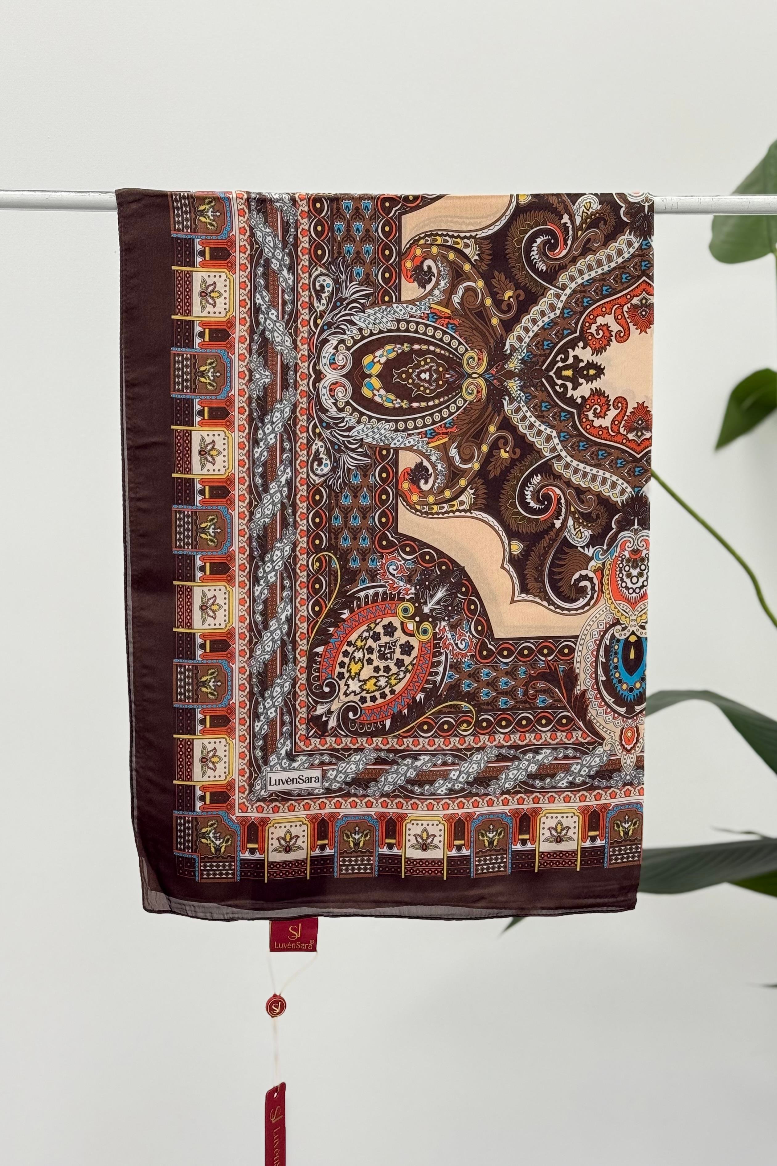 Luven Sara 11856 Hint İpeği Şal - Kahve