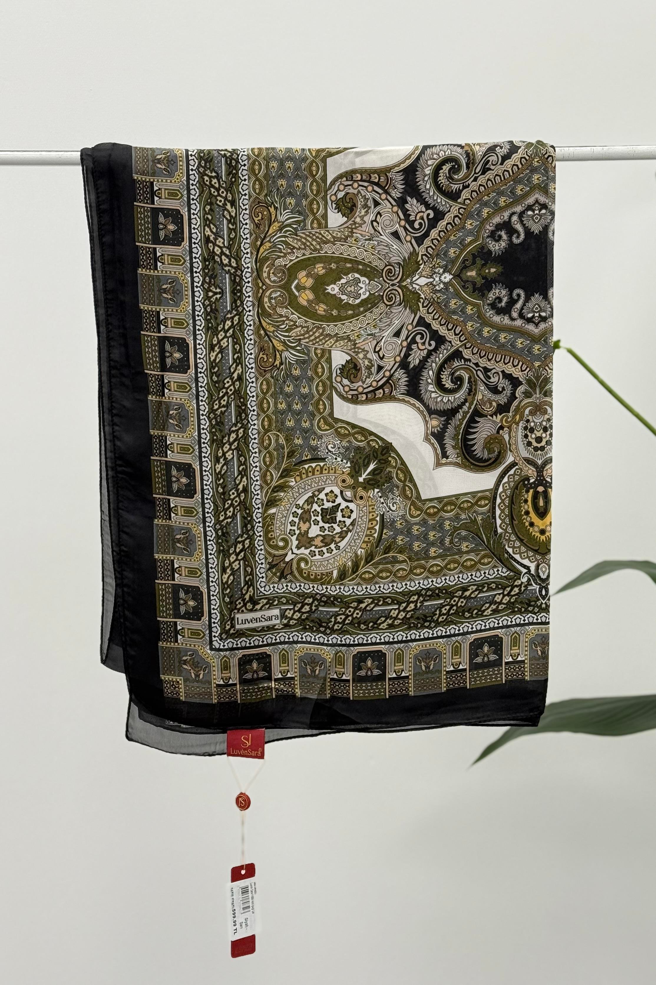 Luven Sara 11856 Hint İpeği Şal - Siyah - Sarı