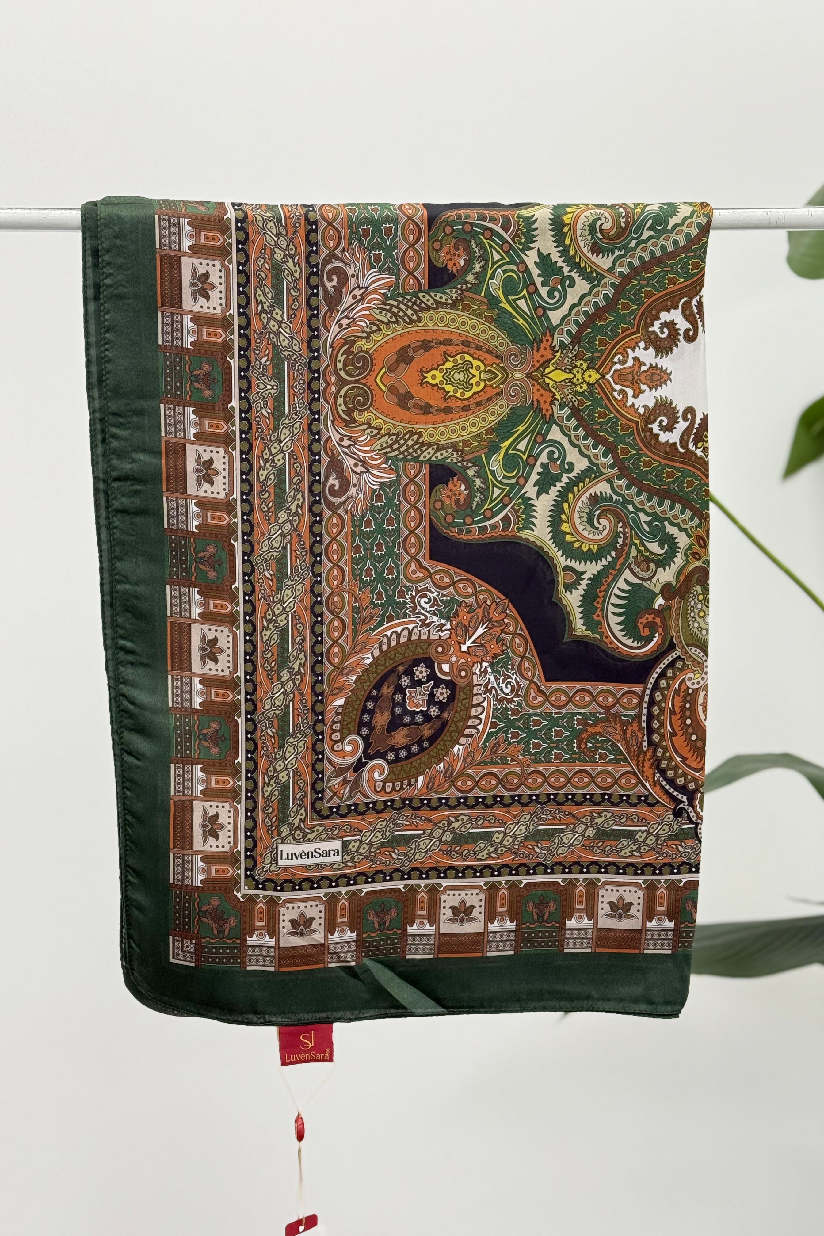 Luven Sara 11856 Hint İpeği Şal - Zümrüt