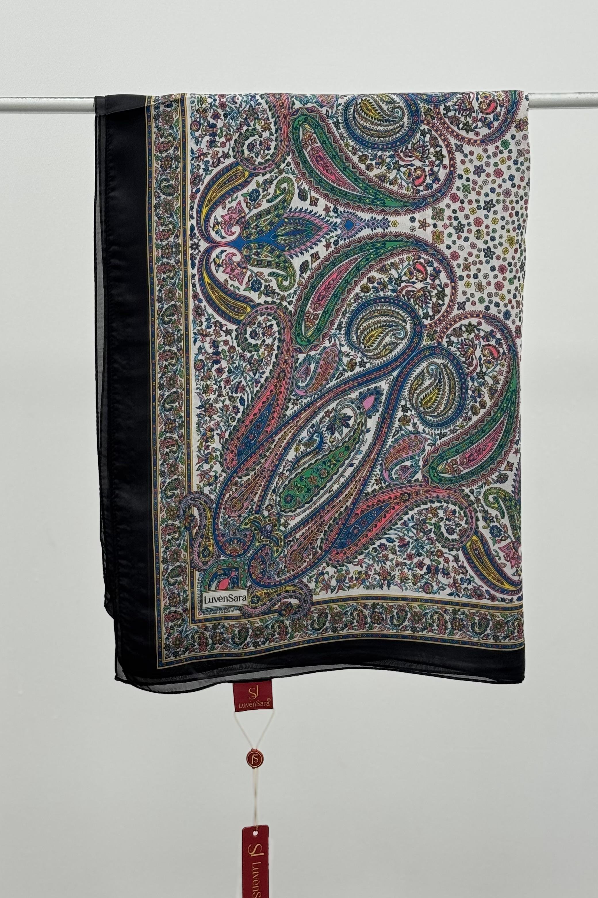 Luven Sara 11857 Hint İpeği Şal - Siyah