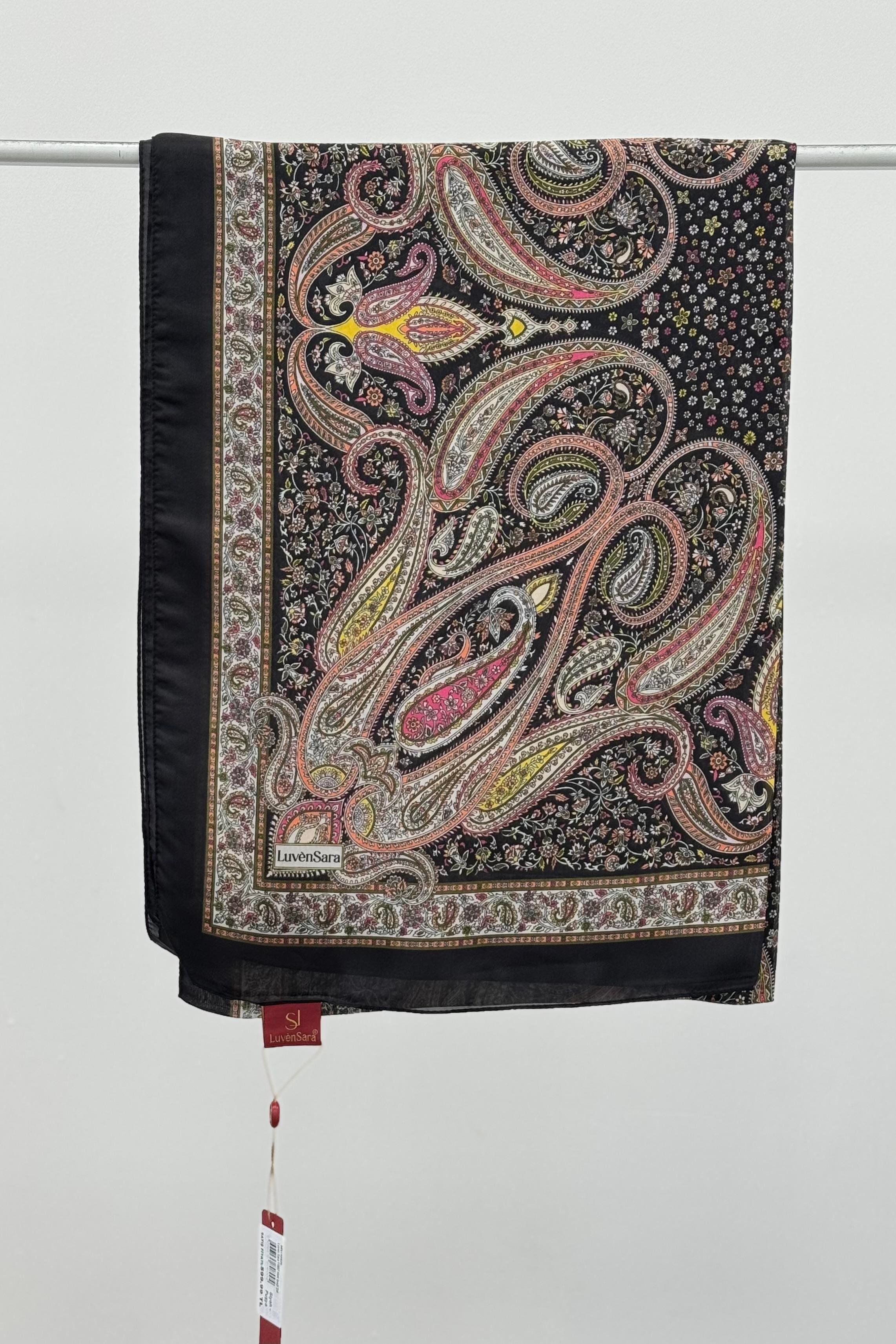 Luven Sara 11857 Hint İpeği Şal - Siyah - Fuşya