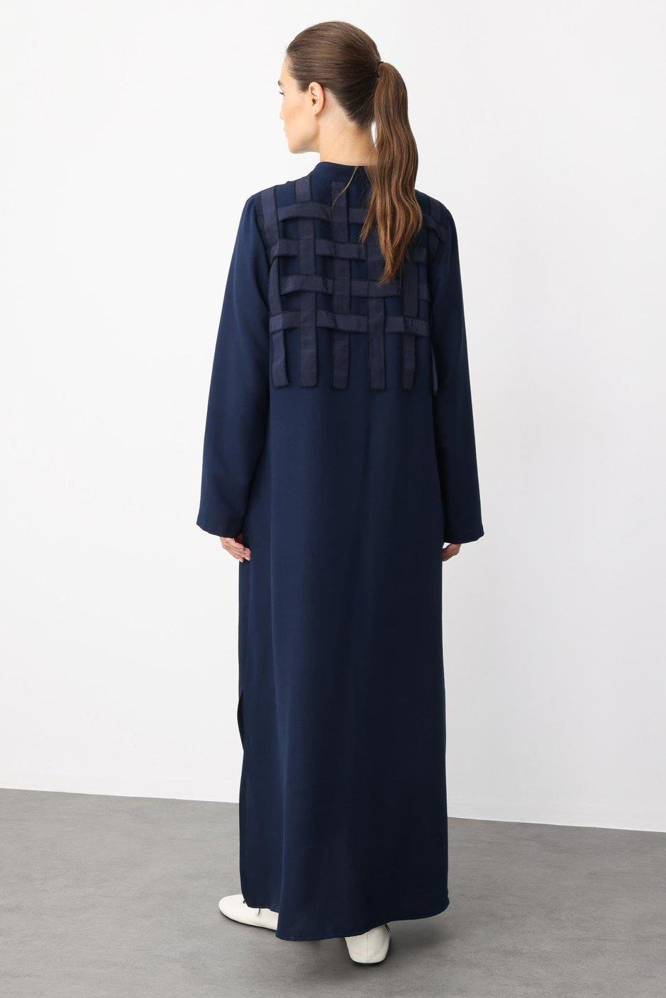 Micca 251507M Sırt Desen İşleme Ferace - Lacivert (353103808)