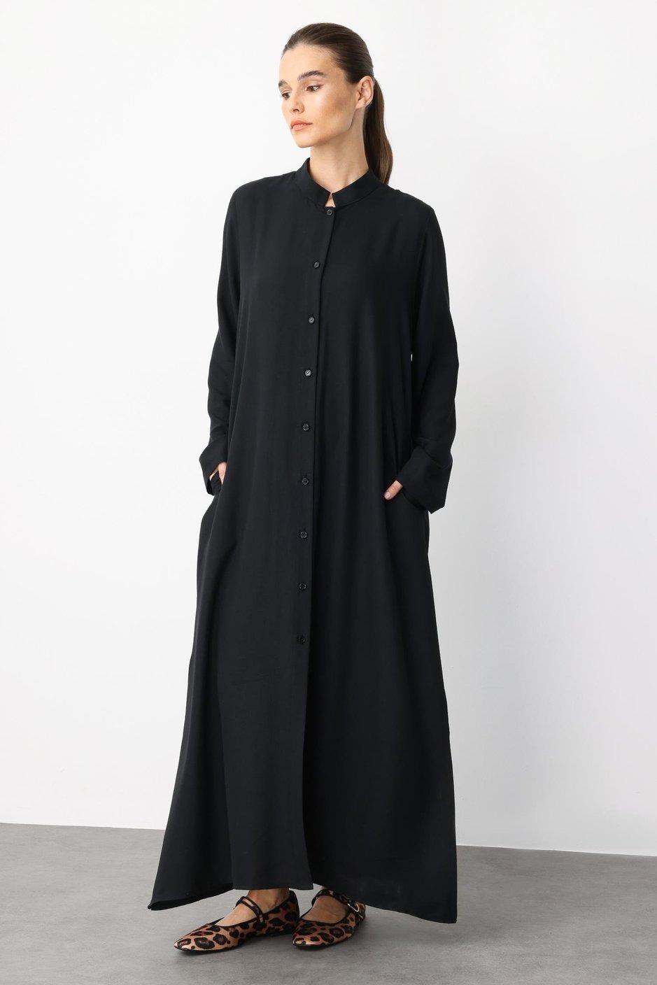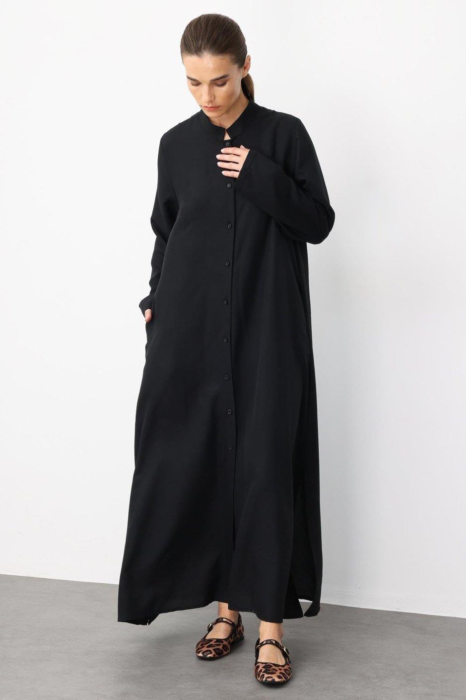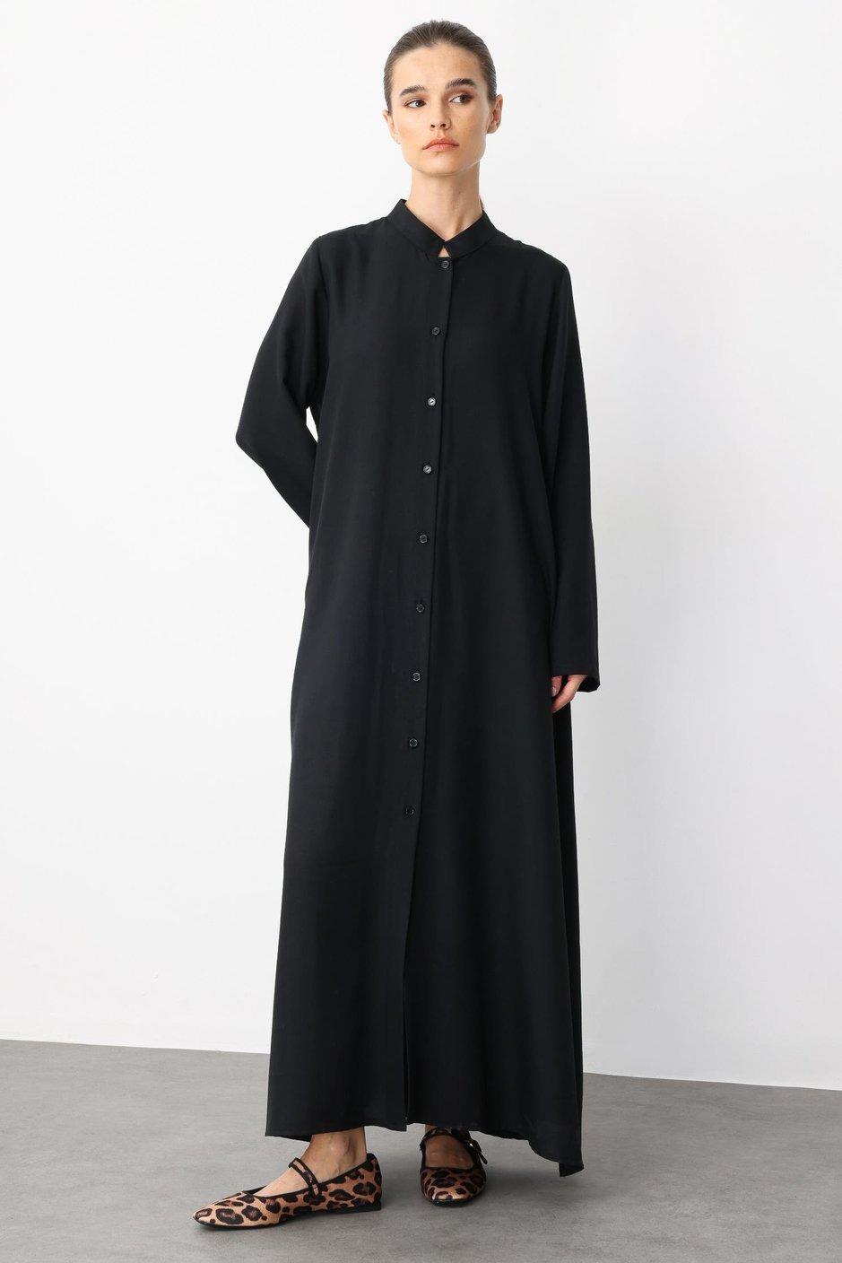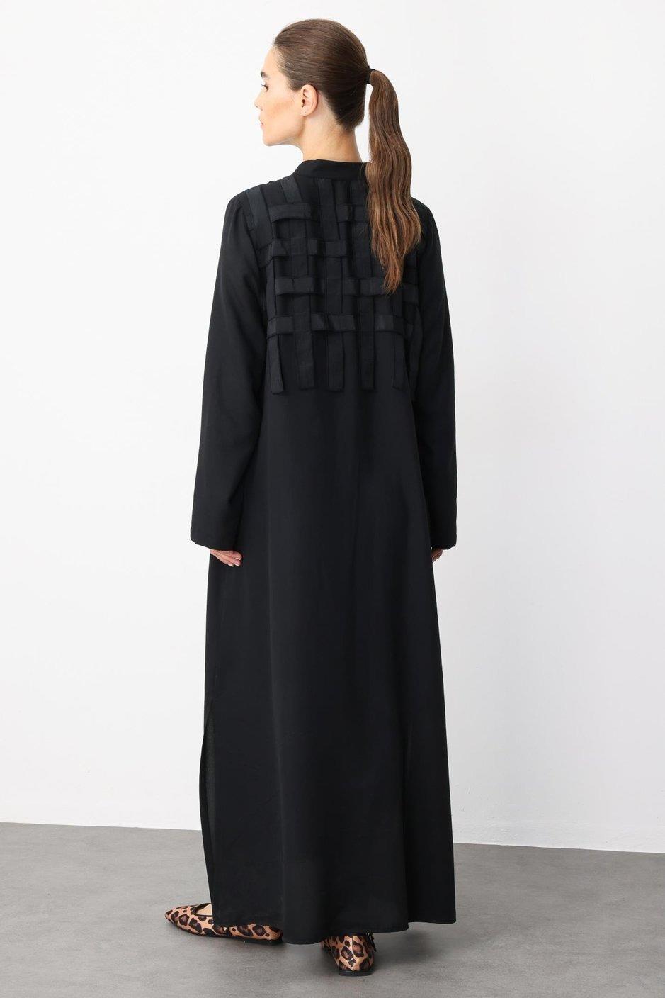 Micca 251507M Sırt Desen İşleme Ferace - Siyah (353103808)