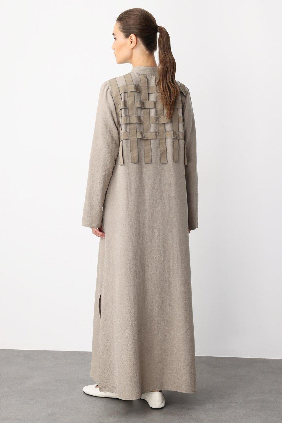 Micca 251507M Sırt Desen İşleme Ferace - Vizon (353103808)