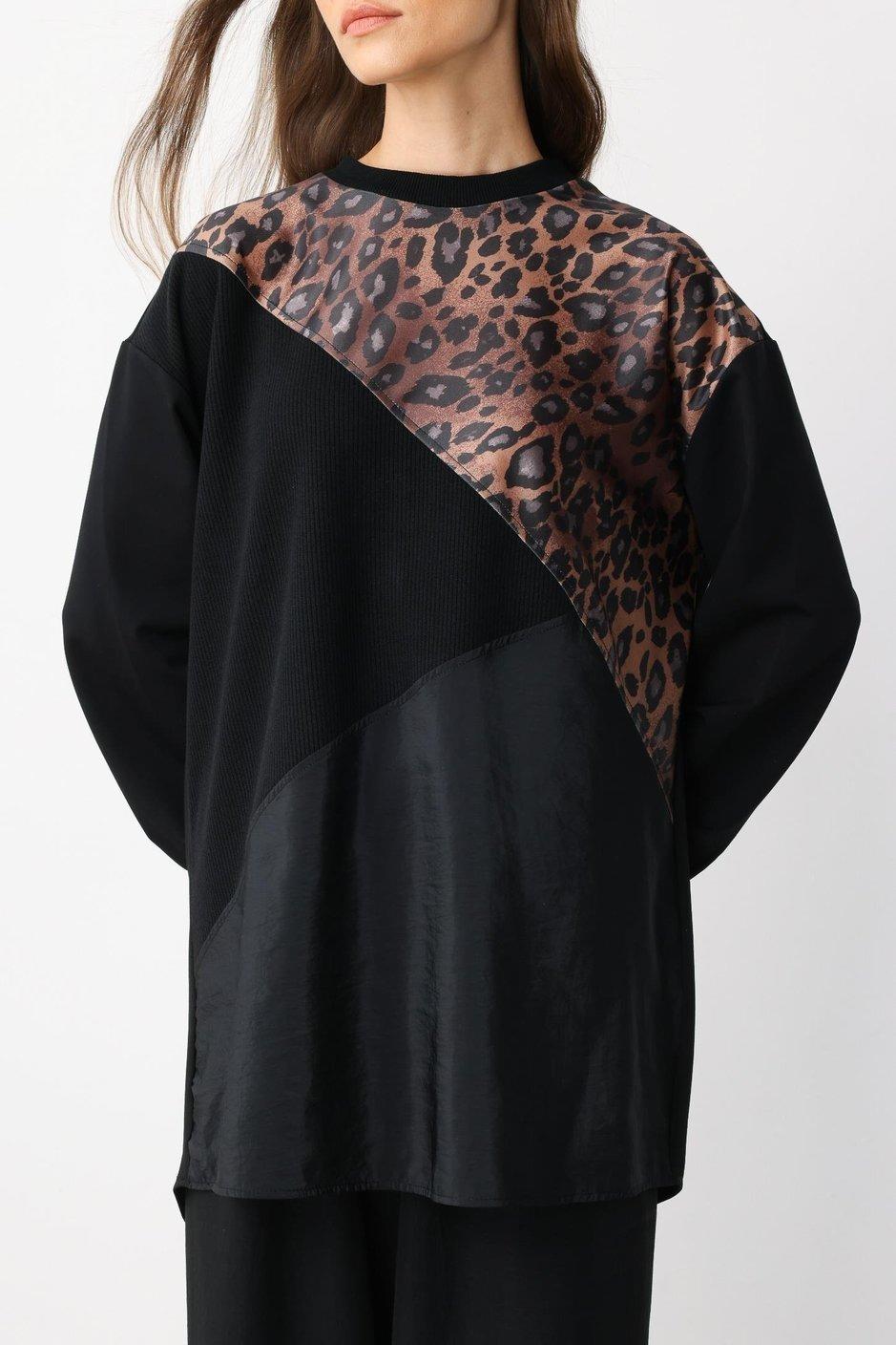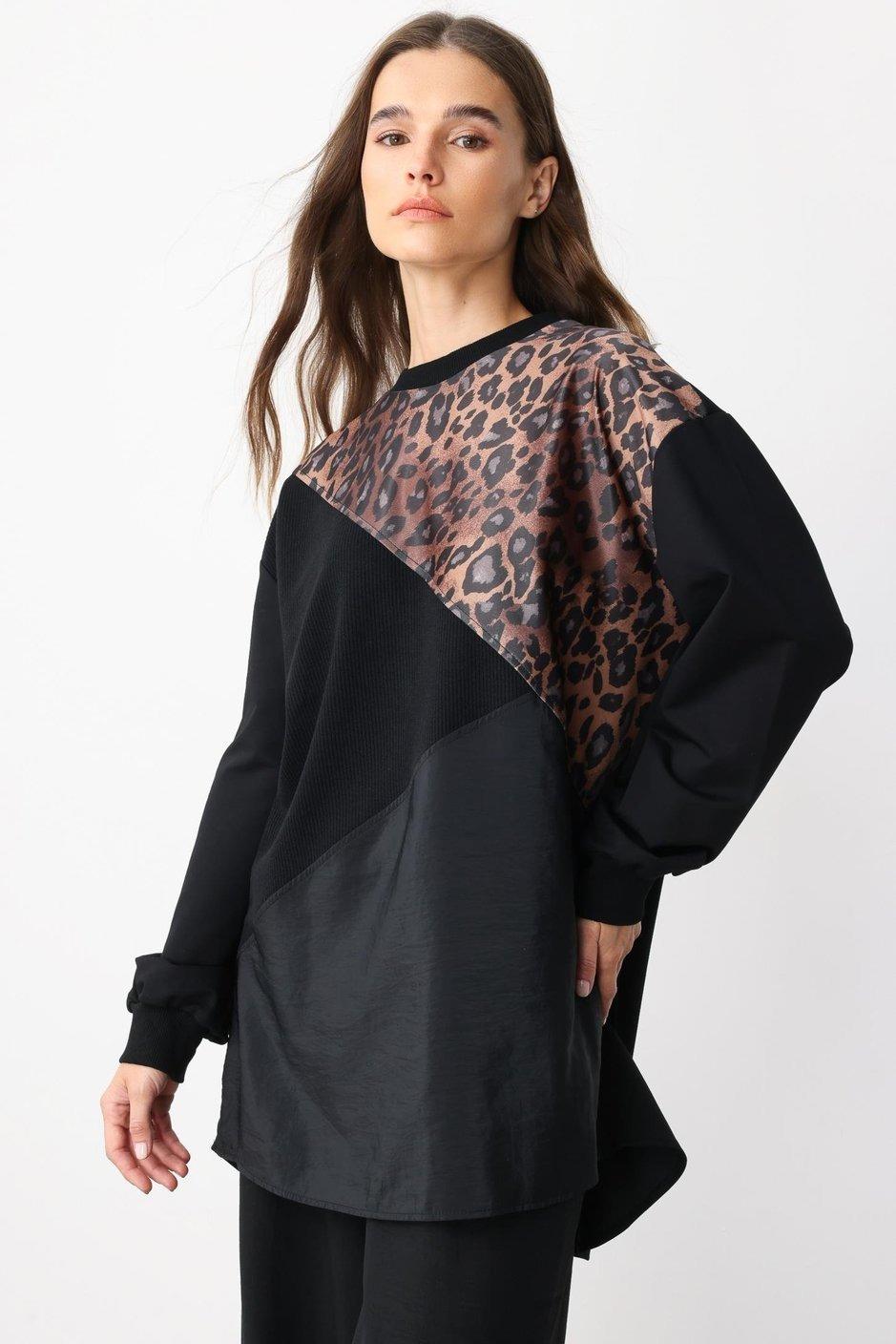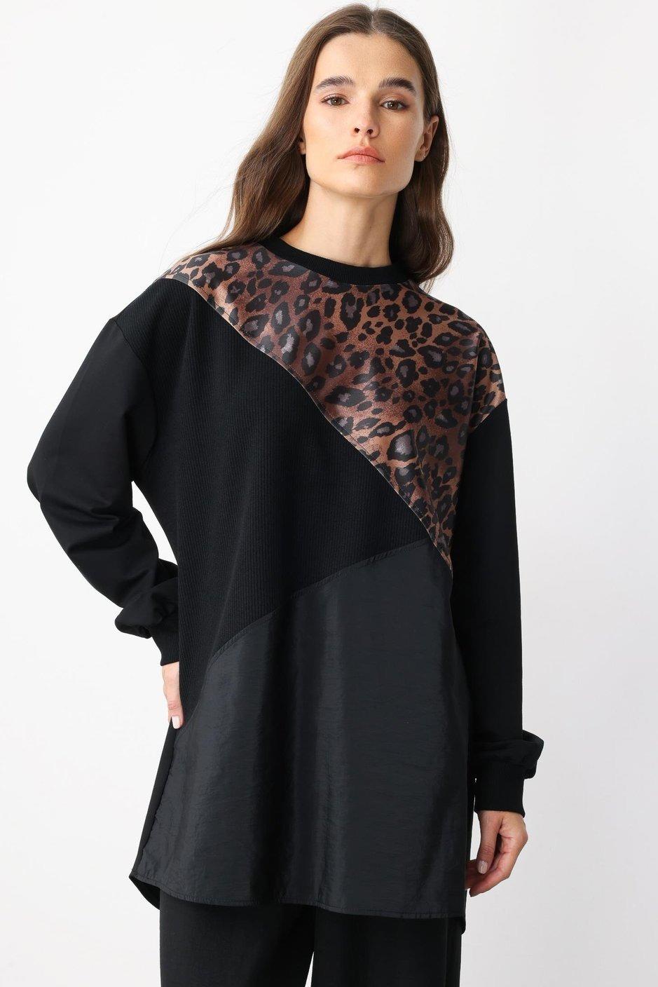 Micca 251607M Leopar Detaylı Tunik - Siyah (362103803)