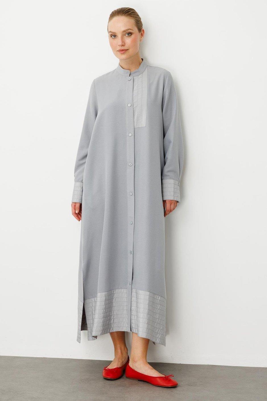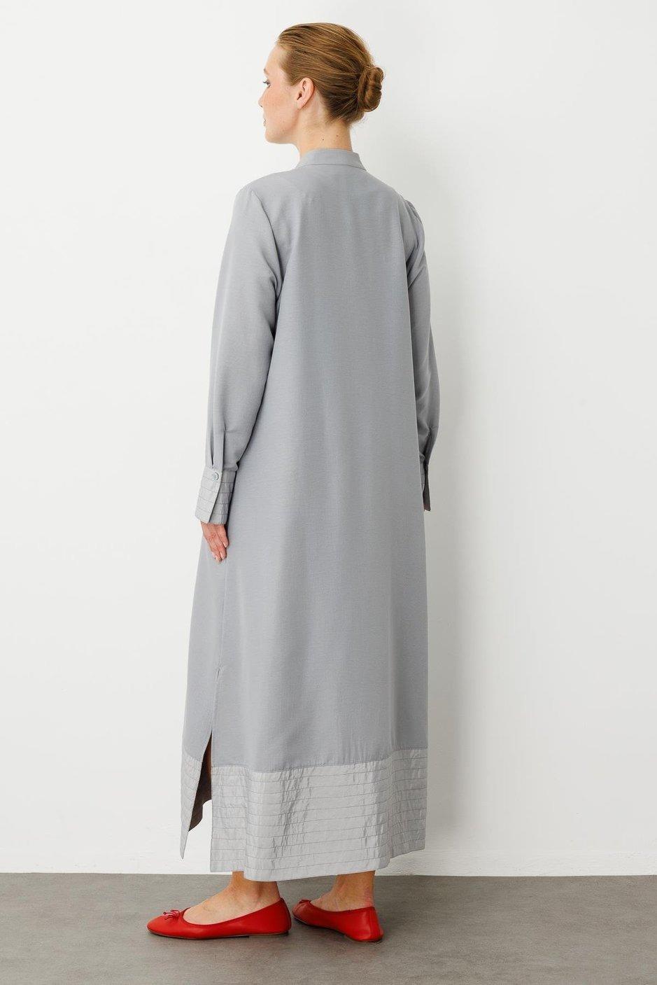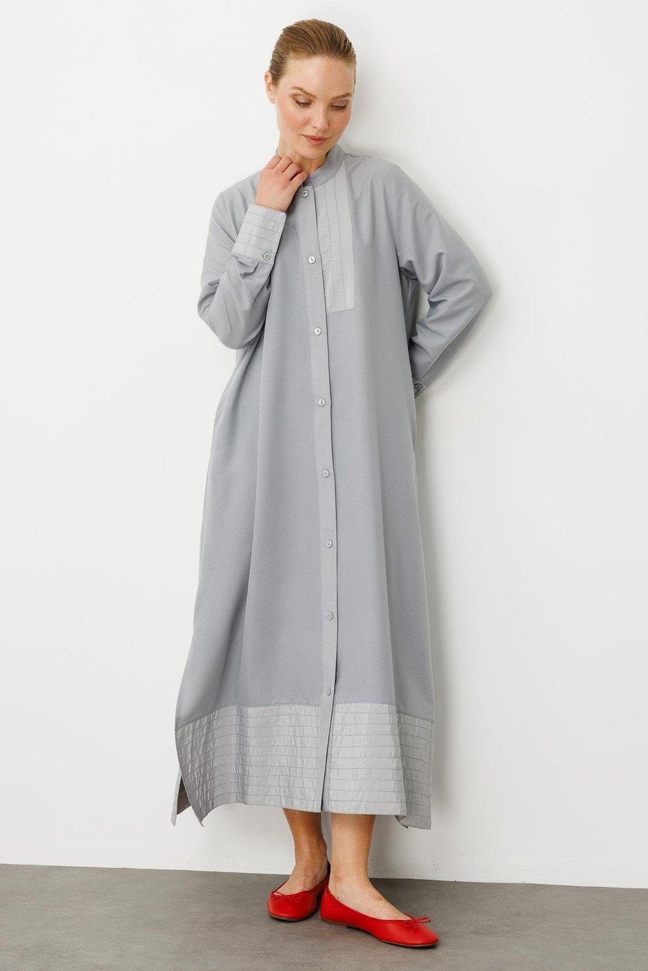 Micca 251613M Dikiş Etek ve Kol Detaylı İpekçe Kap - Gri (378103846)