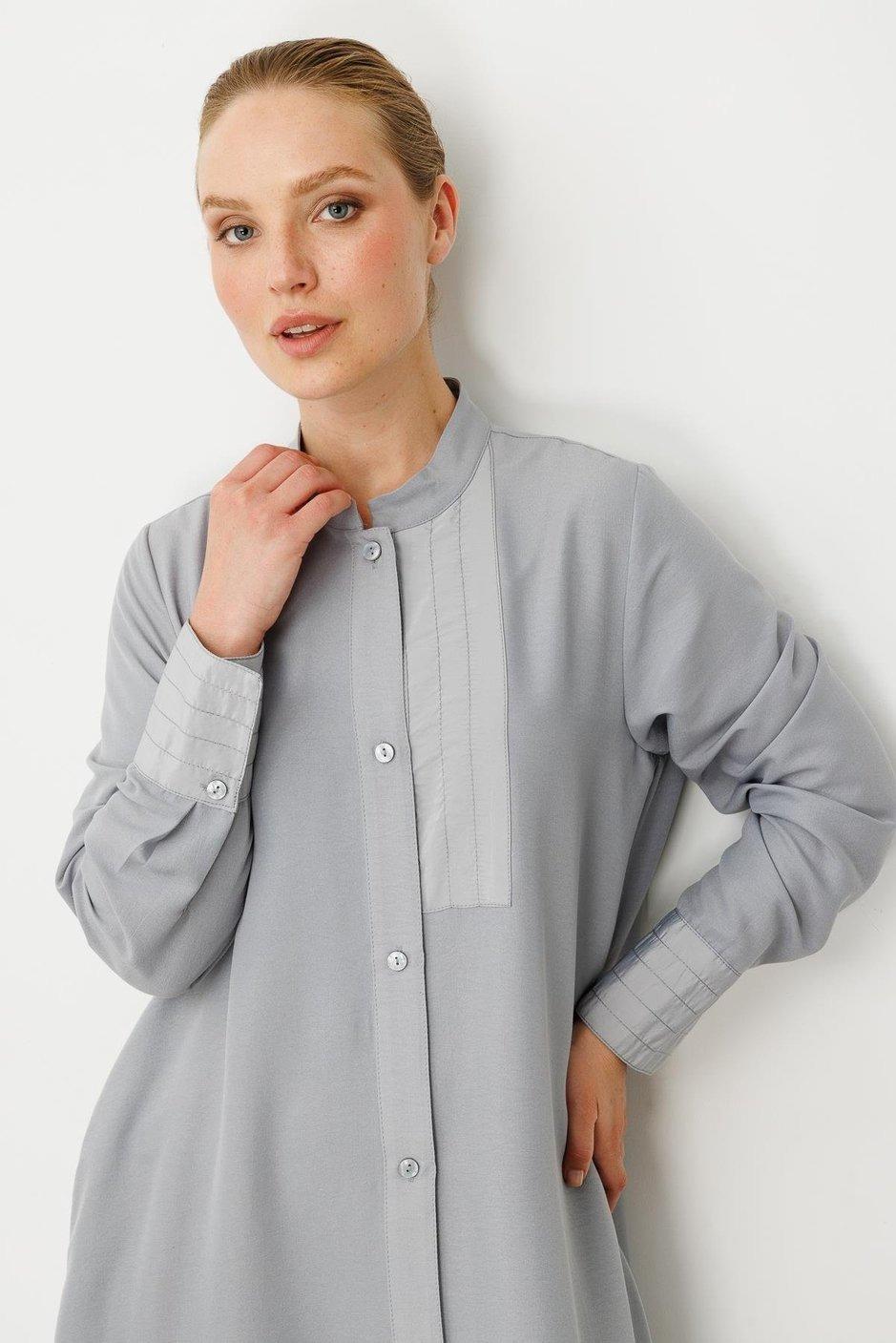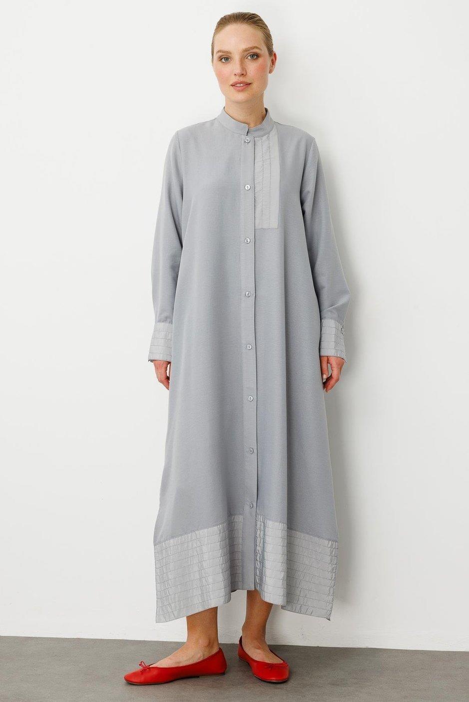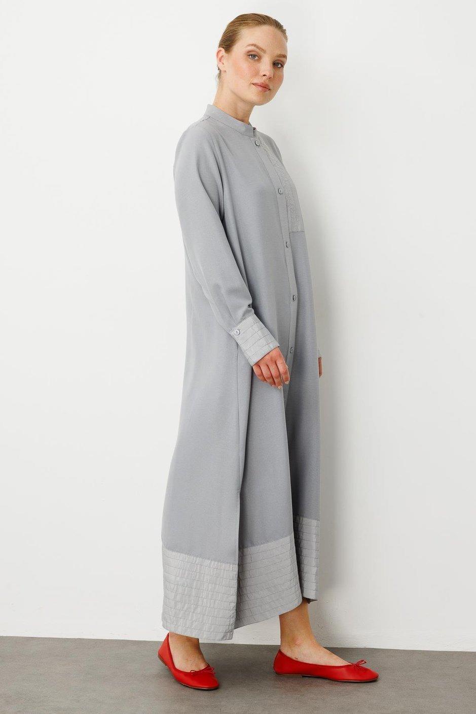 Micca 251613M Dikiş Etek ve Kol Detaylı İpekçe Kap - Gri (378103846)