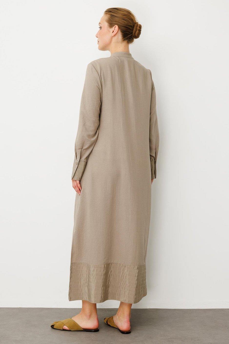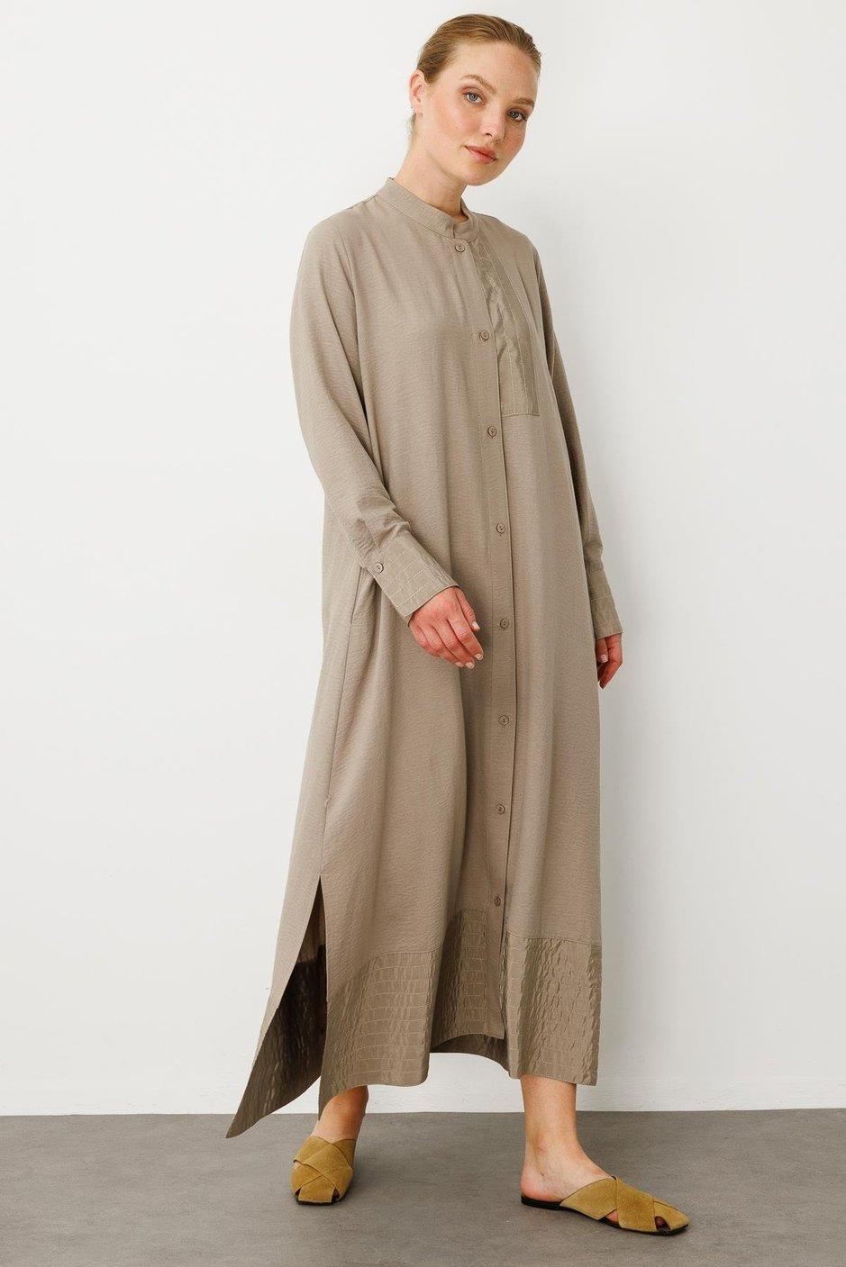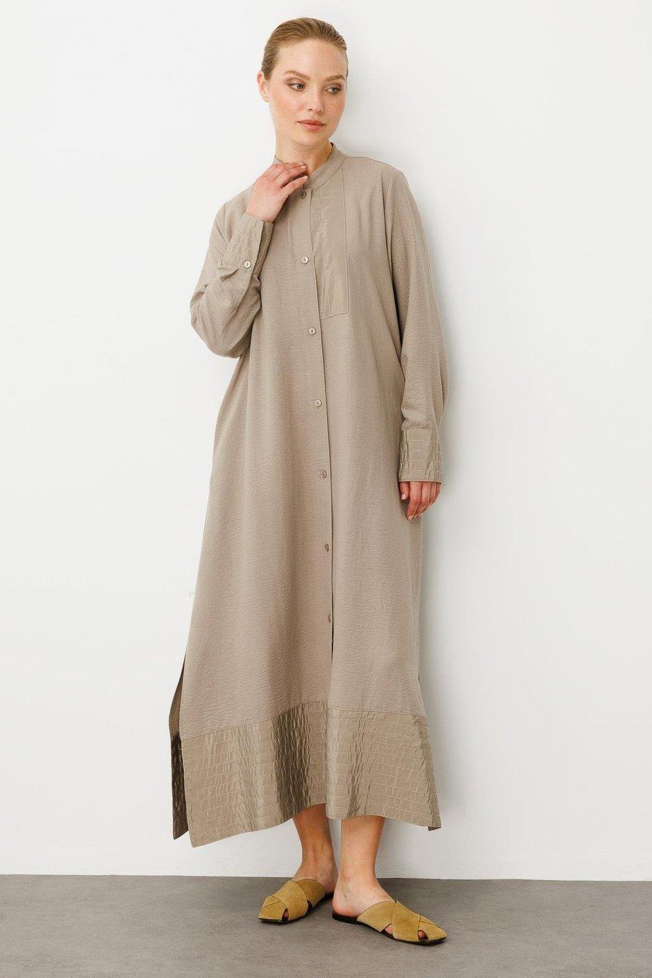 Micca 251613M Dikiş Etek ve Kol Detaylı İpekçe Kap - Vizon (378103846)