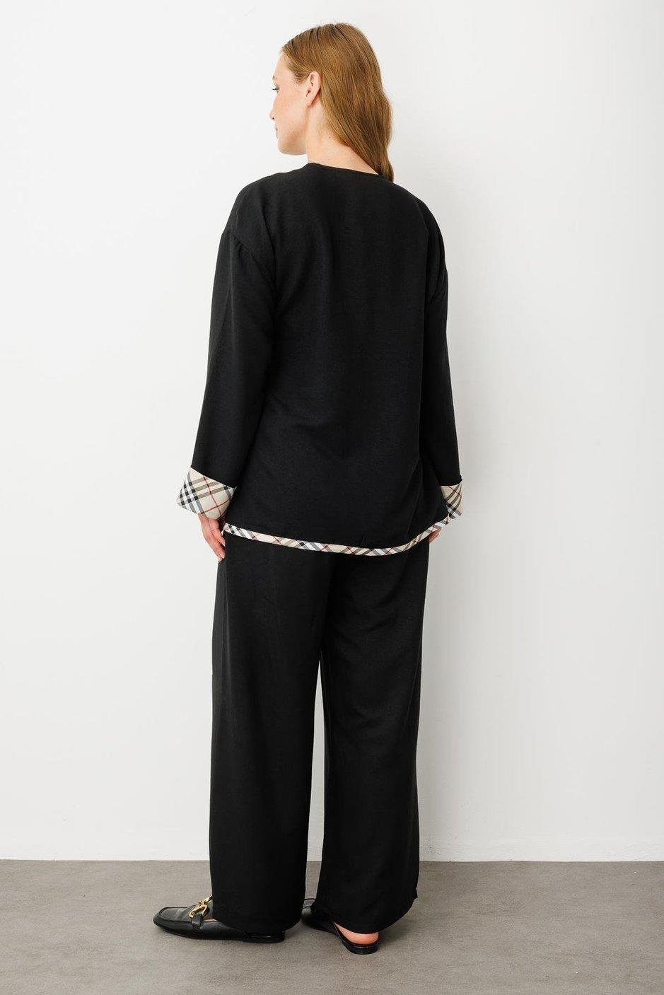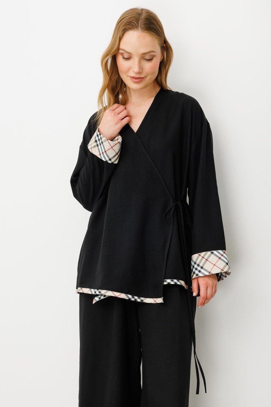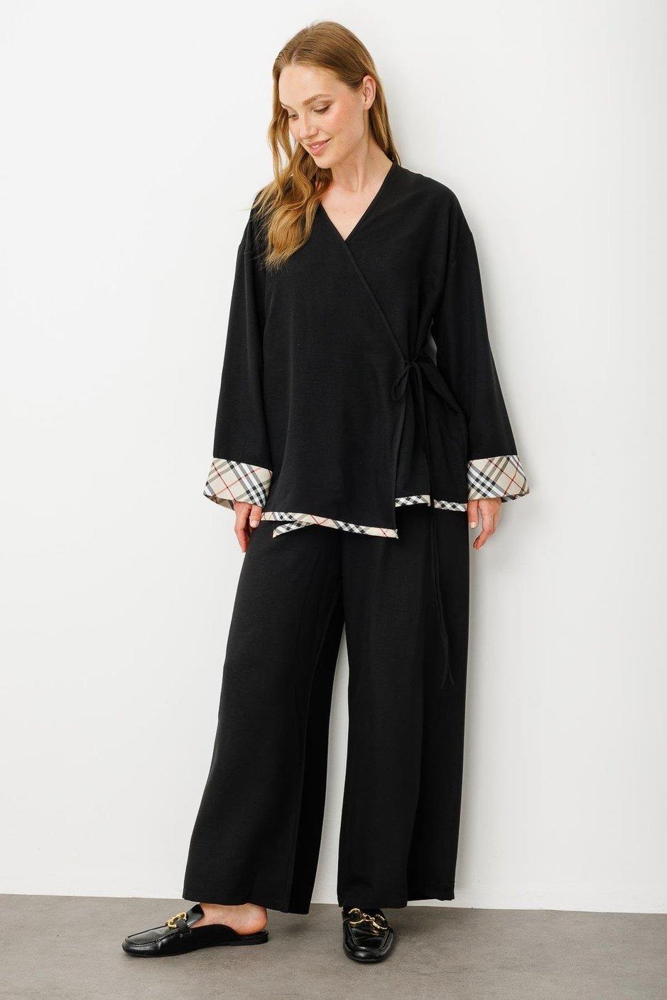 Micca 251614M Kimono Kapama Pantalonlu Takım - Siyah (350103821)