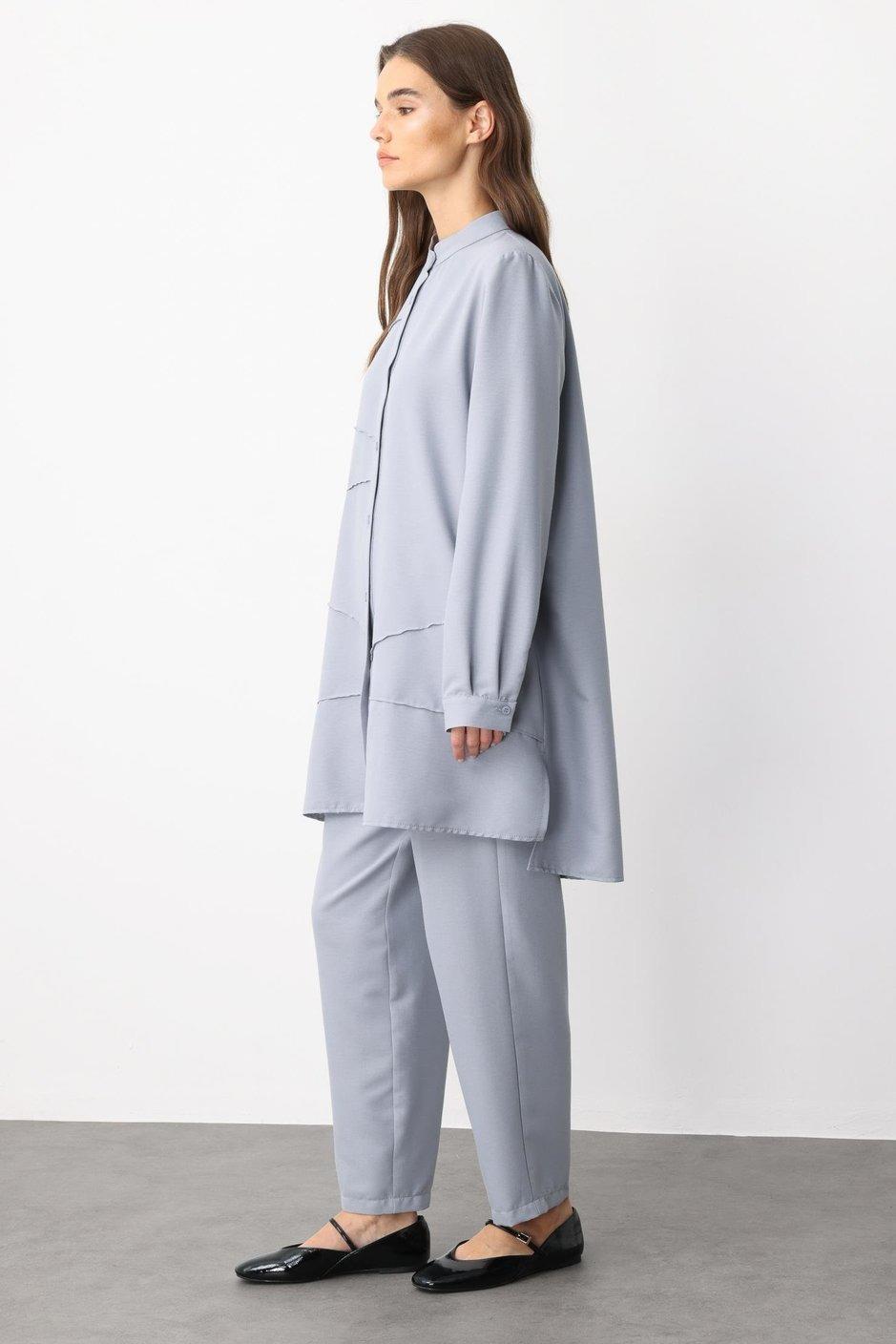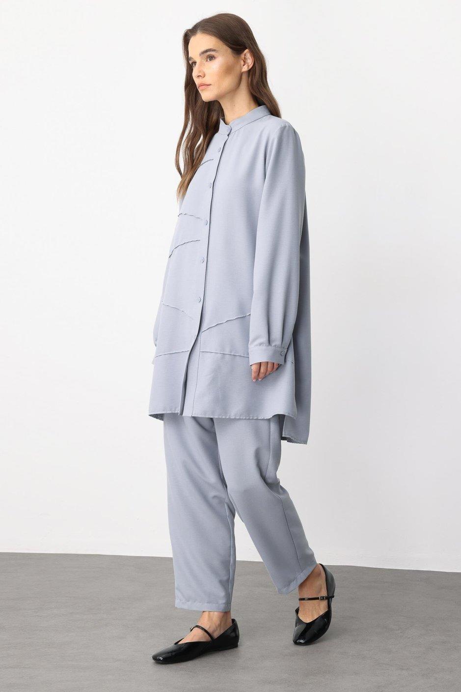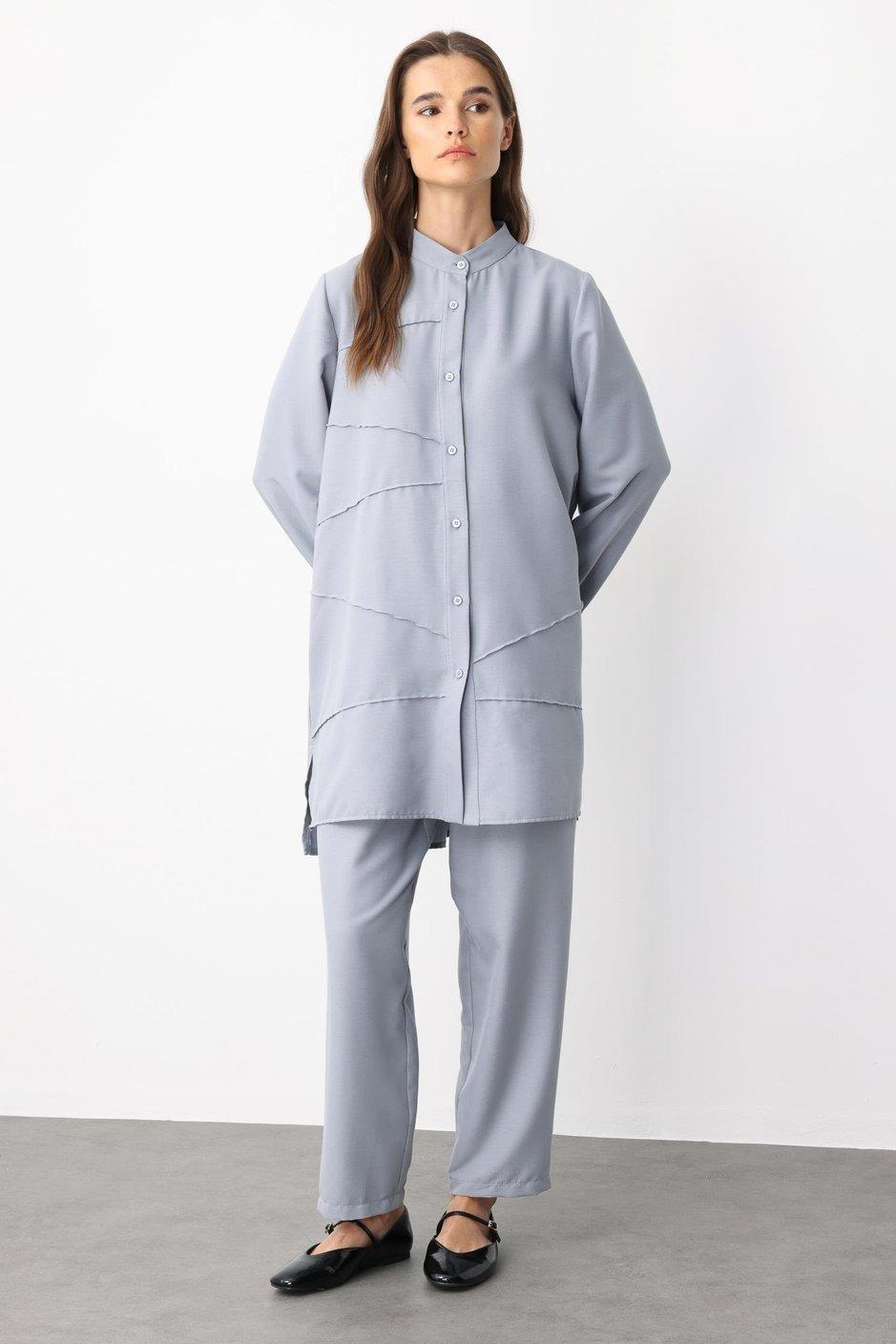 Micca 251800M Nervür Detaylı Pantolonlu Takım - Gri (350103814)