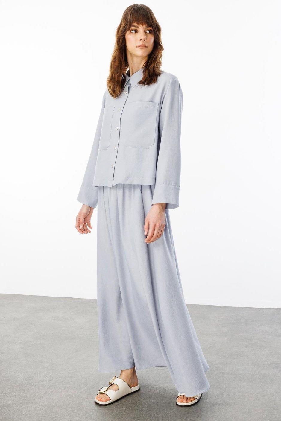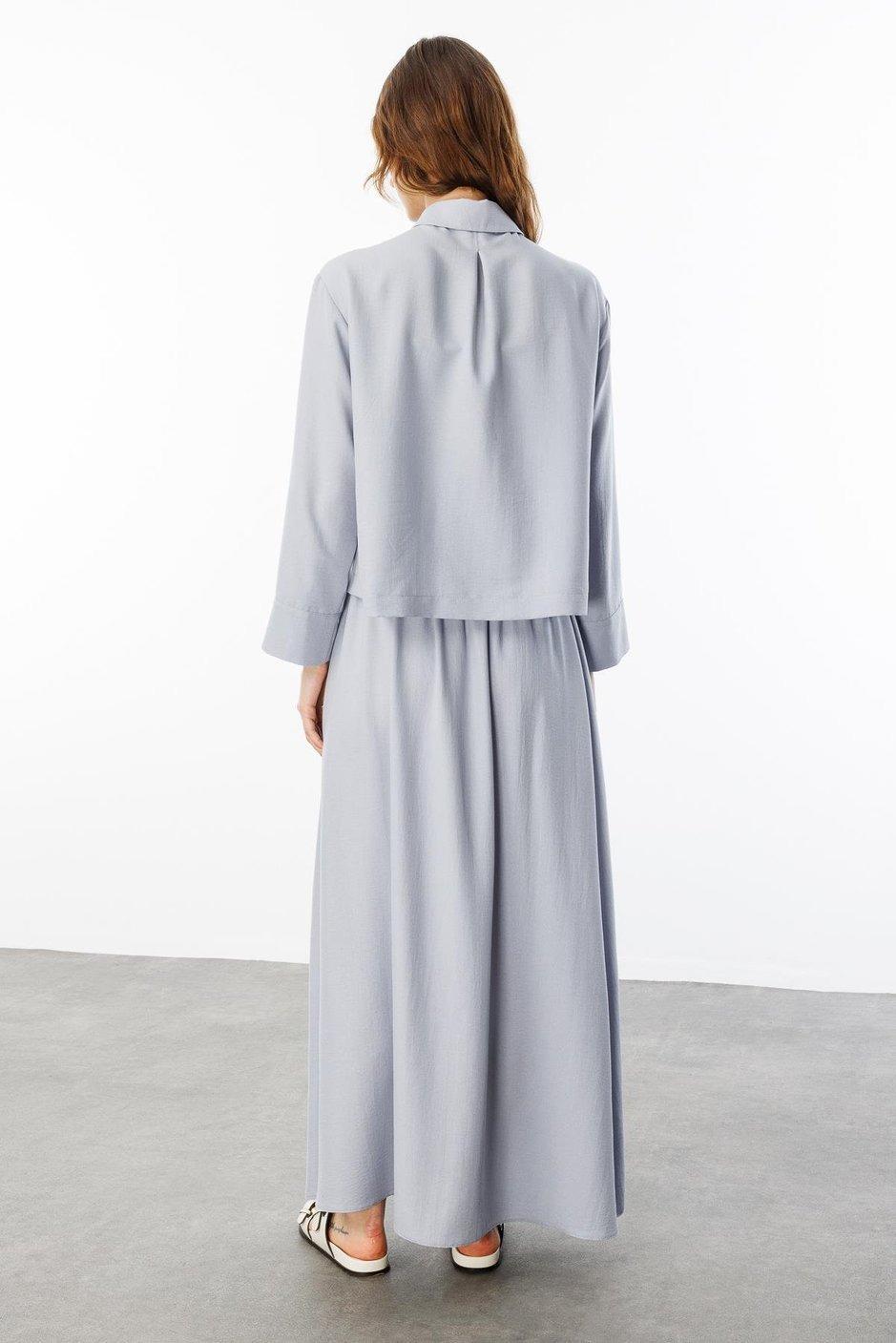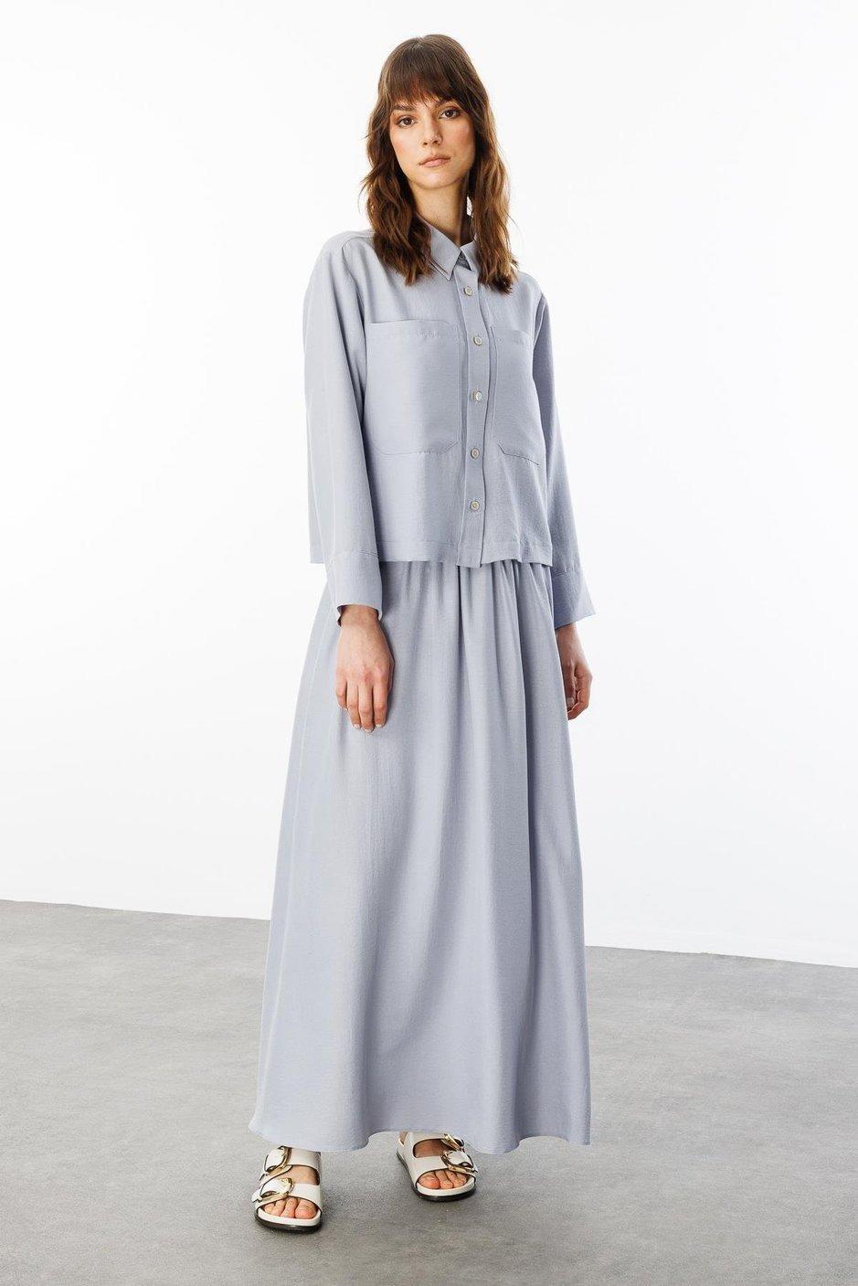 Micca 251810M Rahat İpekçe Kumaş Etekli Takım - Gri (350103818)