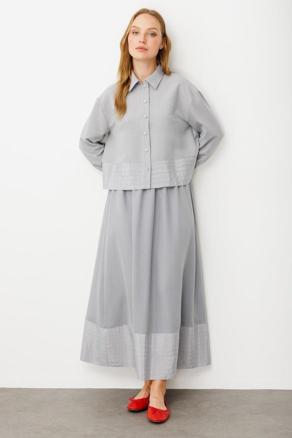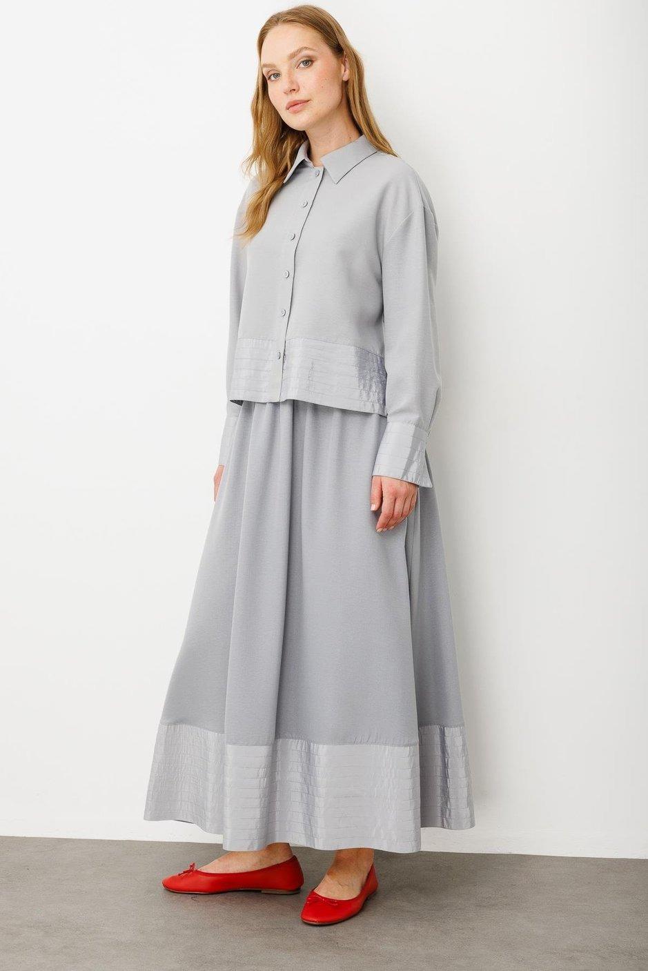 Micca 251823M Cupra Dikiş Detaylı Etekli Takım - Gri