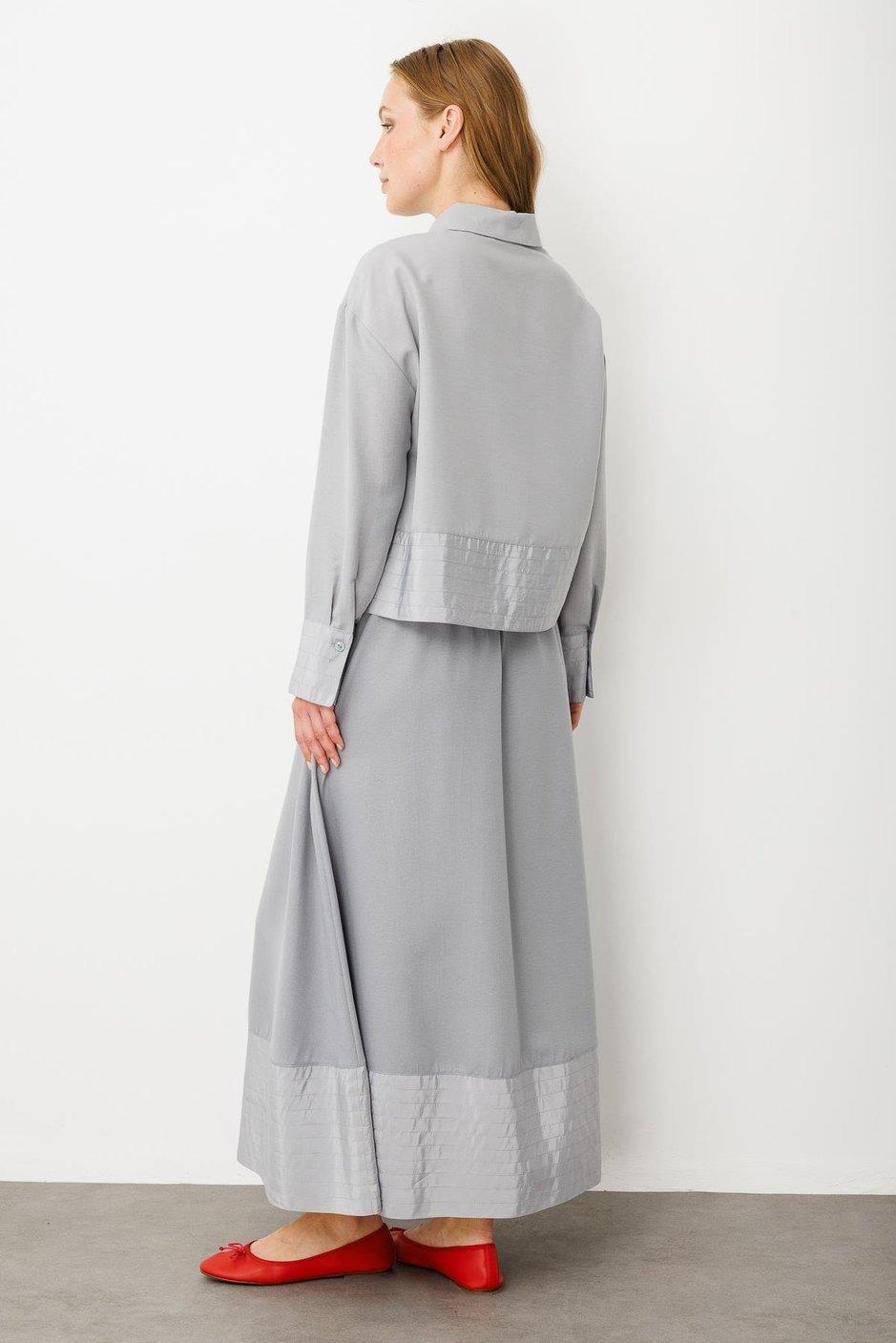 Micca 251823M Cupra Dikiş Detaylı Etekli Takım - Gri (350103817)
