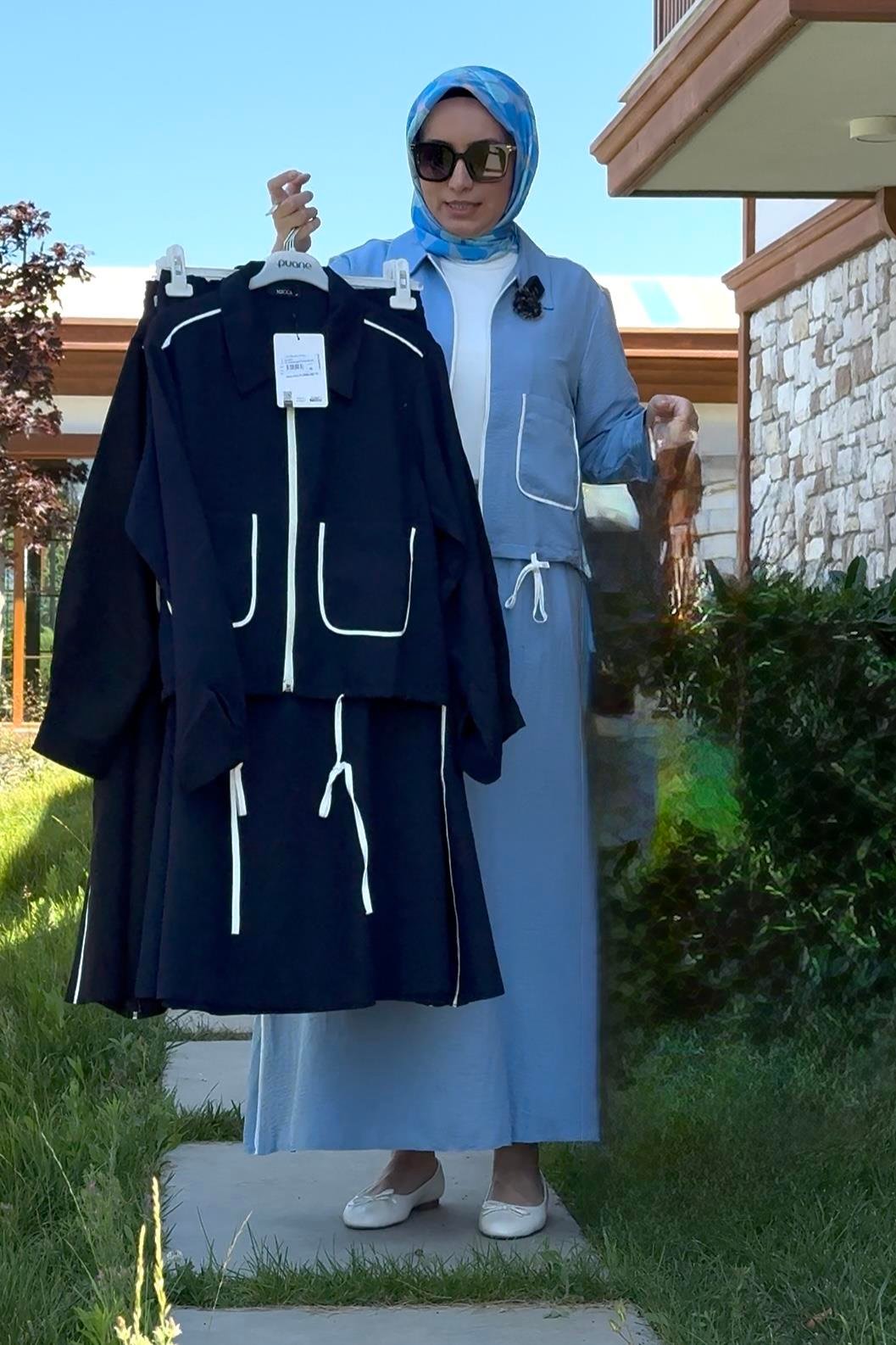 Micca 251864M Biye Detaylı Alt Üst İpekçe Etekli Takım - Lacivert