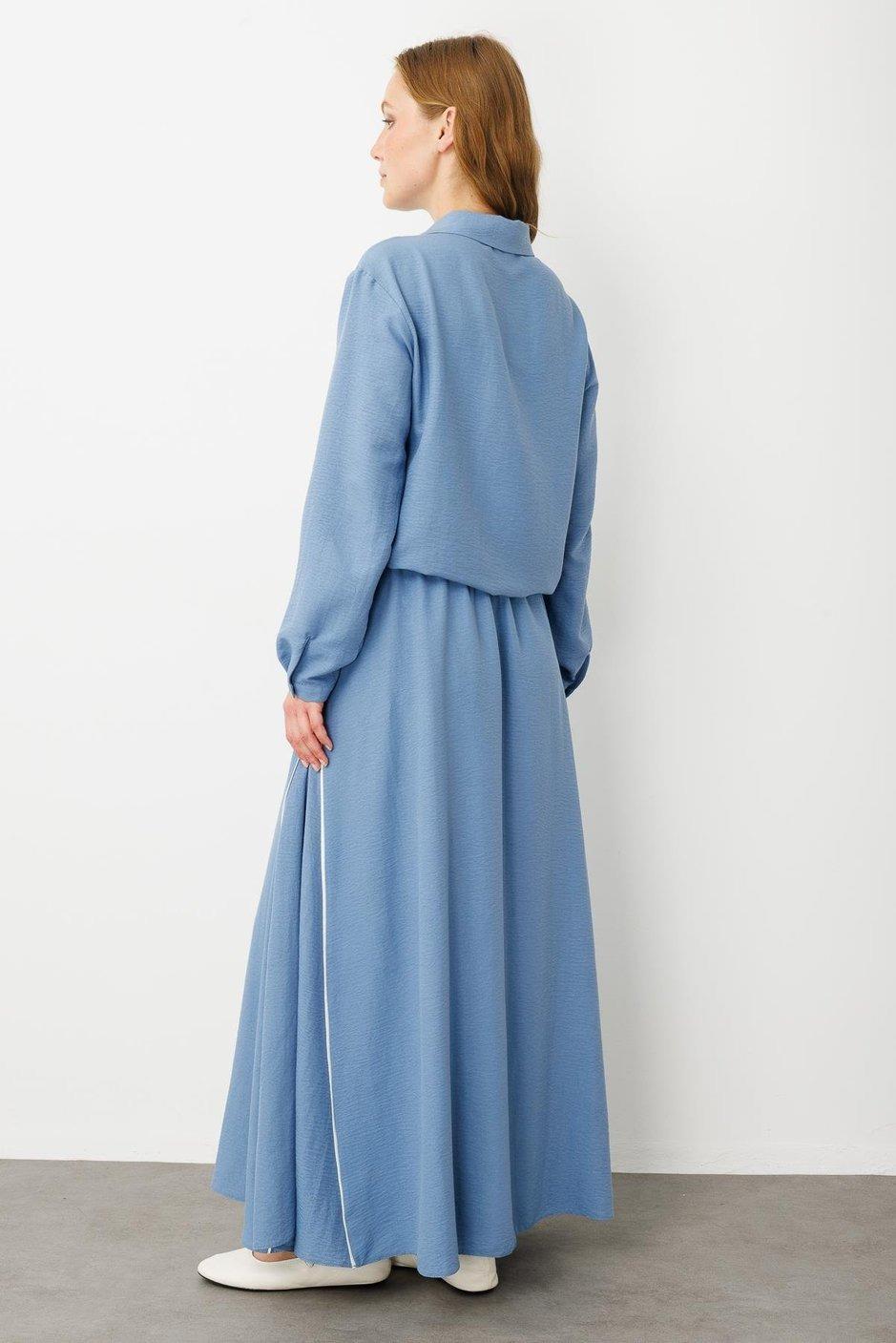 Micca 251864M Biye Detaylı Alt Üst İpekçe Etekli Takım - Mavi (350103816)