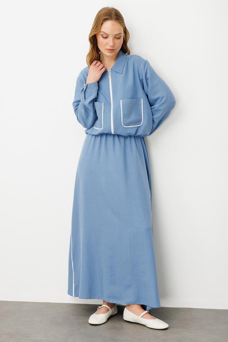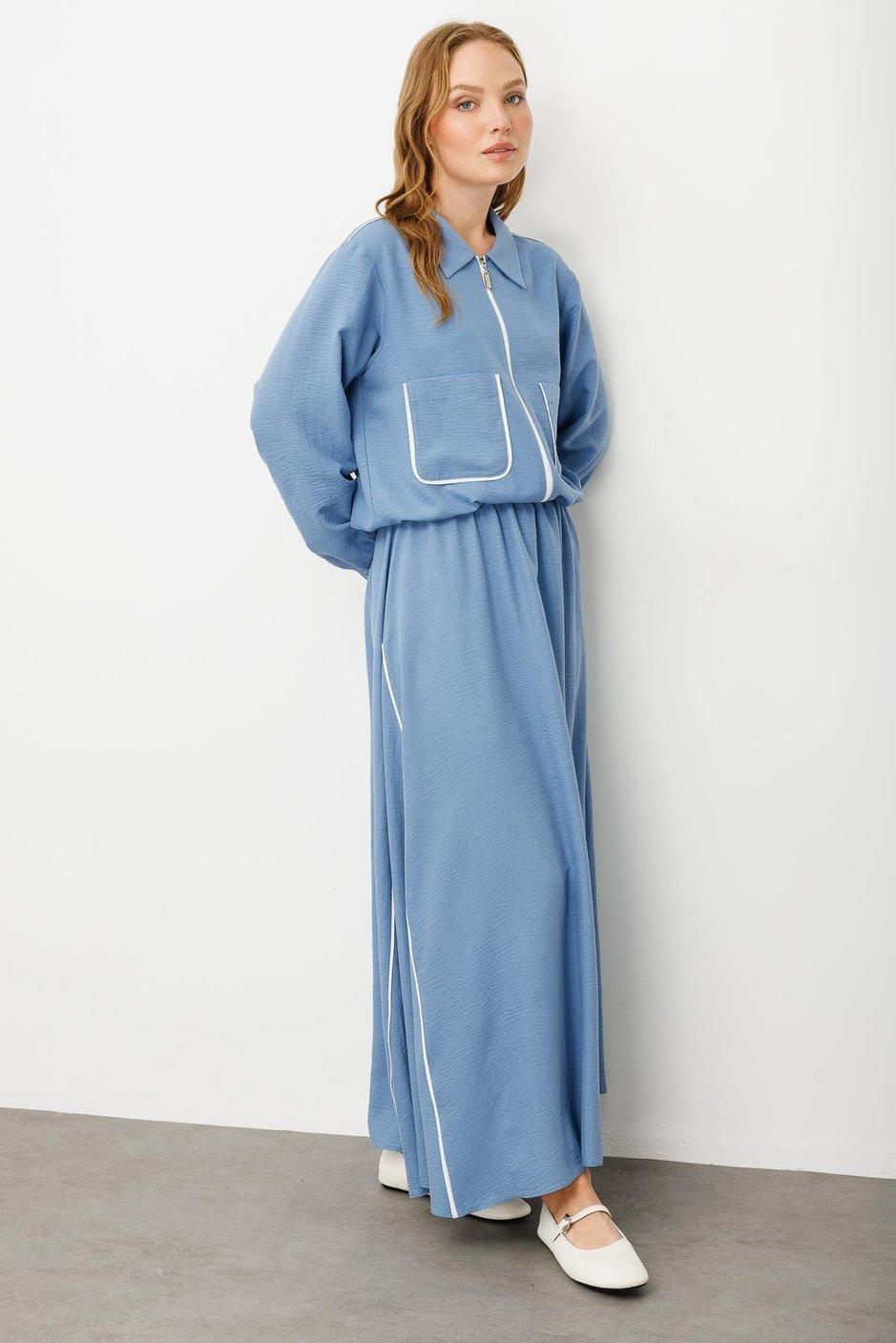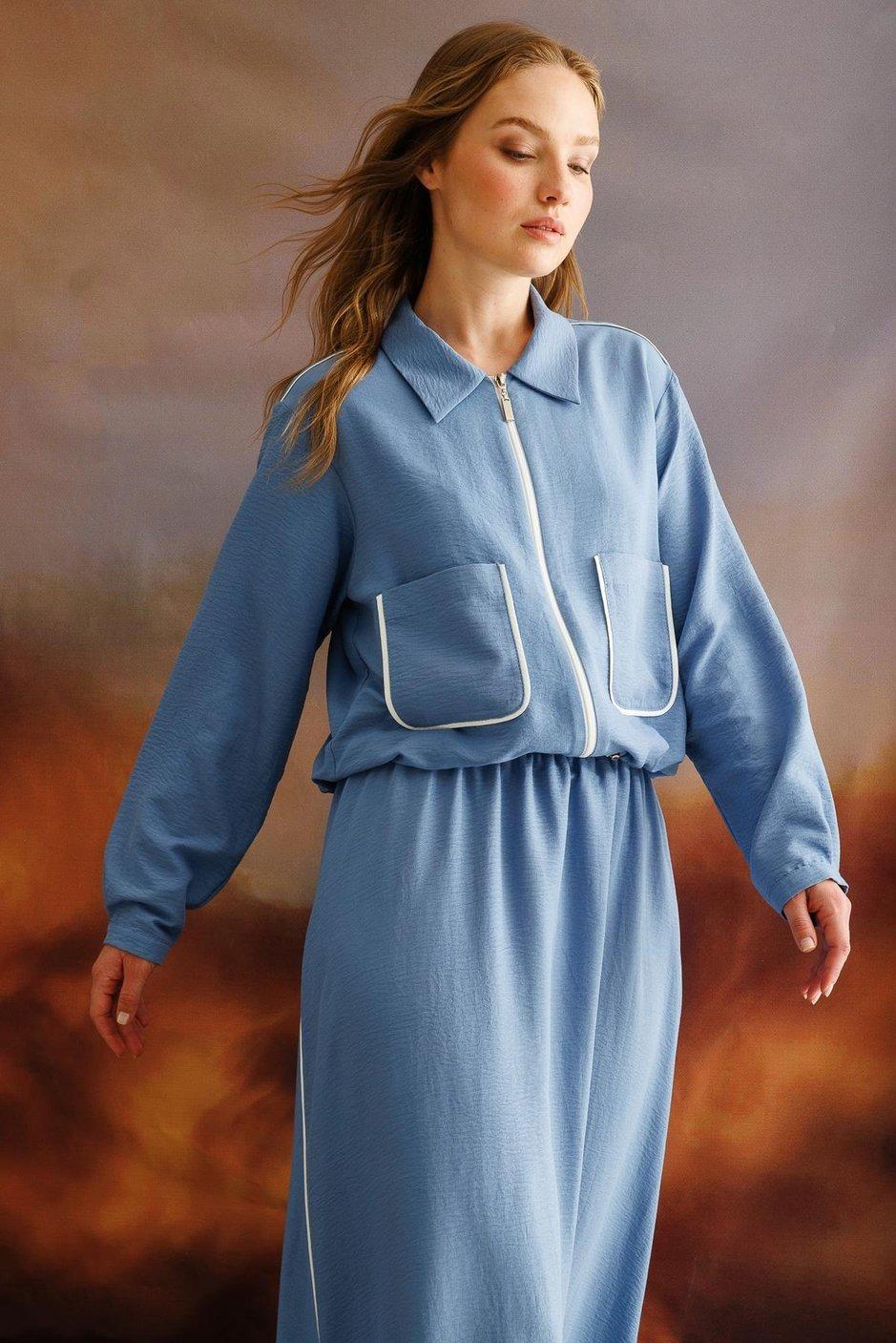 Micca 251864M Biye Detaylı Alt Üst İpekçe Etekli Takım - Mavi