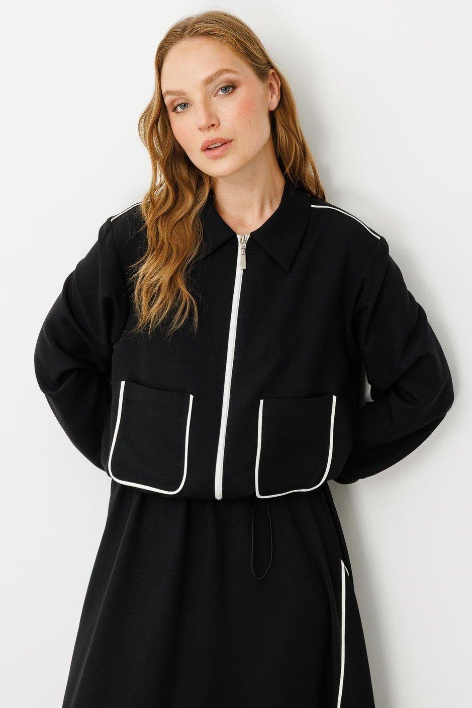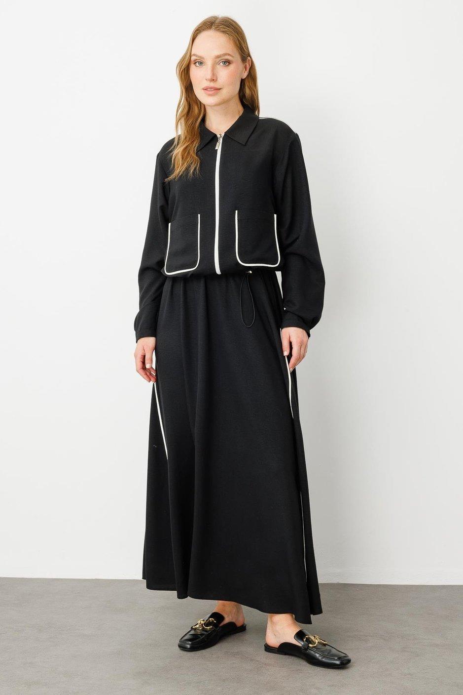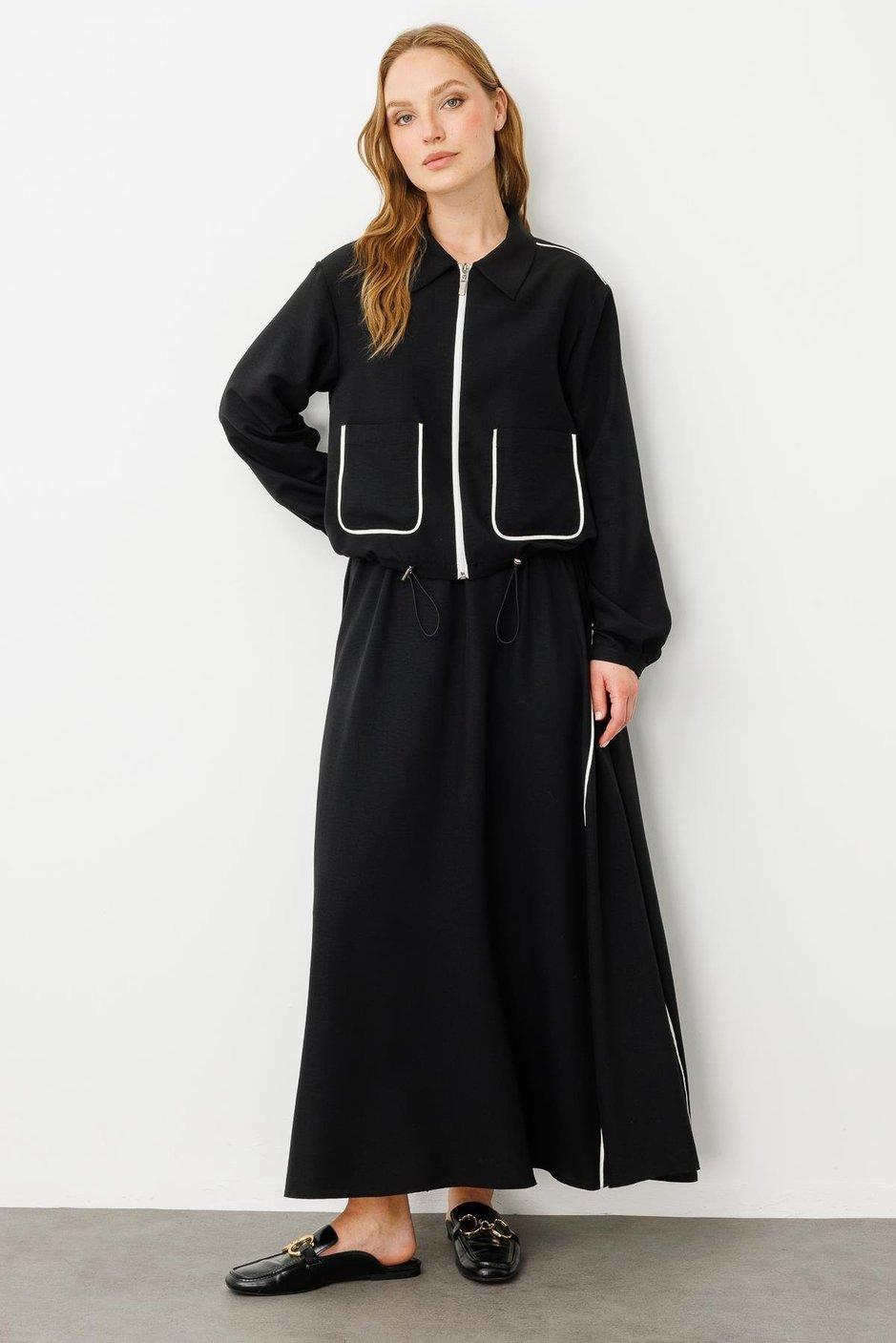 Micca 251864M Biye Detaylı Alt Üst İpekçe Etekli Takım - Siyah