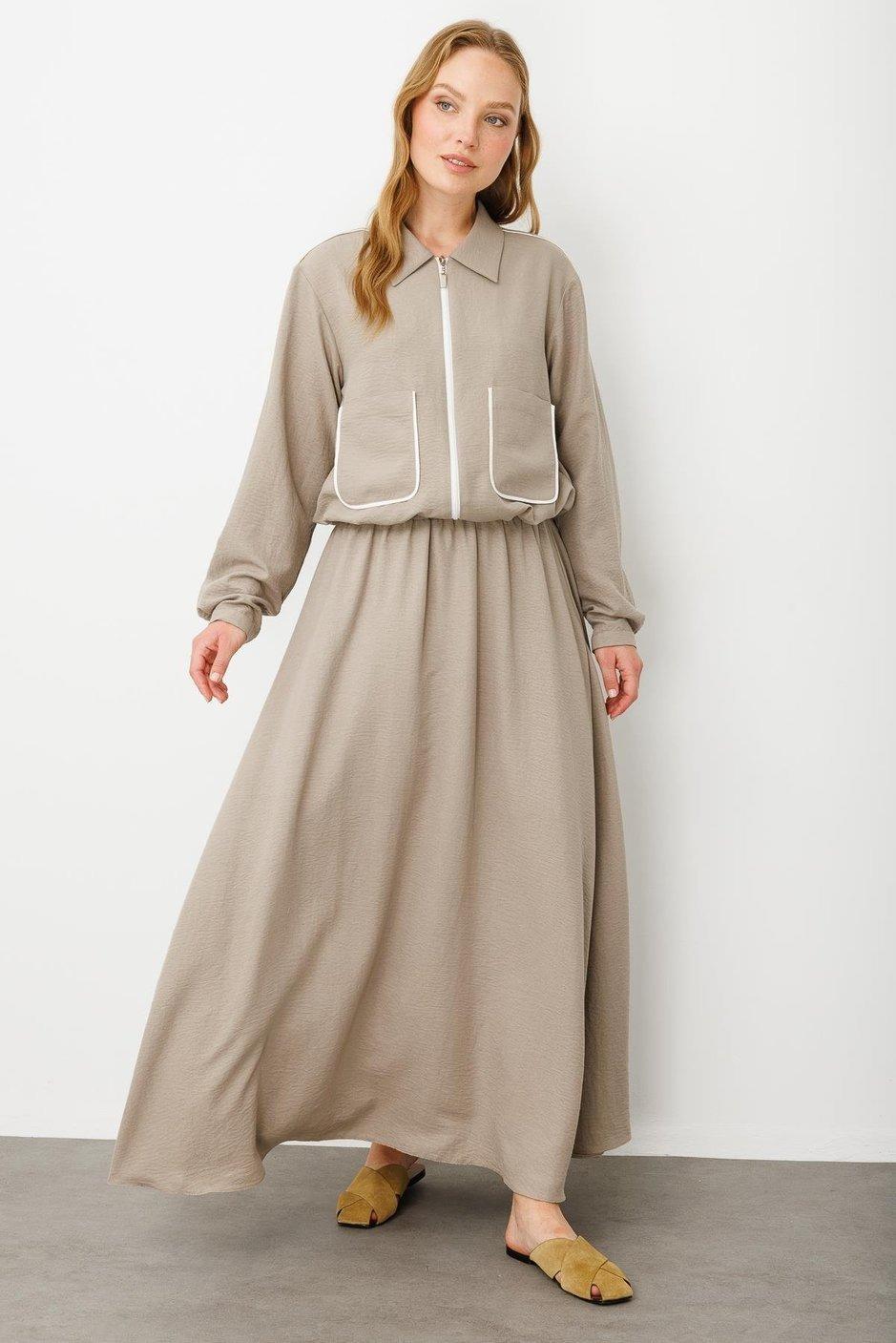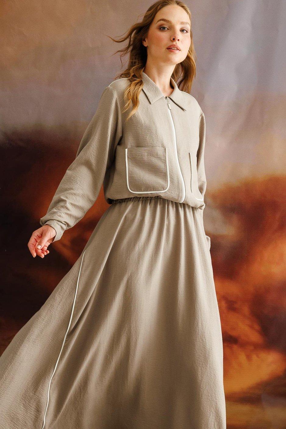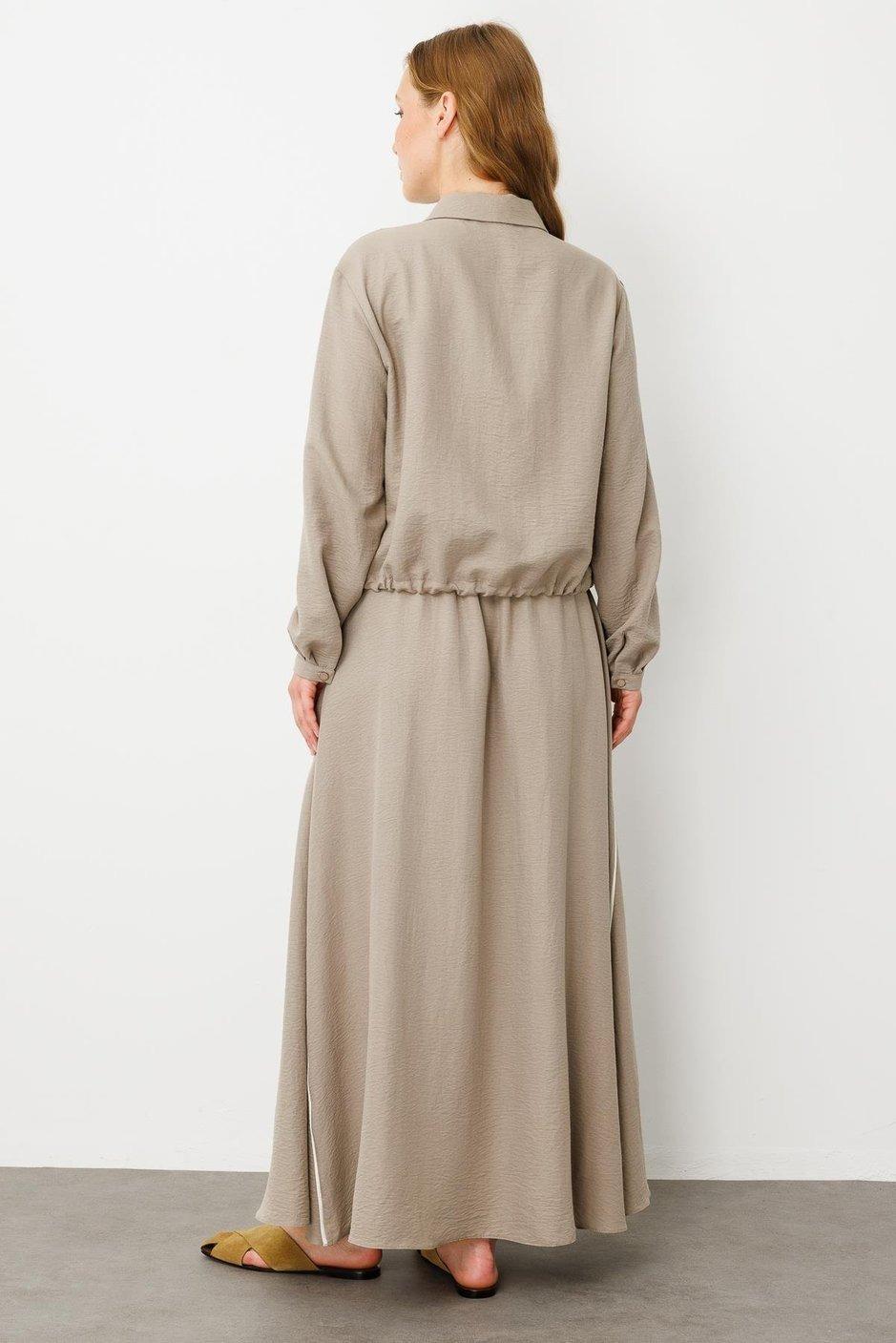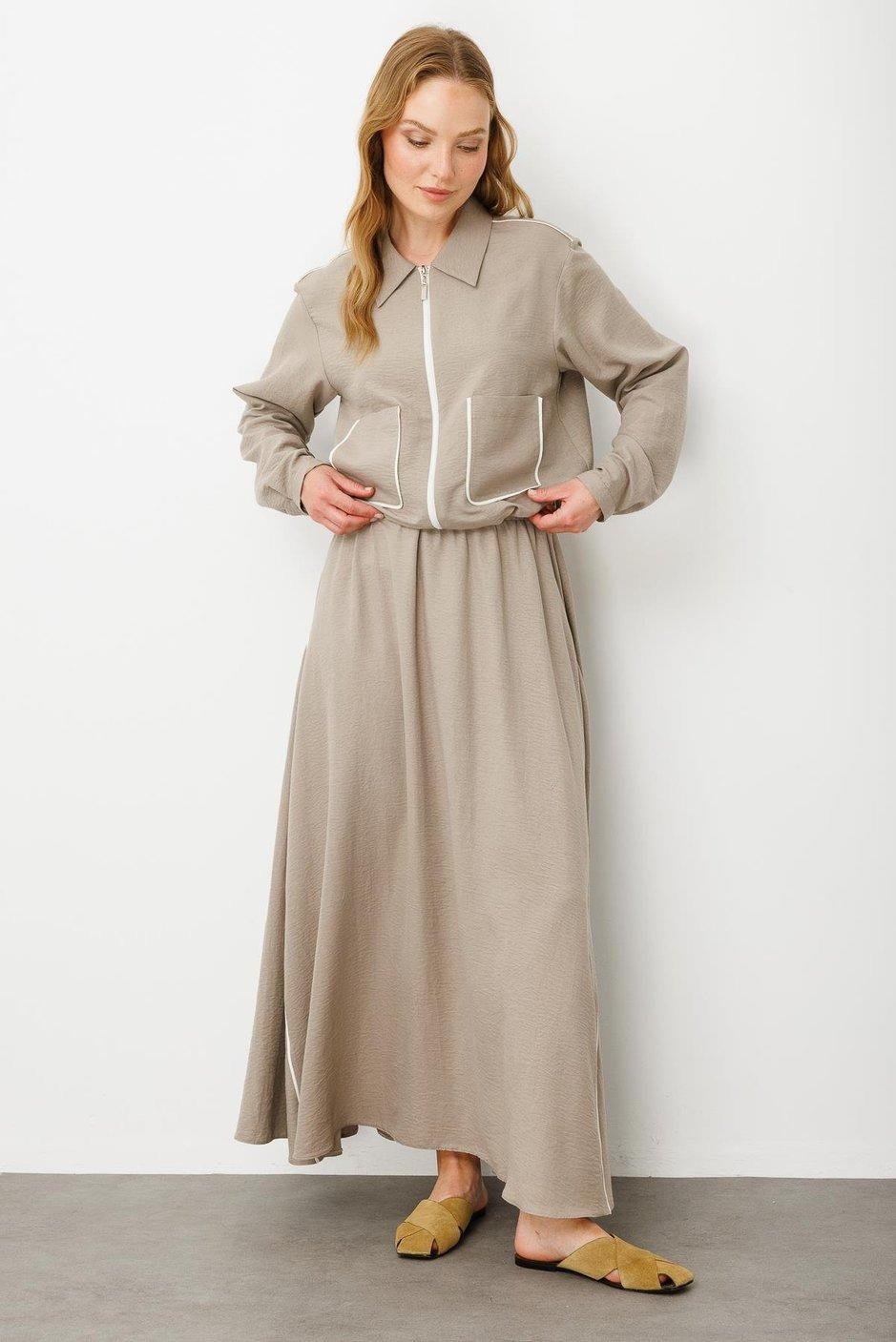 Micca 251864M Biye Detaylı Alt Üst İpekçe Etekli Takım - Vizon