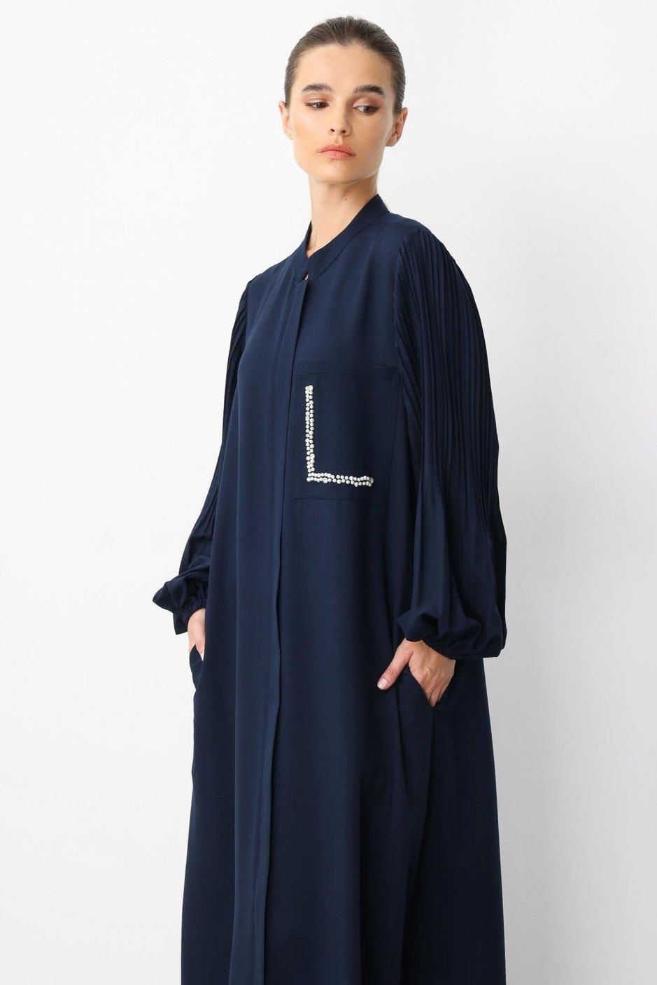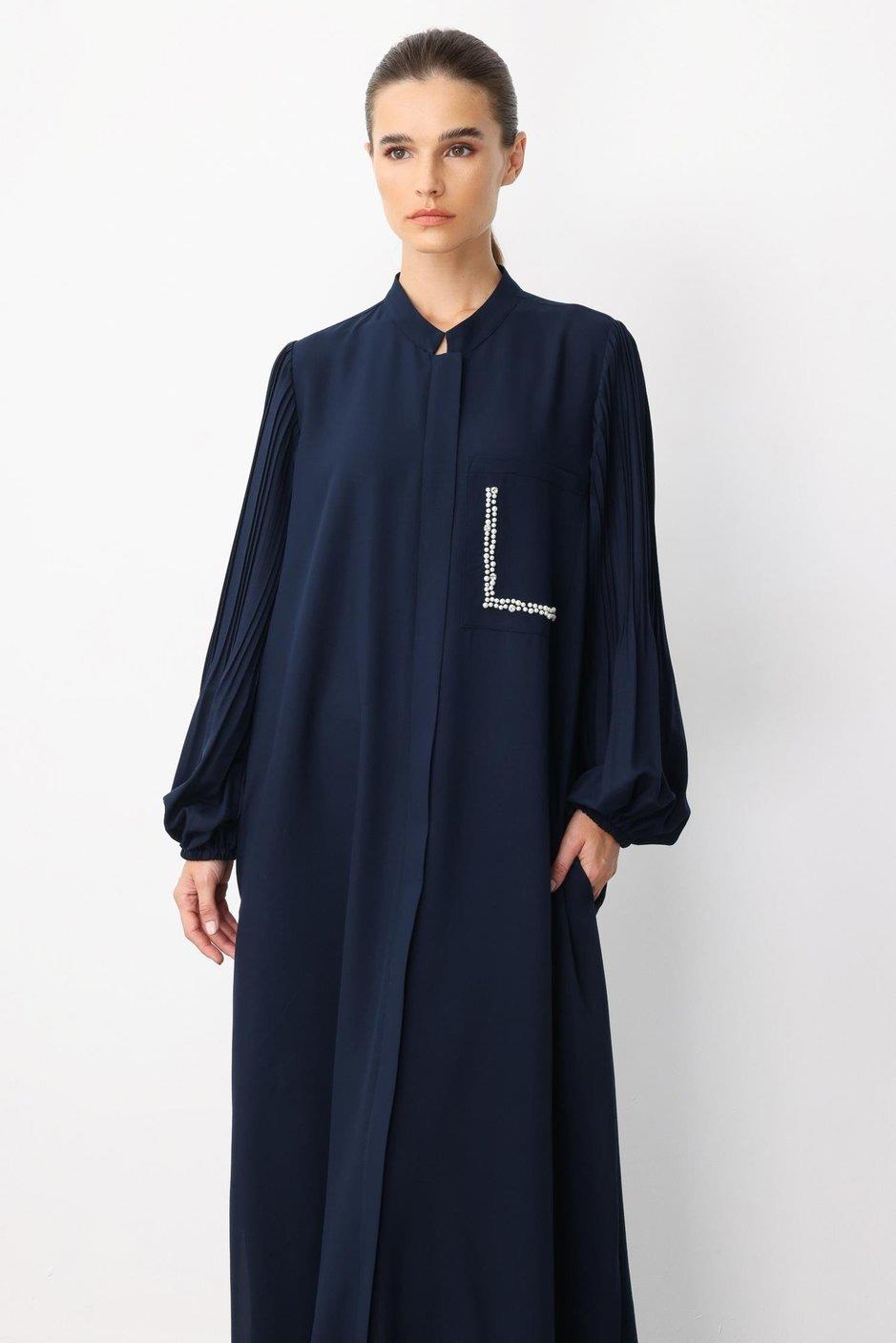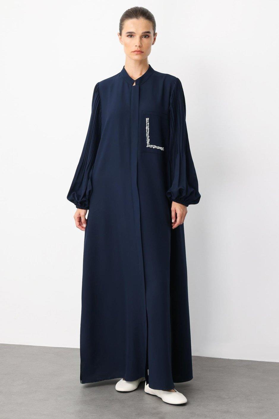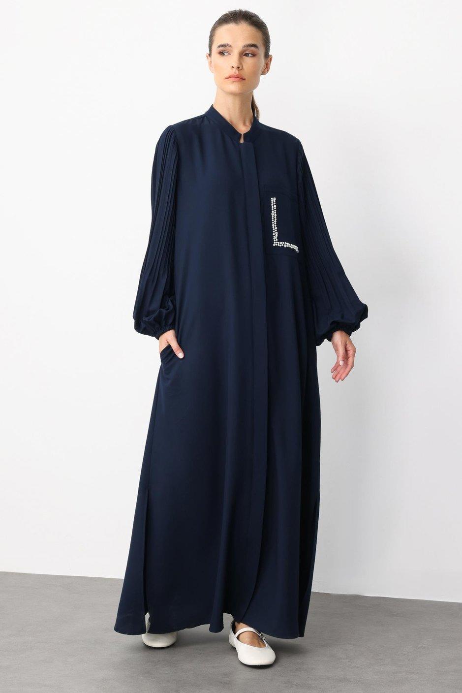 Micca 251879M Pilise Kol ve İnci Cep Detaylı Ferace - Lacivert