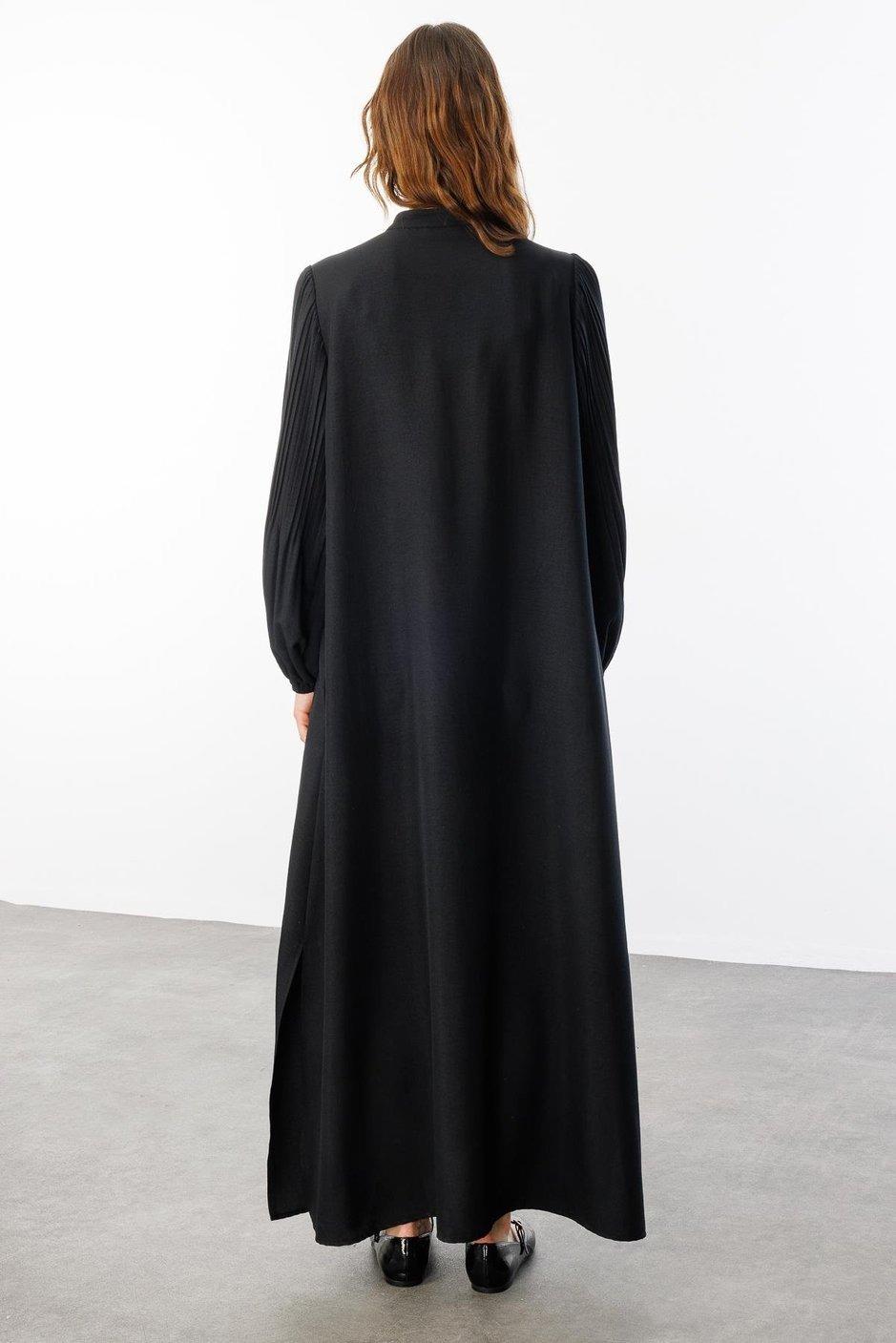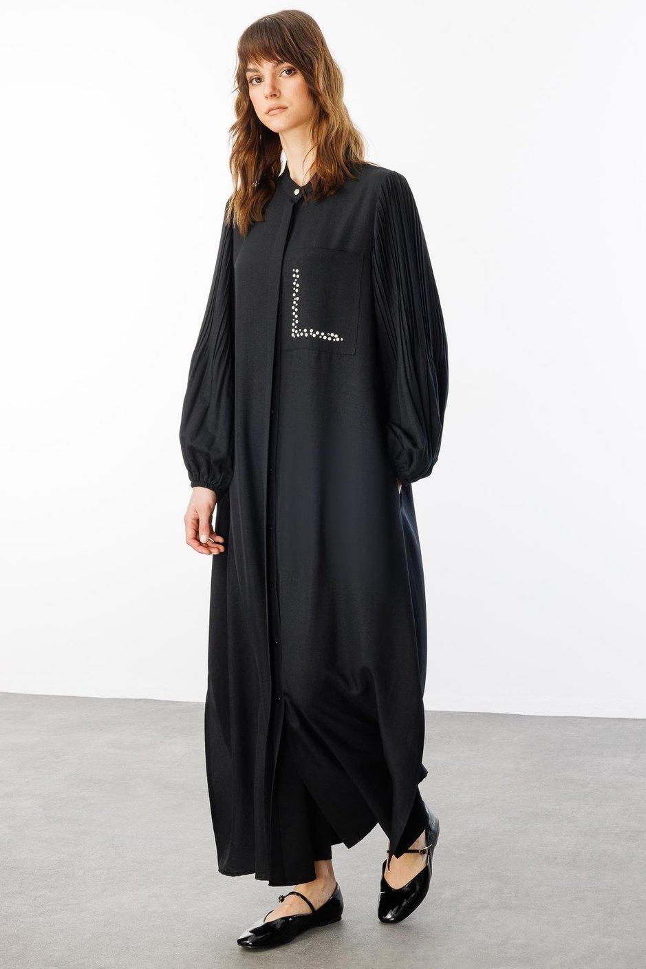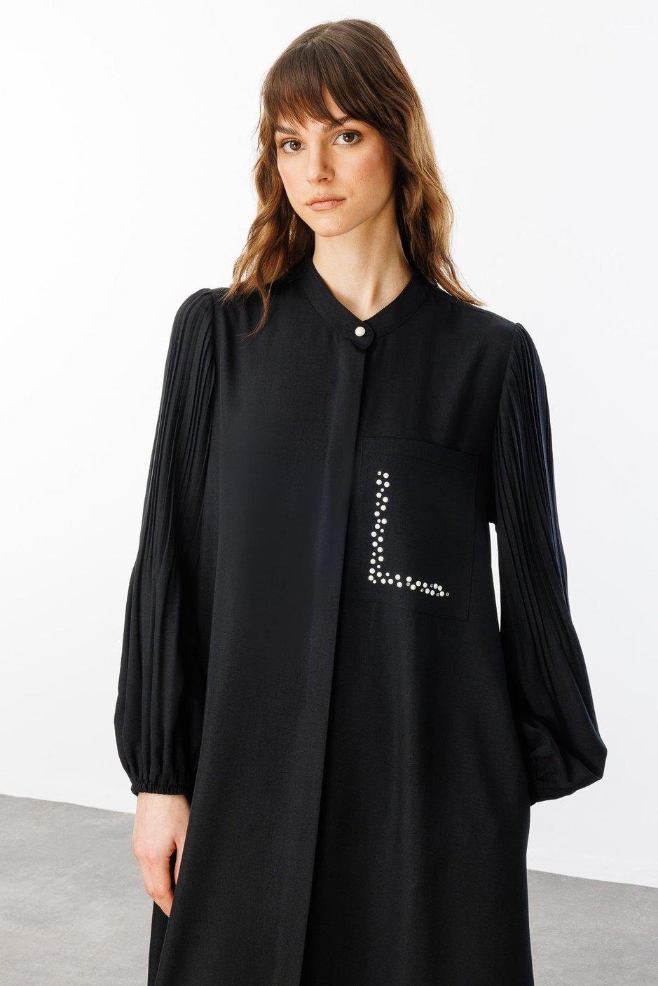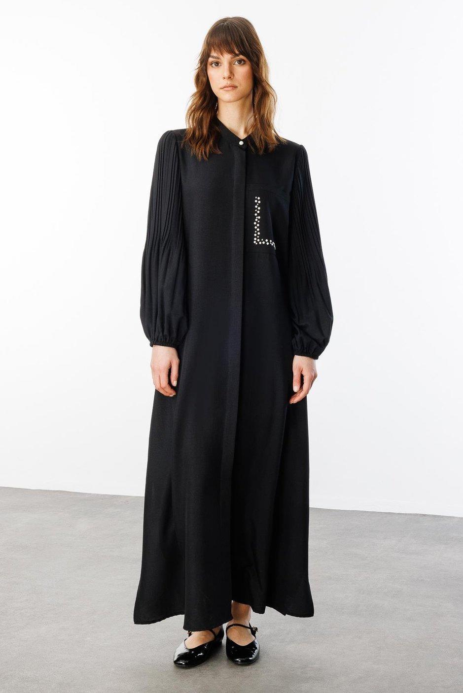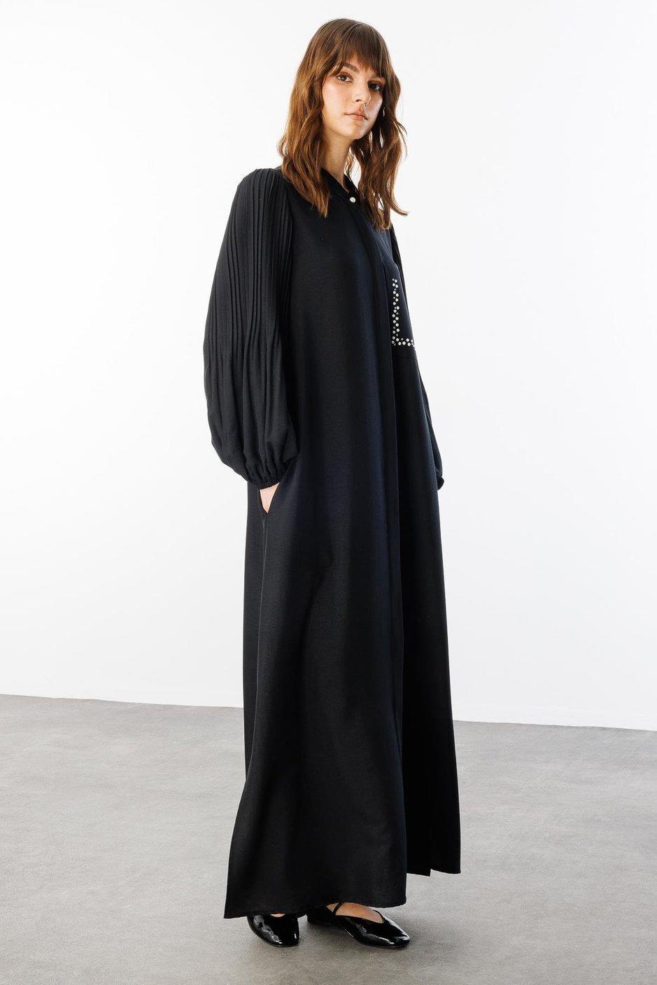Micca 251879M Pilise Kol ve İnci Cep Detaylı Ferace - Siyah
