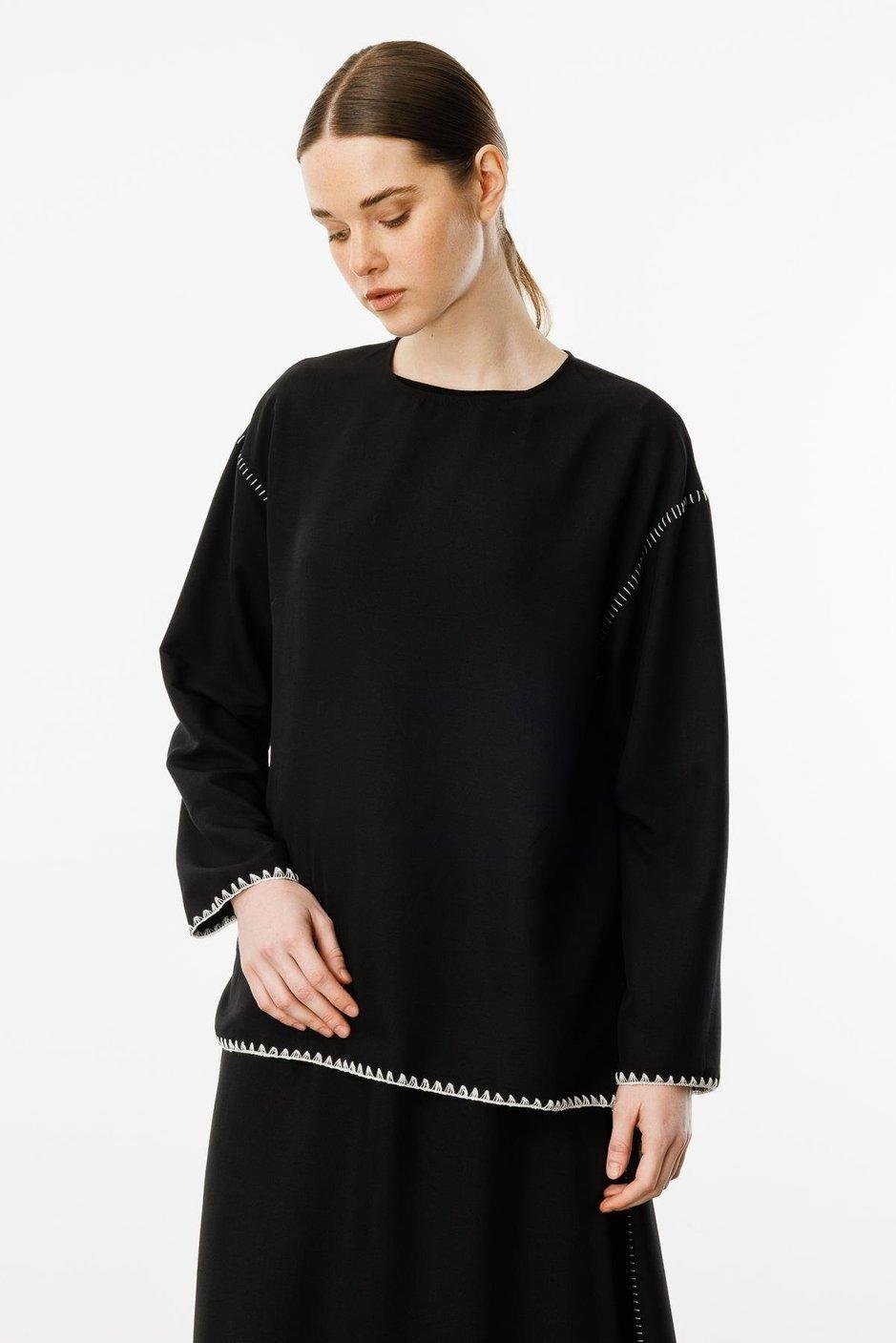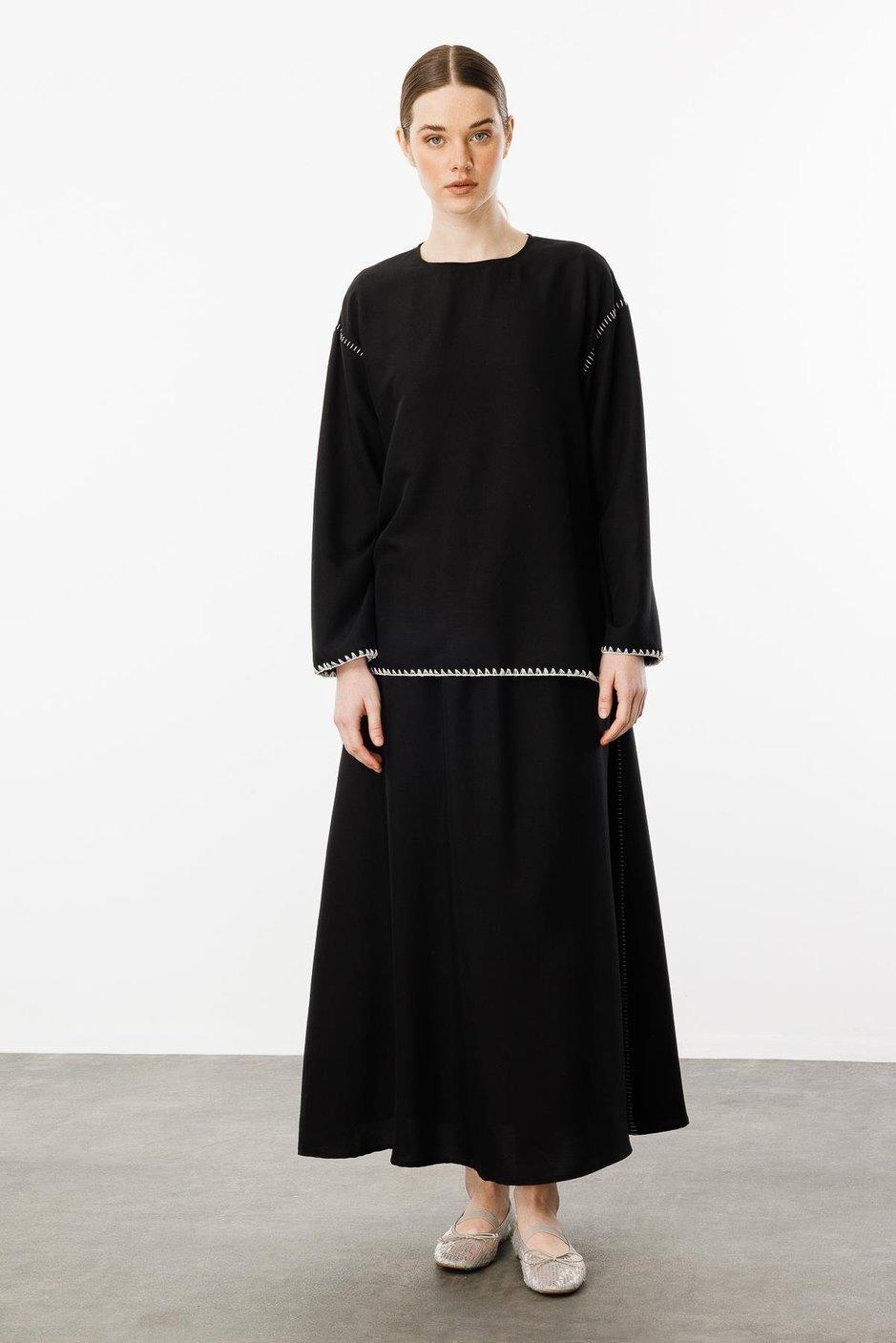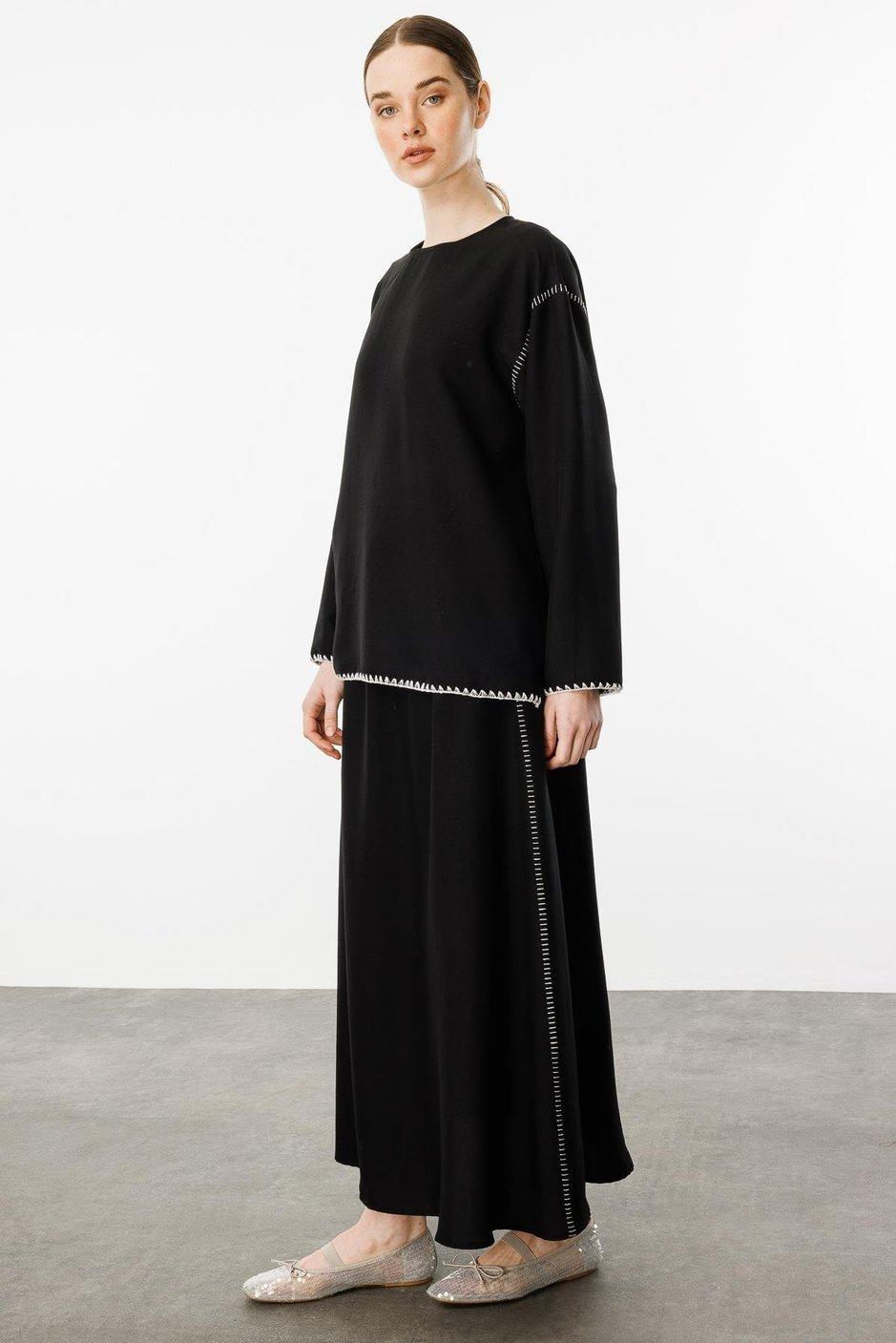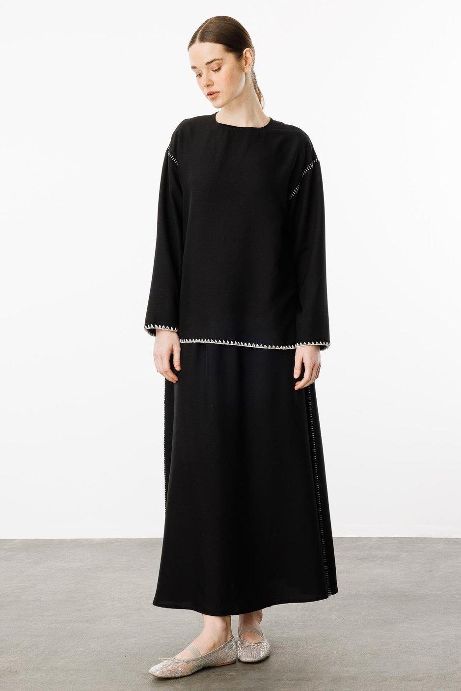 Micca 251883M Kenar Nakış Detaylı İpekçe Doku Etekli Takım - Siyah (350103815)