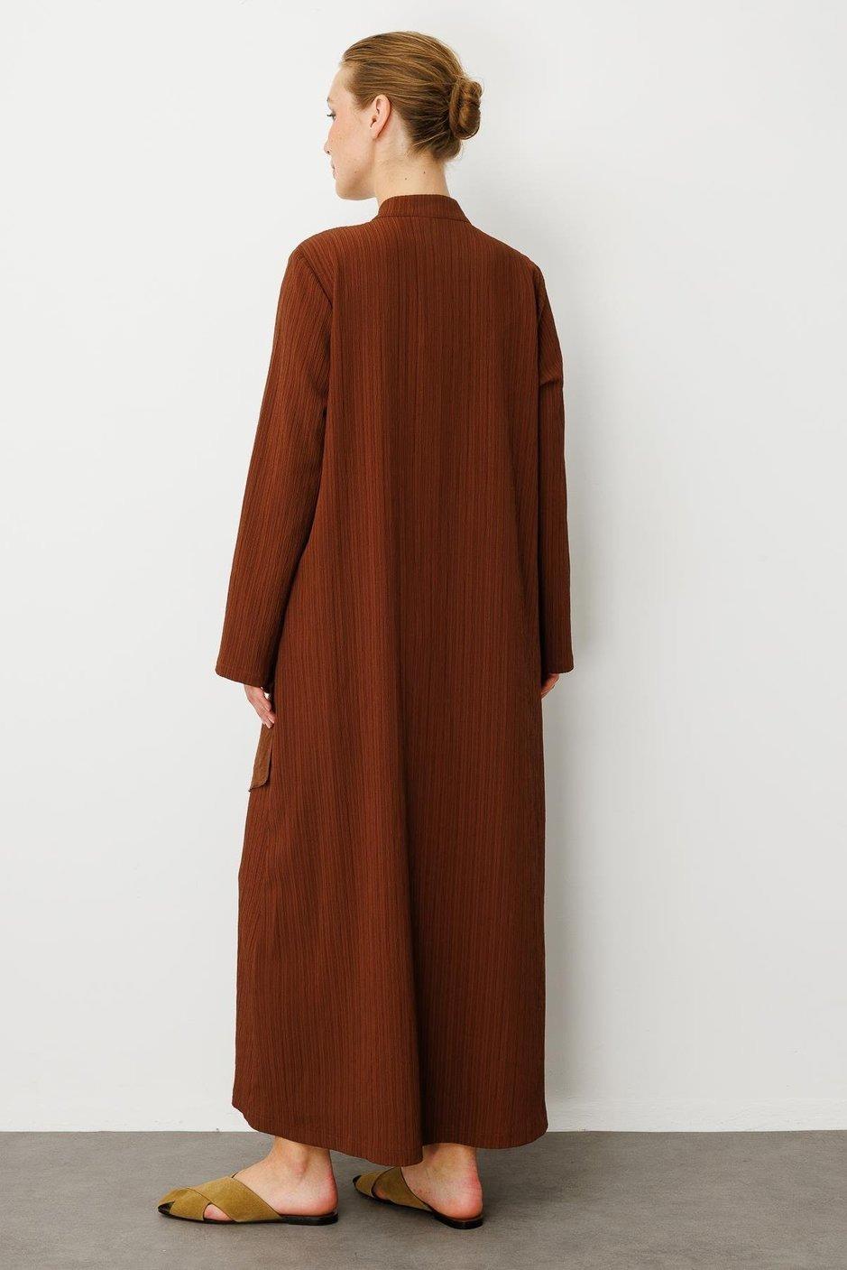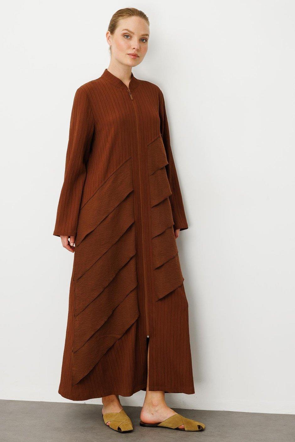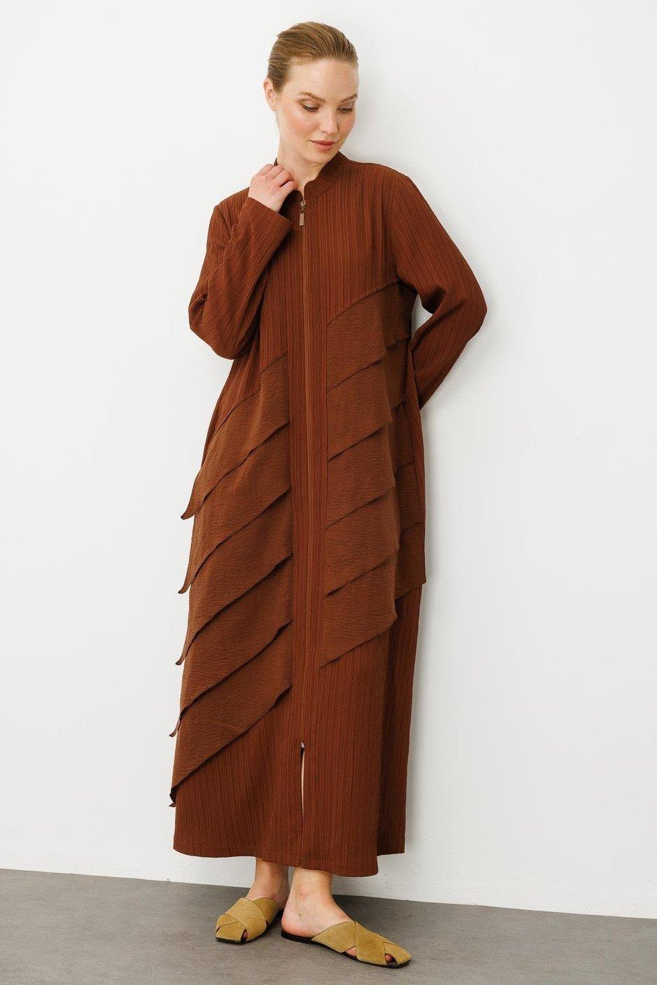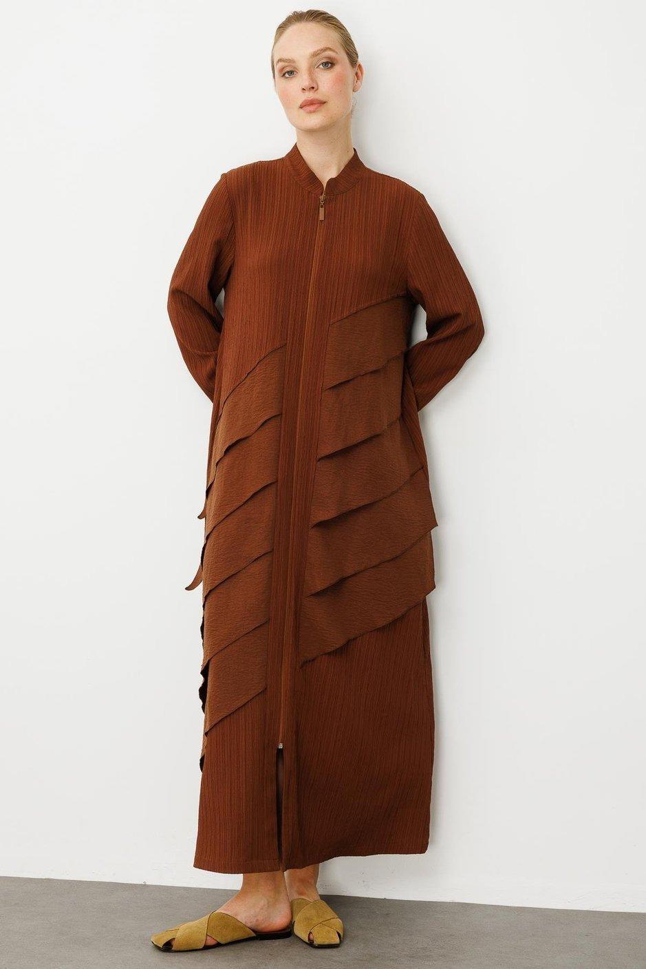 Micca 251884M Paralel Şifon Garni Detaylı Ferace - Kahve