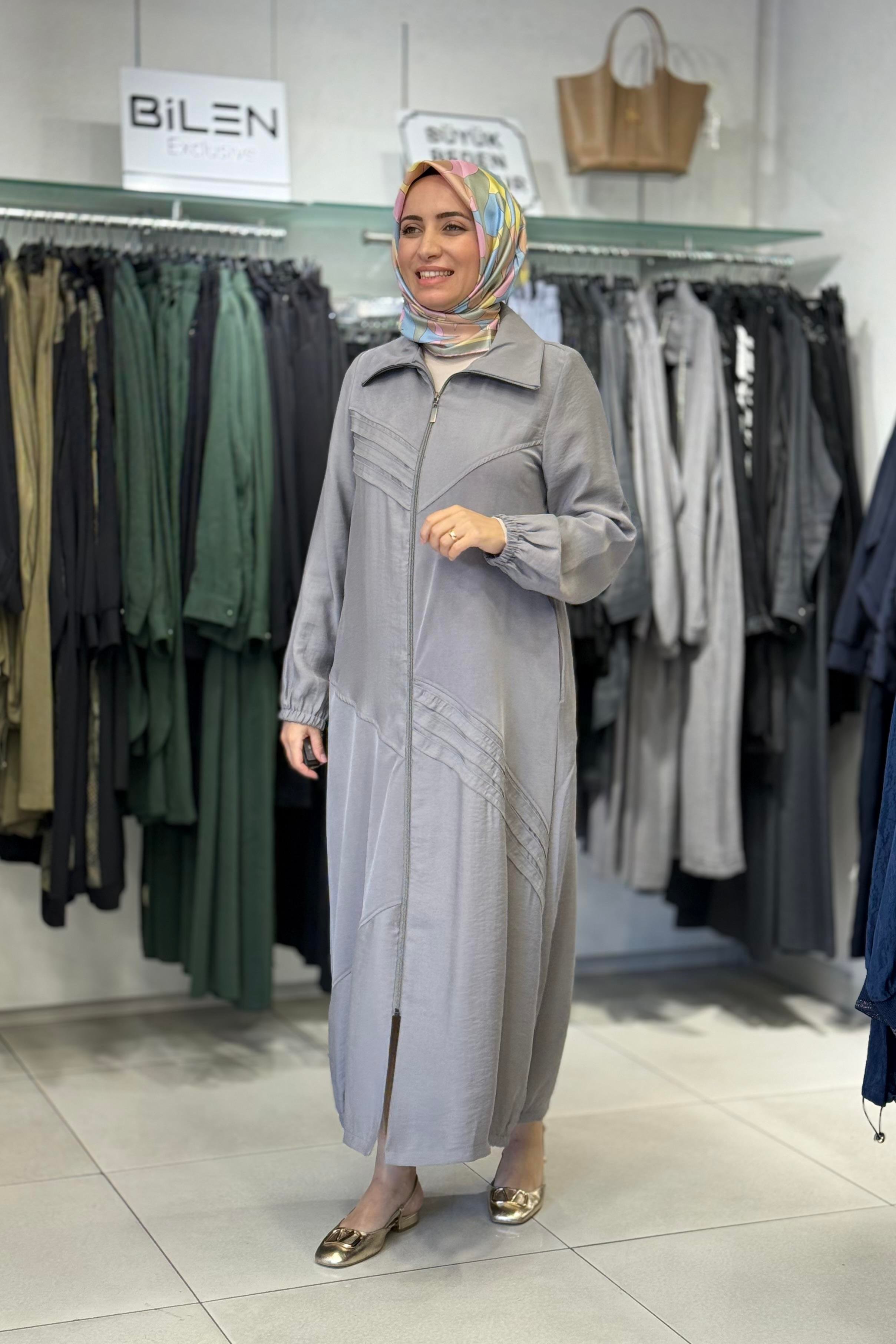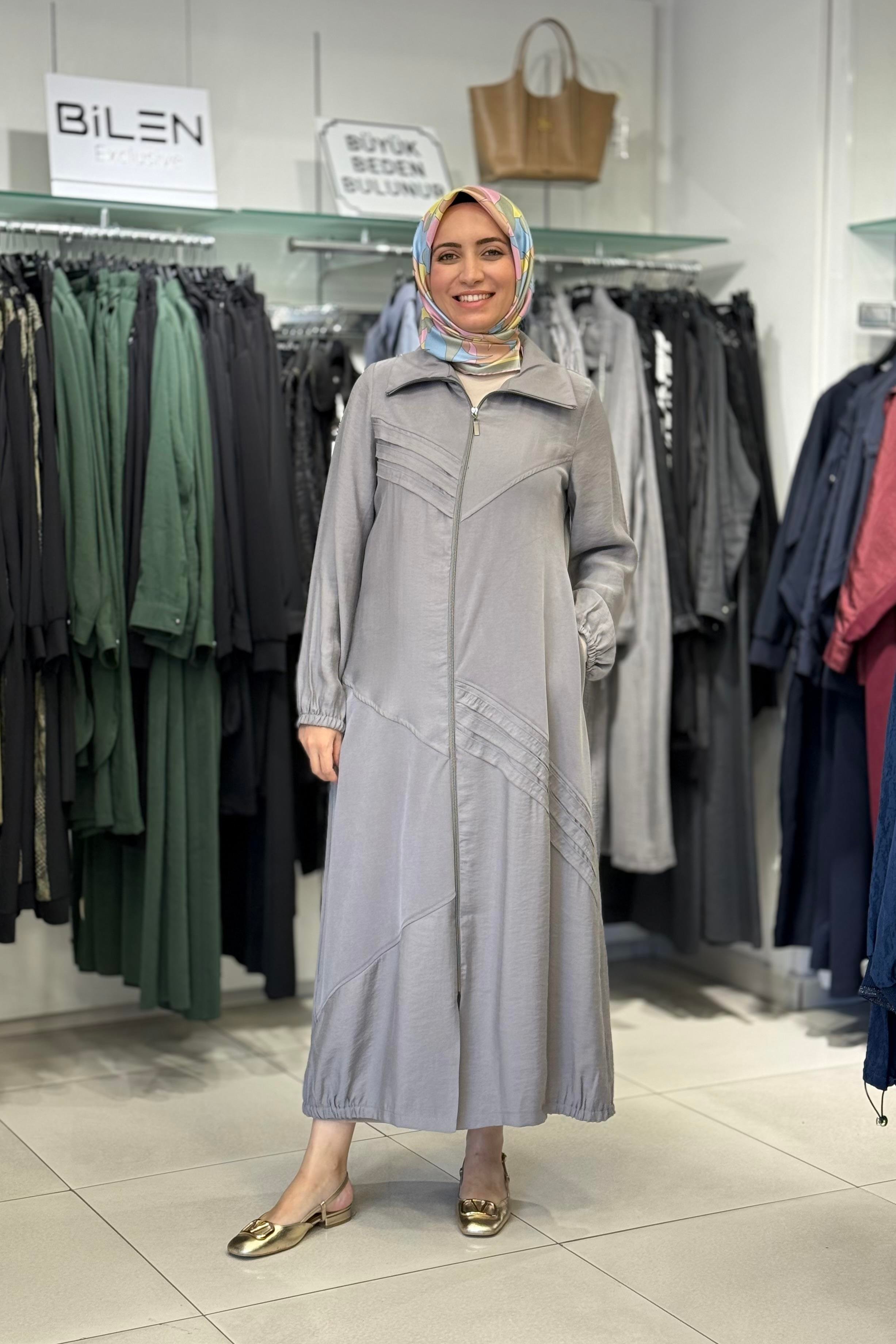 Micca 252521M Ön V Dikişli Fermuarlı Kap - Gri (378103901)
