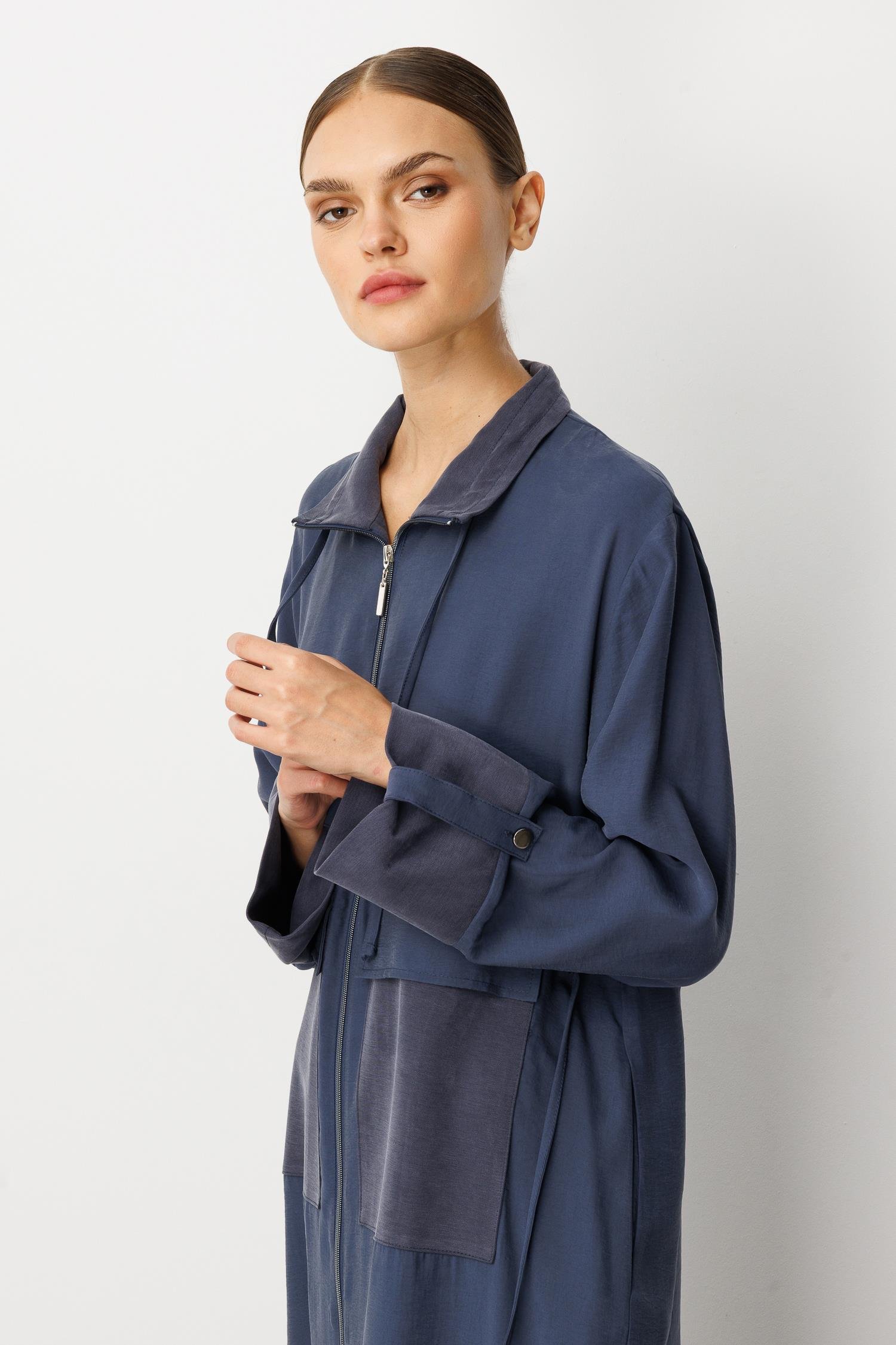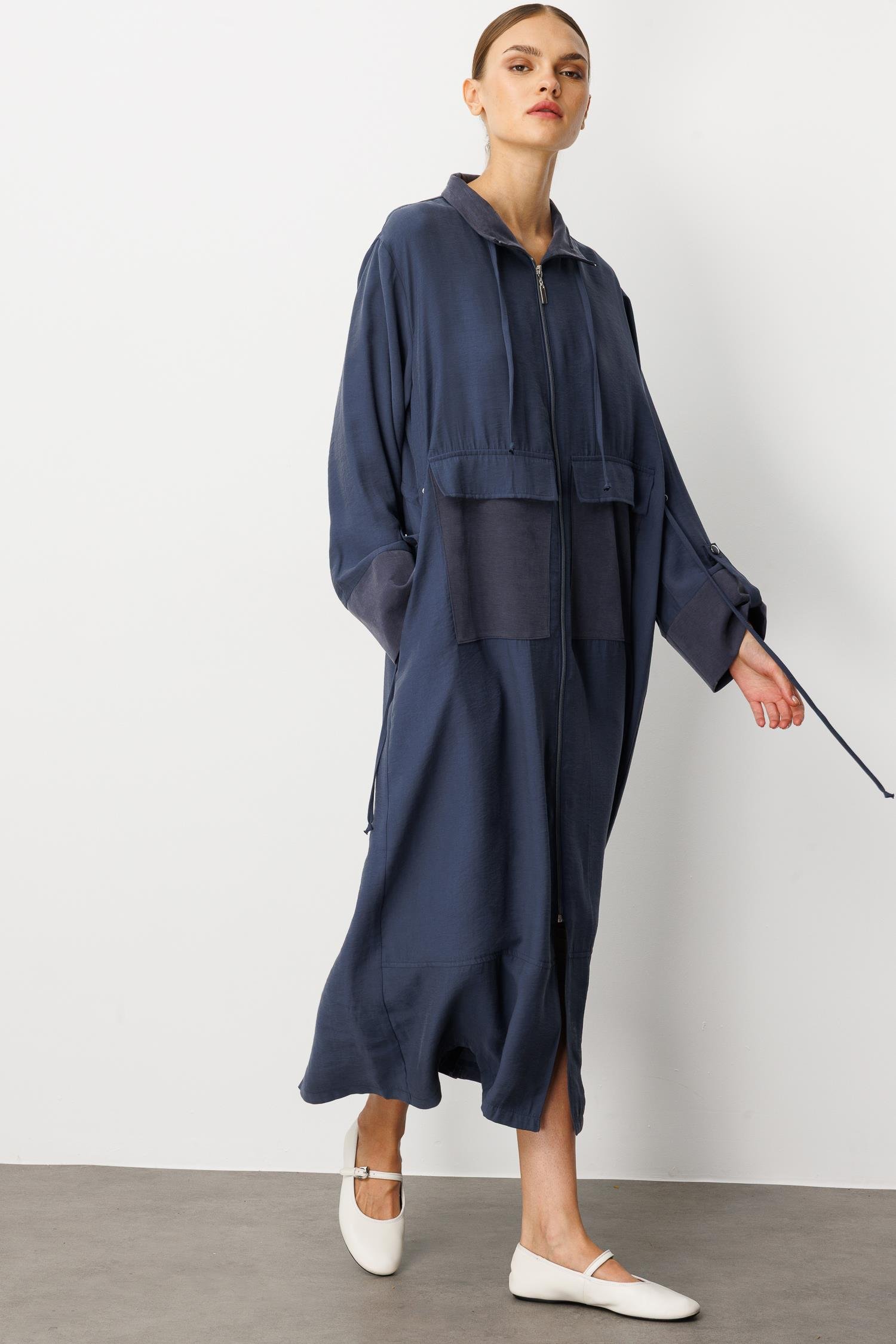Micca 252557M Büyük Cep Detaylı Fermuarlı Kap - Lacivert (378103907)