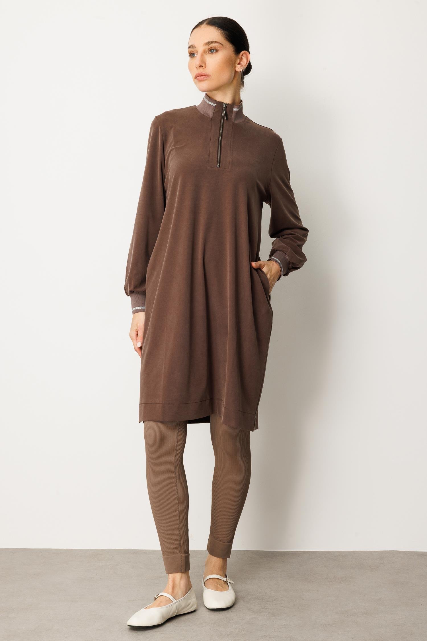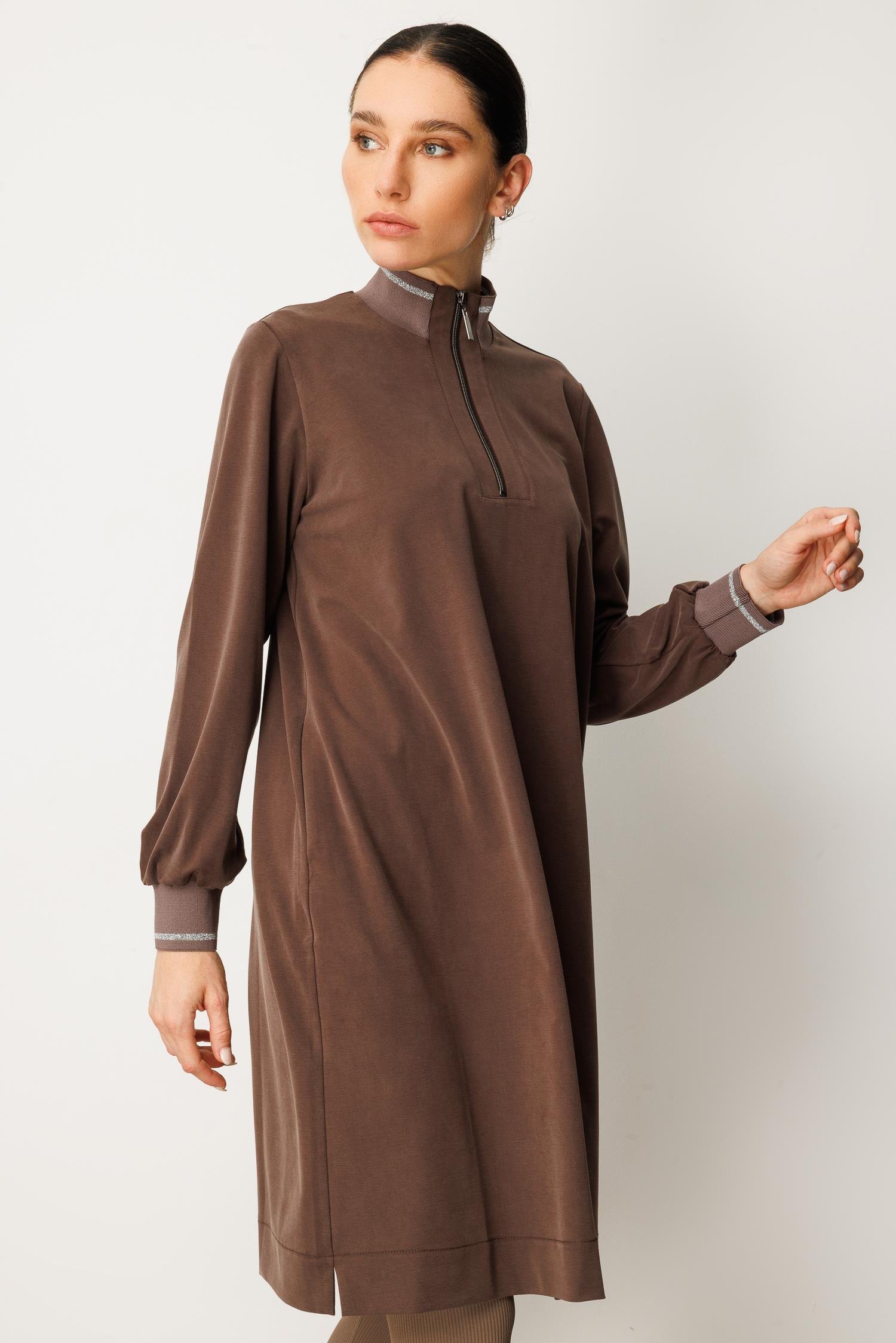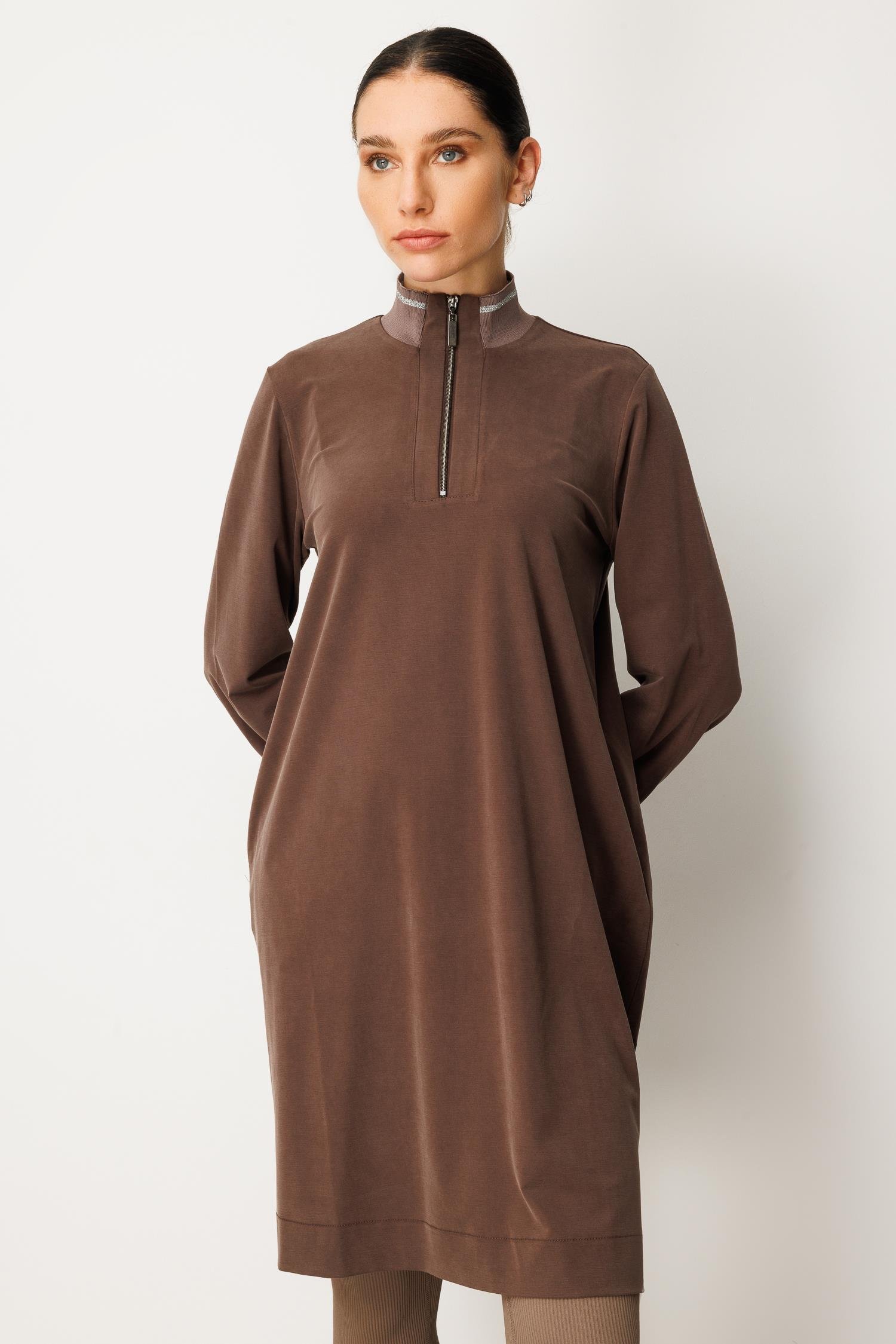 Micca 252567M Yarım Fermuar Detay Tunik - Kahve