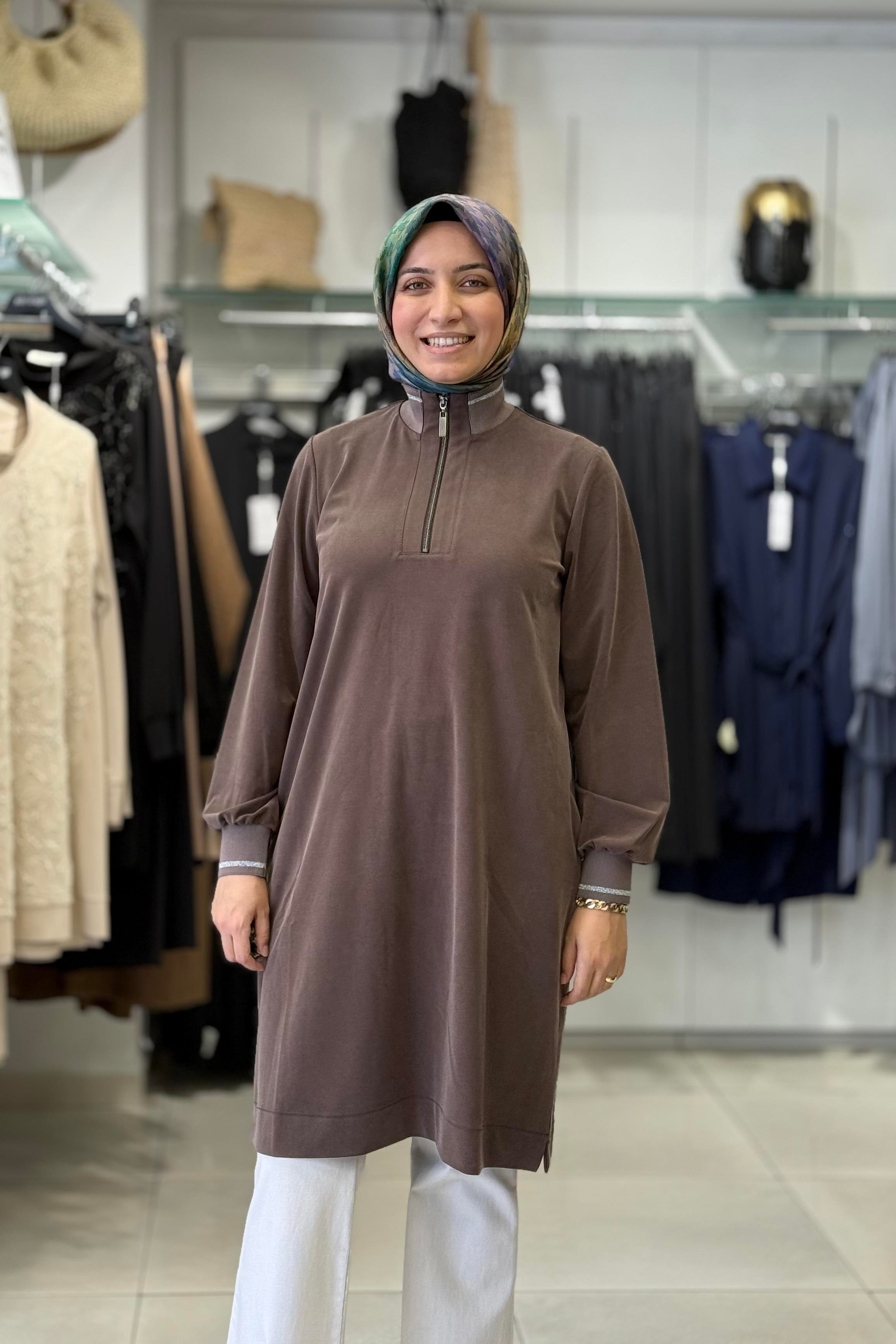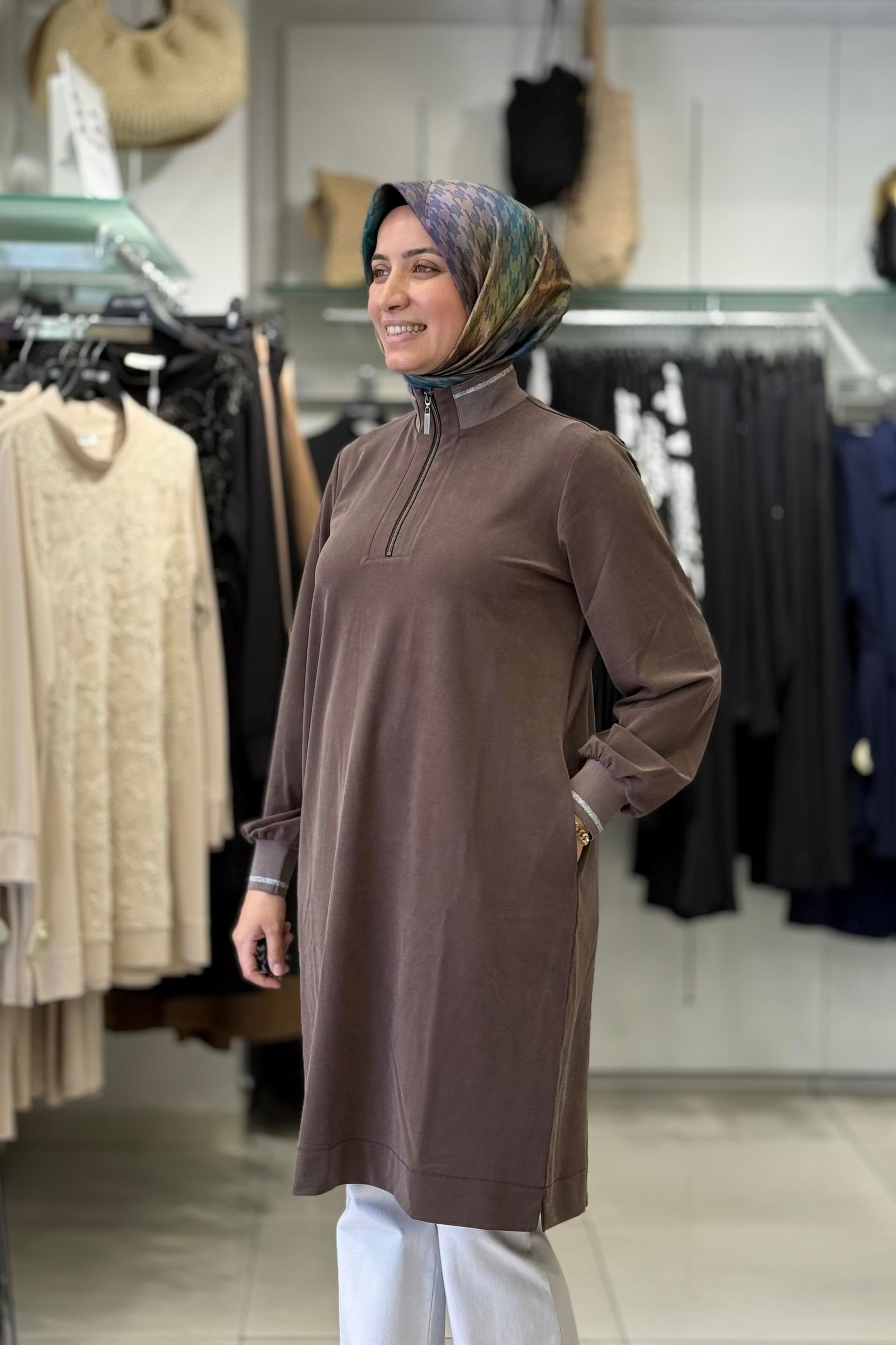 Micca 252567M Yarım Fermuar Detay Tunik - Kahve (362103901)