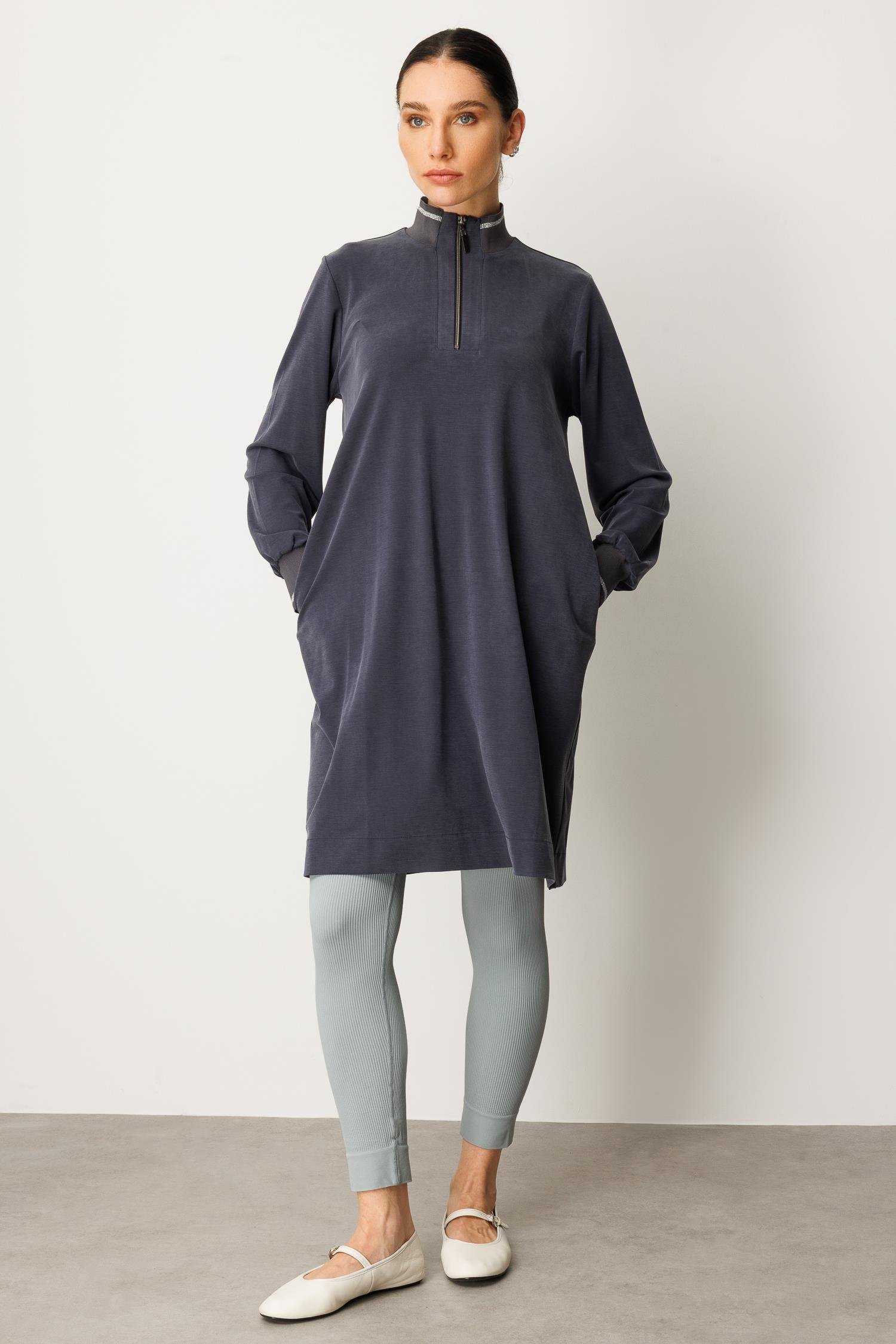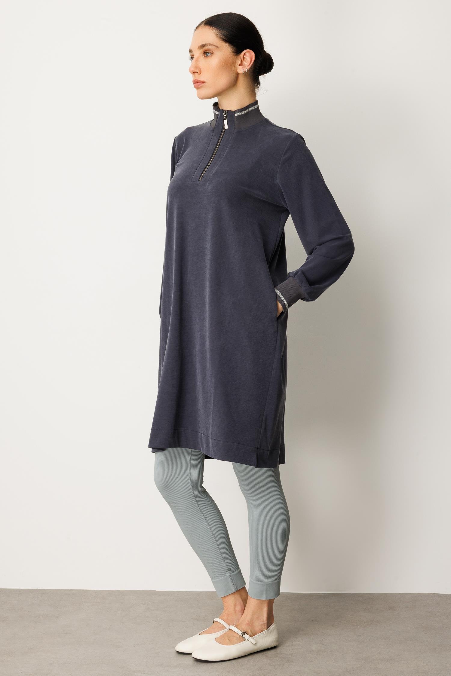 Micca 252567M Yarım Fermuar Detay Tunik - Lacivert