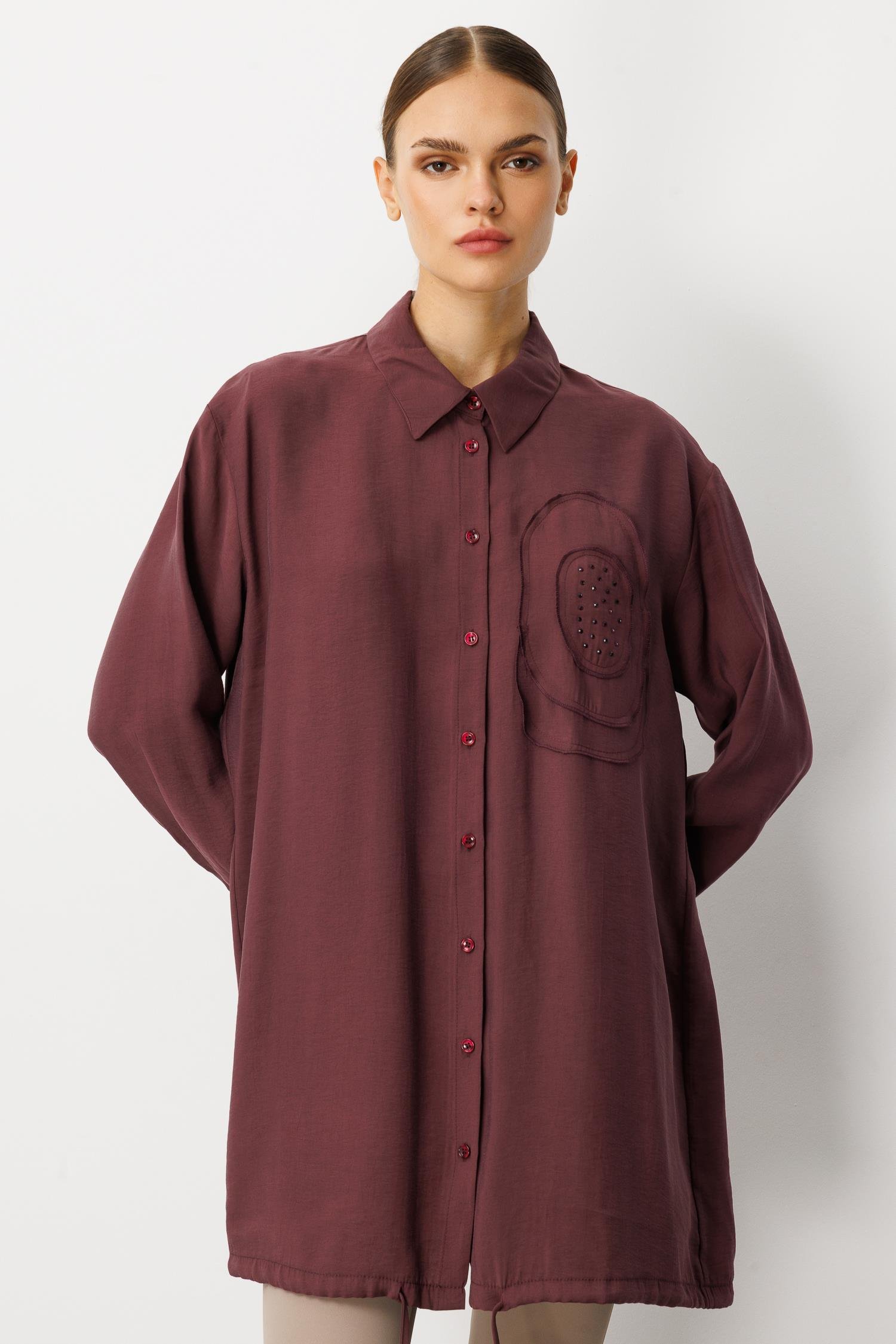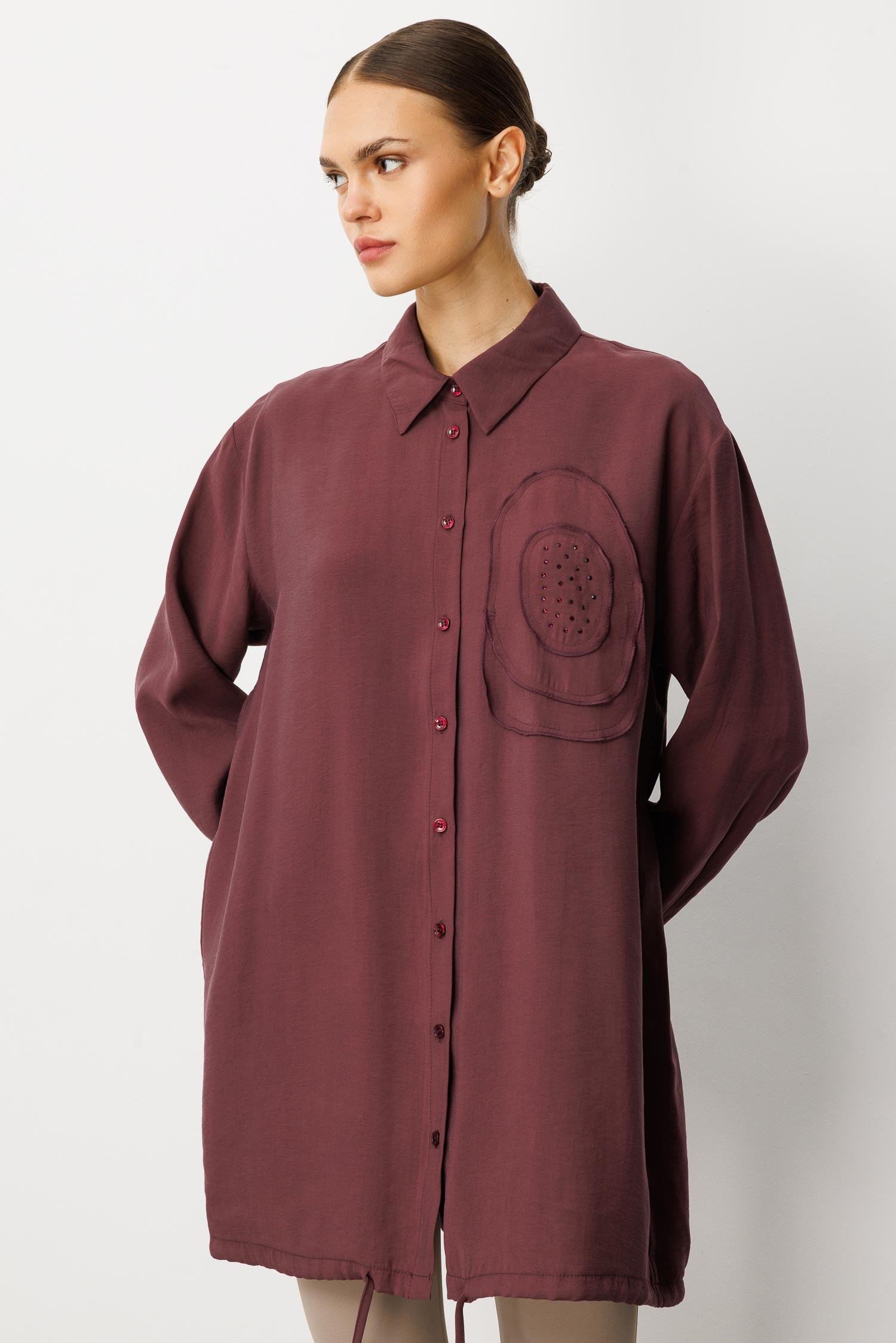 Micca 252569M Bir Yanı Taş İşlemeli Tunik - Bordo