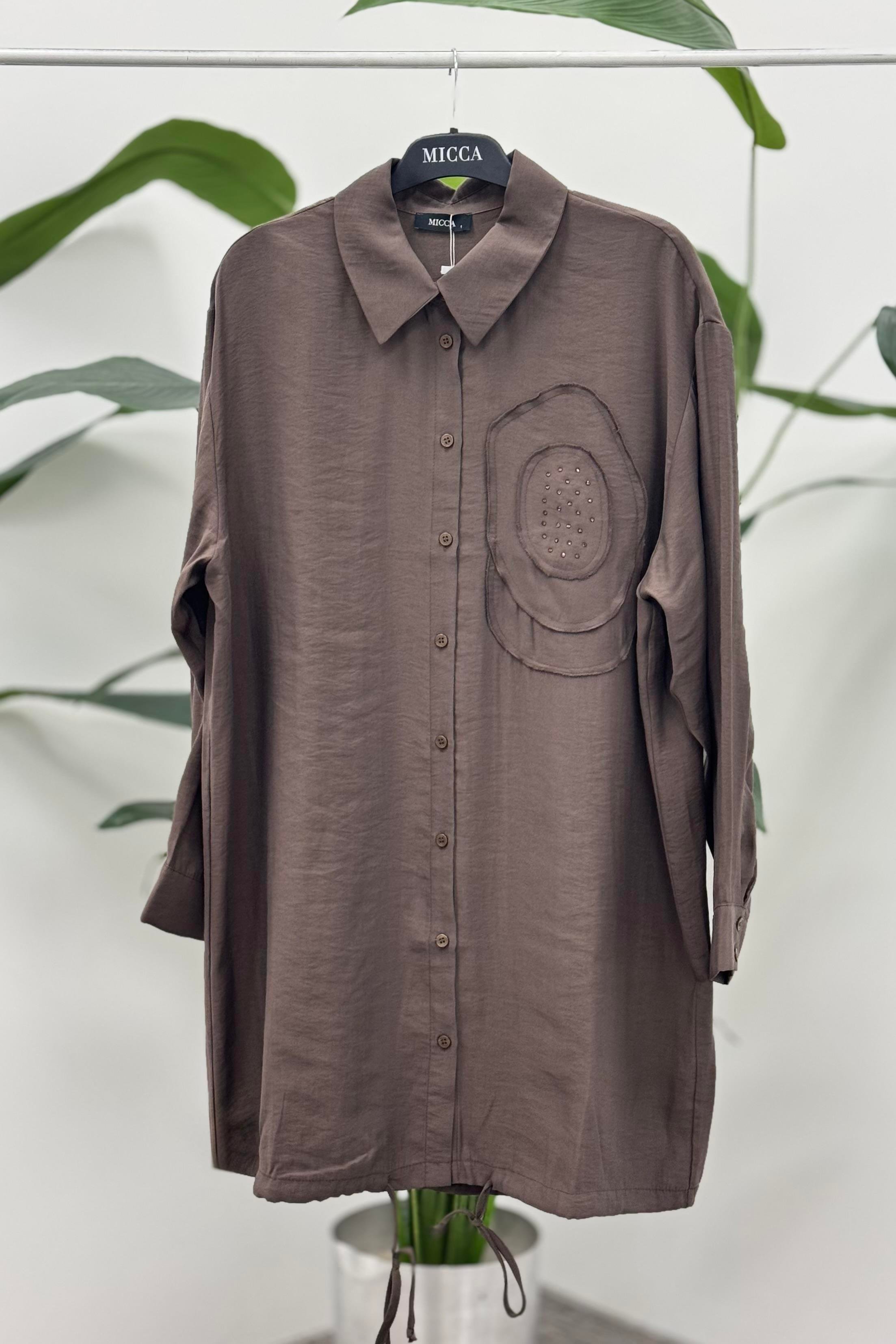 Micca 252569M Bir Yanı Taş İşlemeli Tunik - Kahve