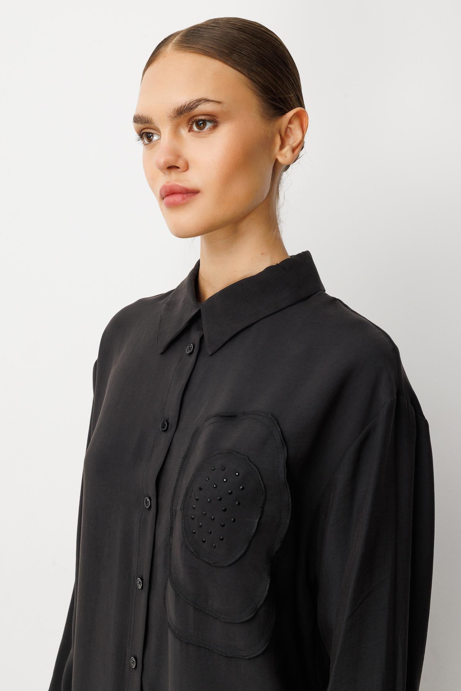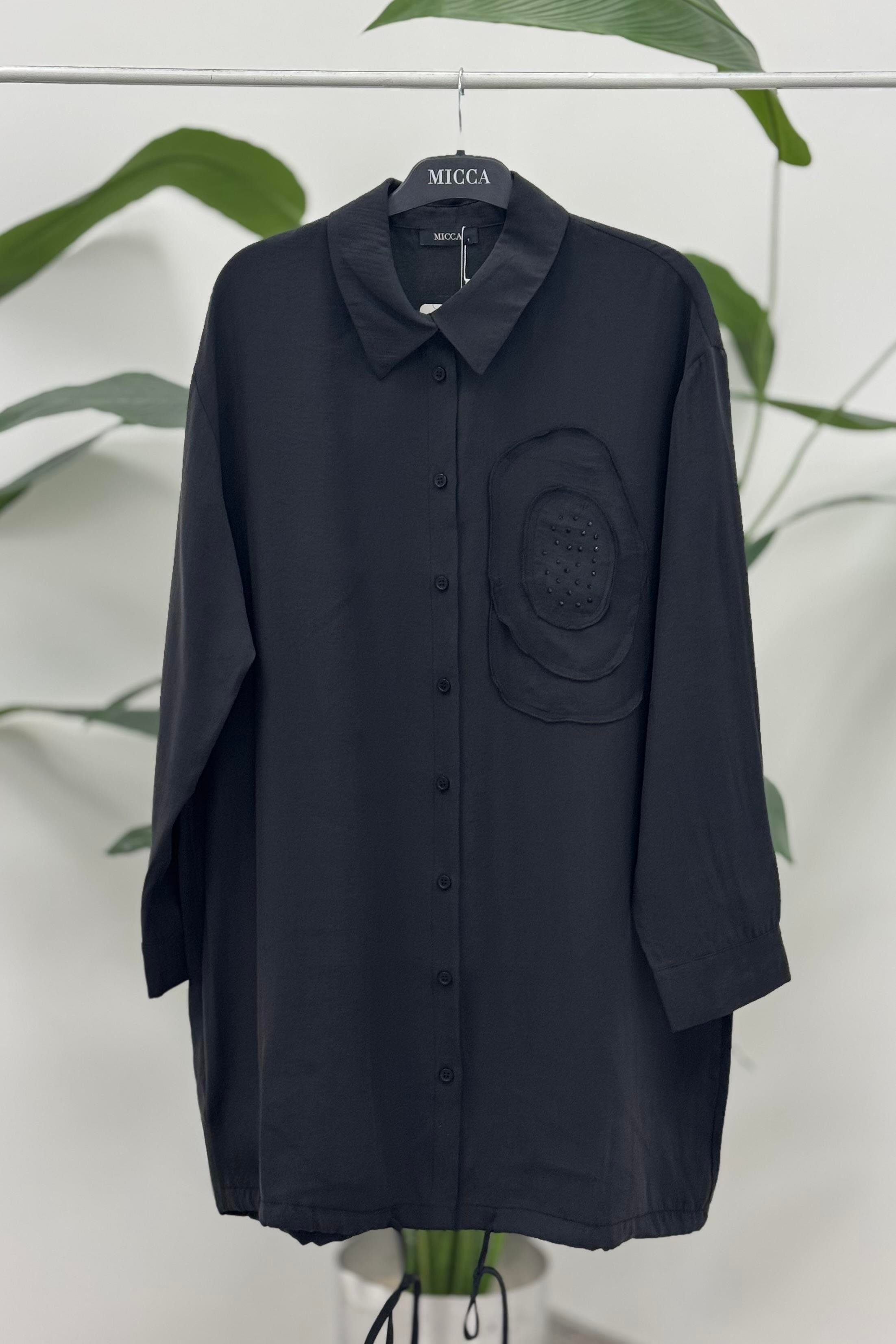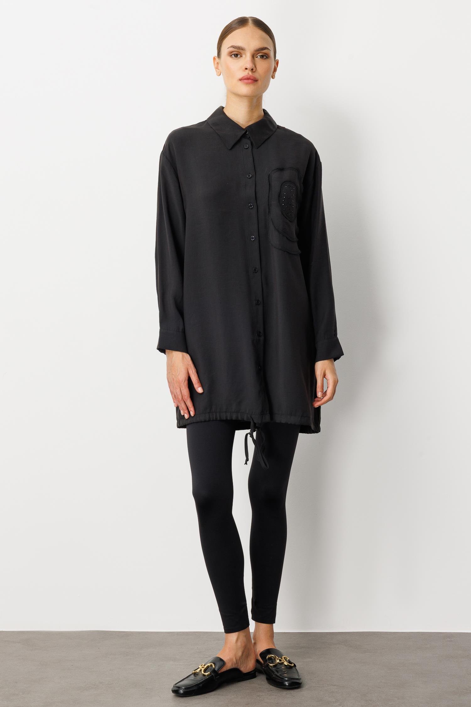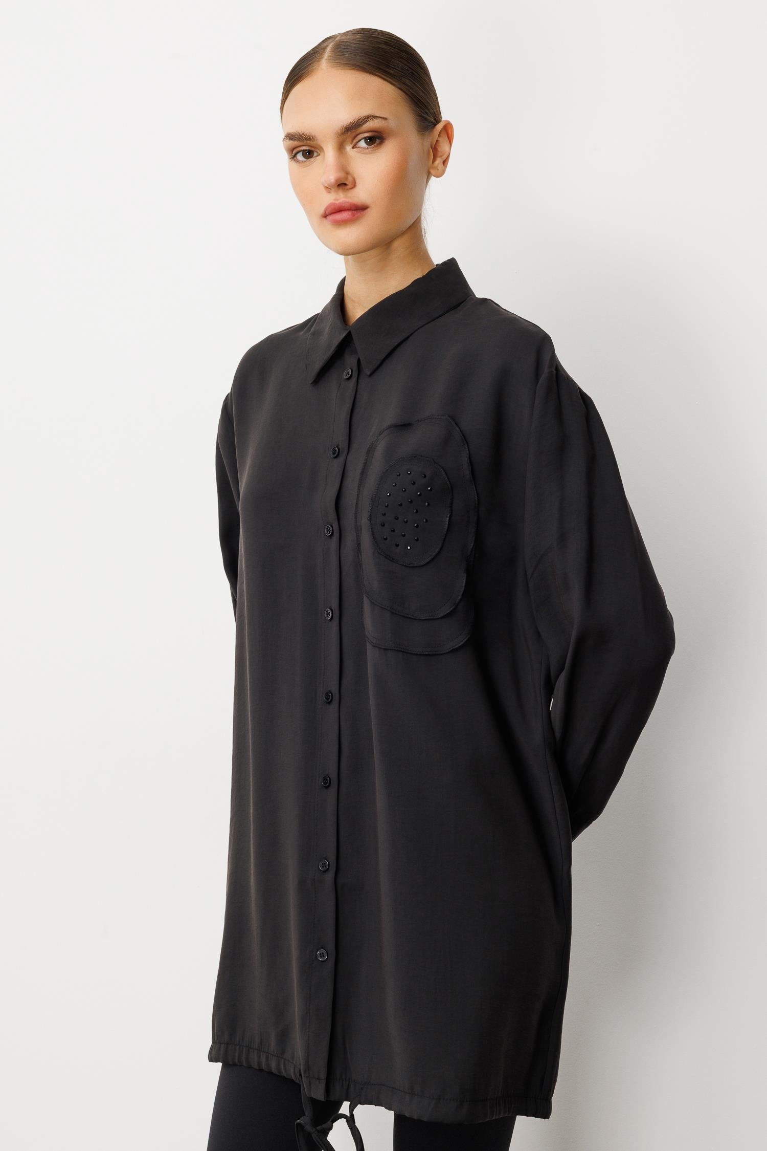 Micca 252569M Bir Yanı Taş İşlemeli Tunik - Siyah