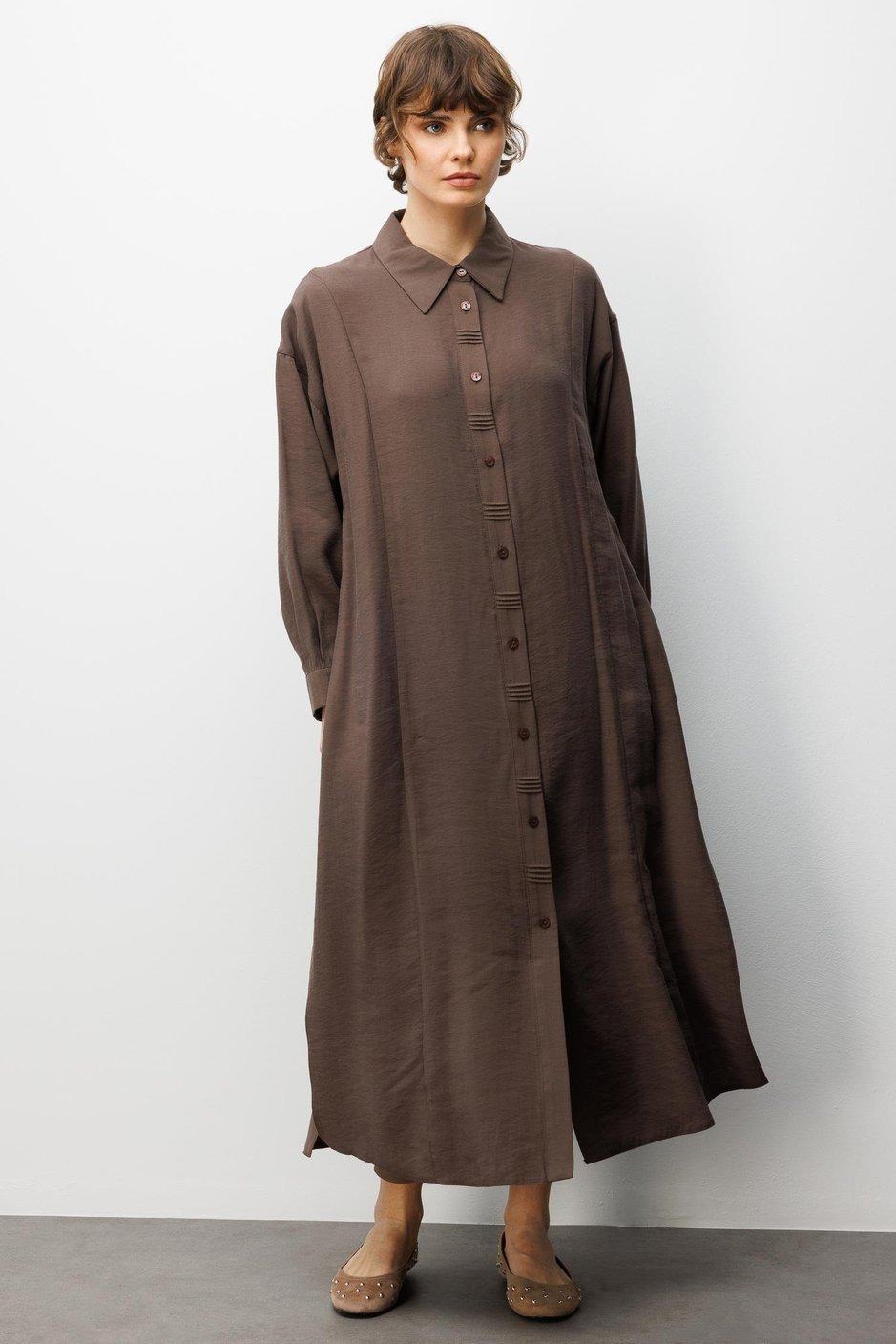 Micca 252574M Düğme Detay Uzun Tunik - Kahve