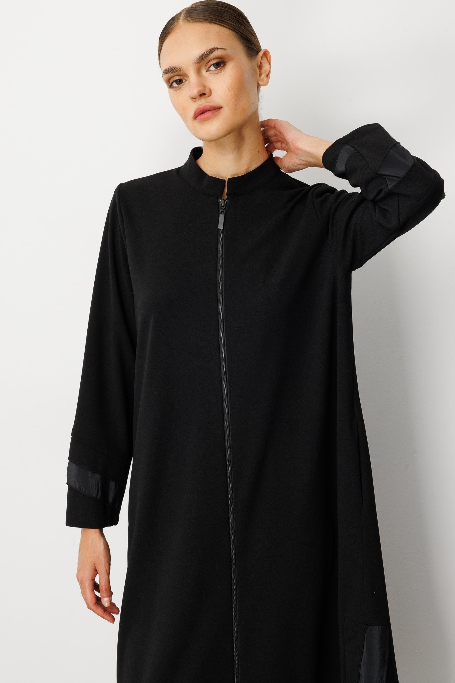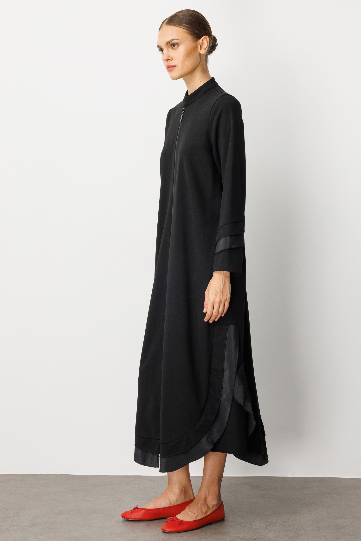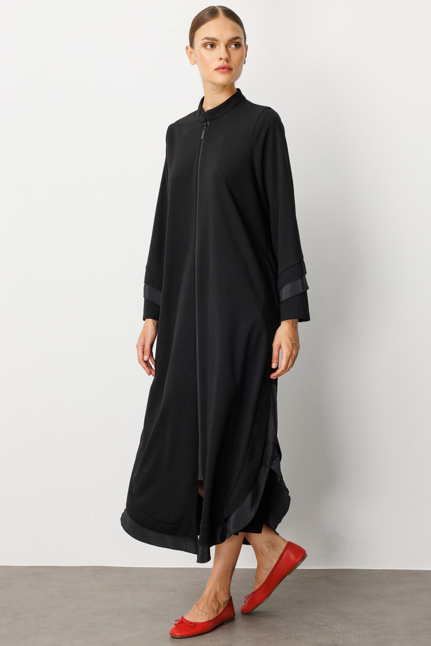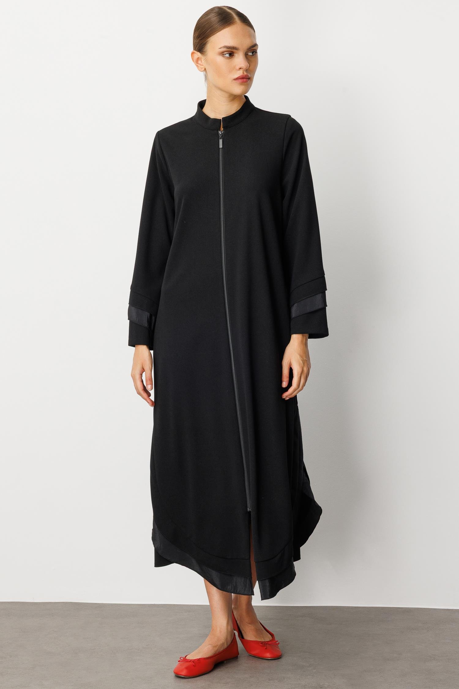 Micca 252586M Etek Ucu Gömlek Detay Fermuarlı Ferace - Siyah