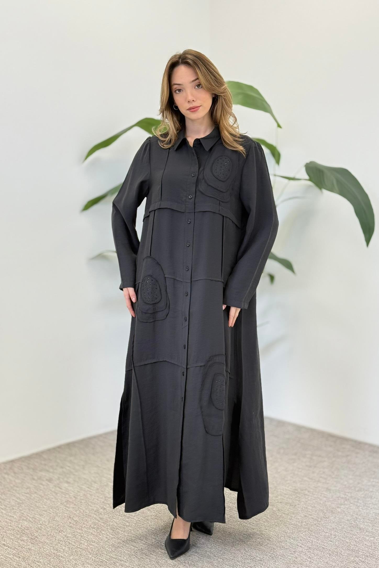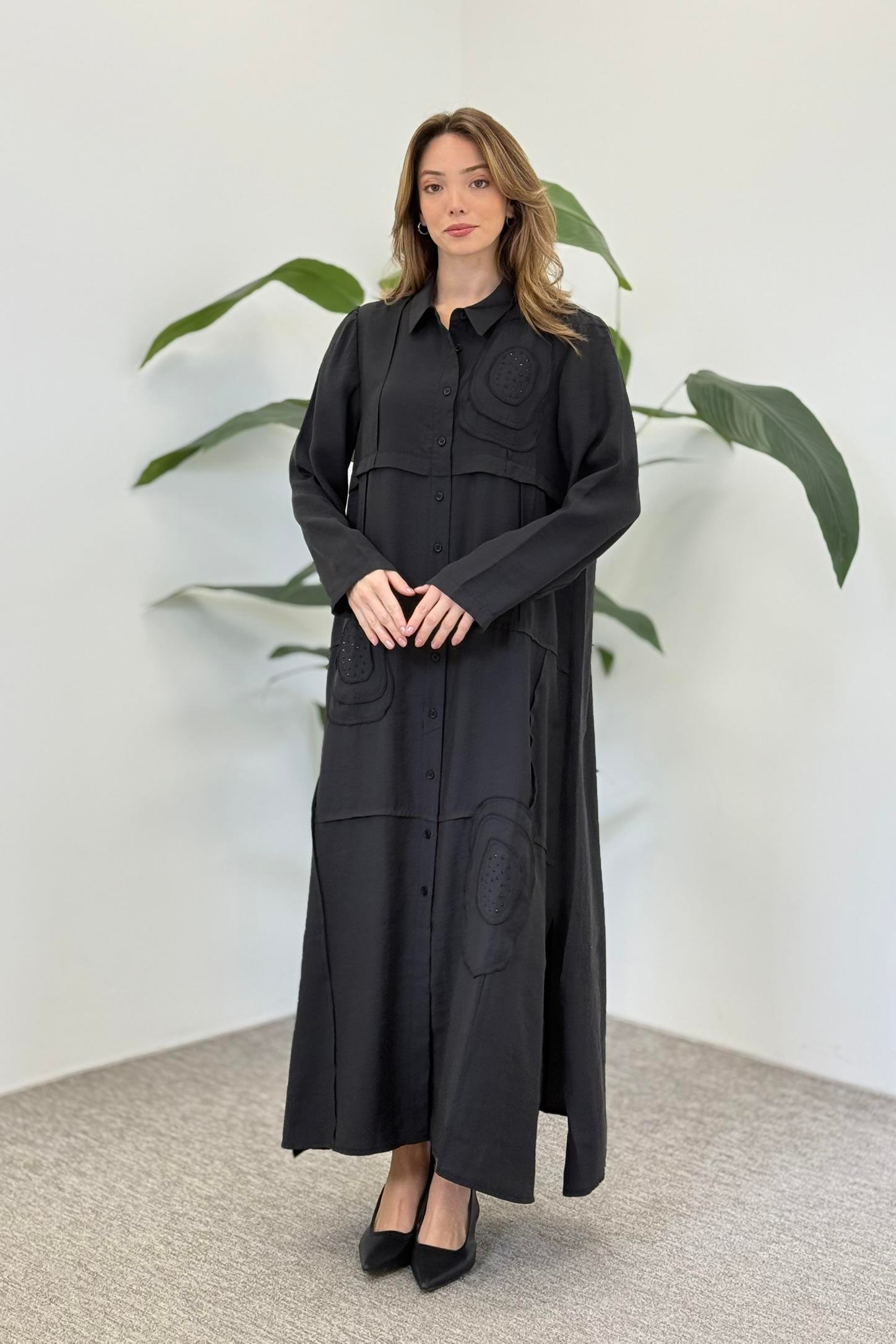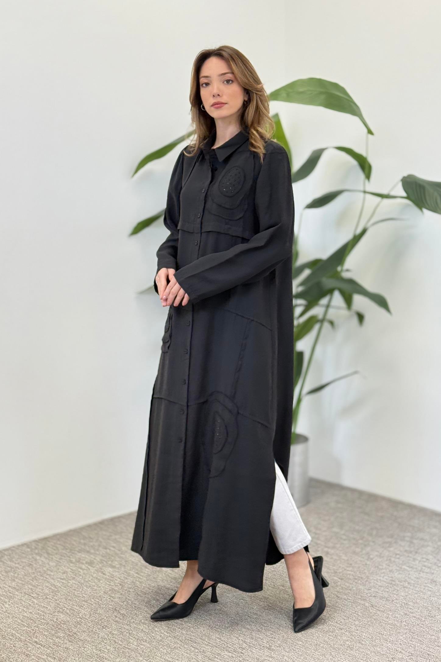 Micca 252601M Taş Baskılı Düğmeli Kap - Siyah