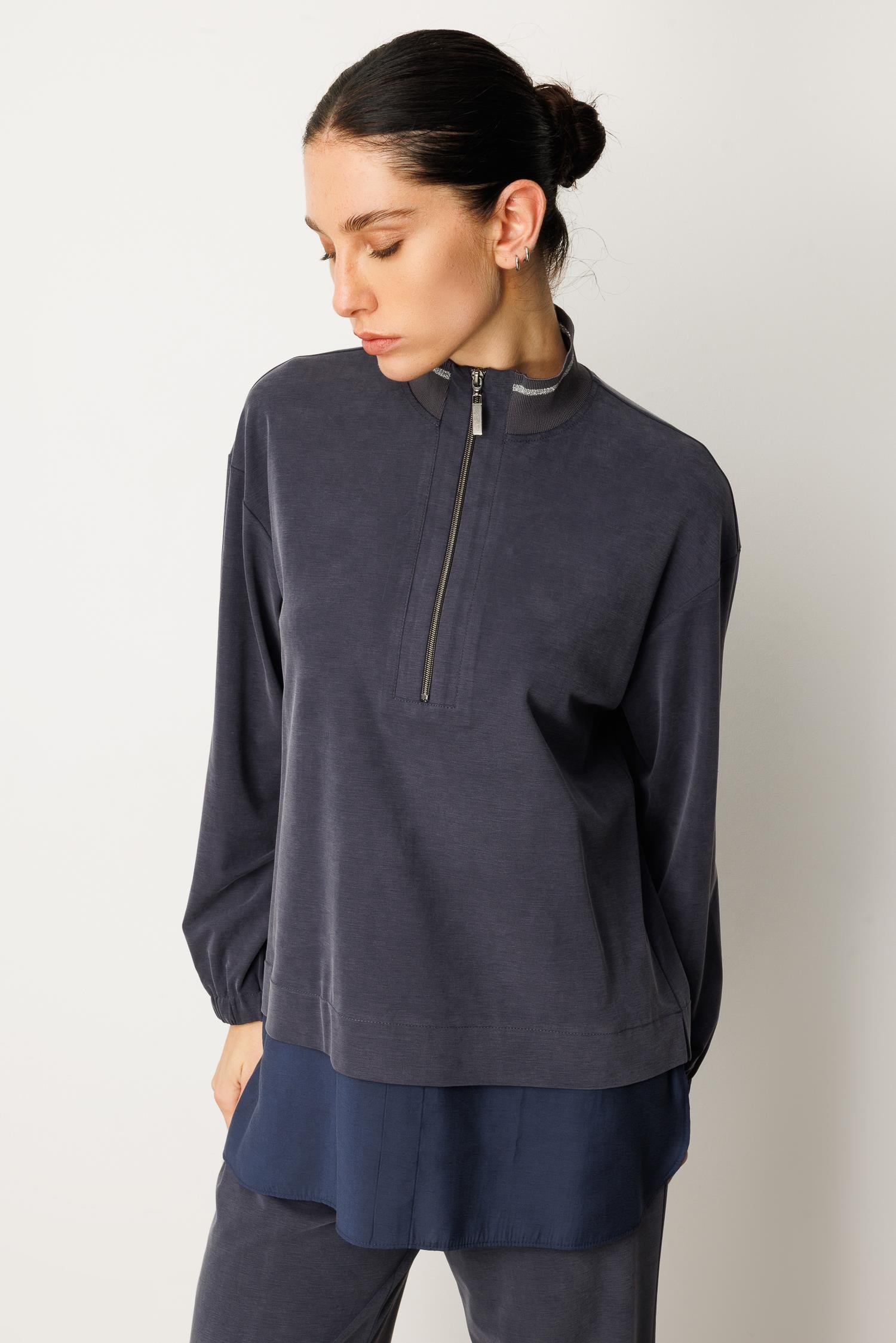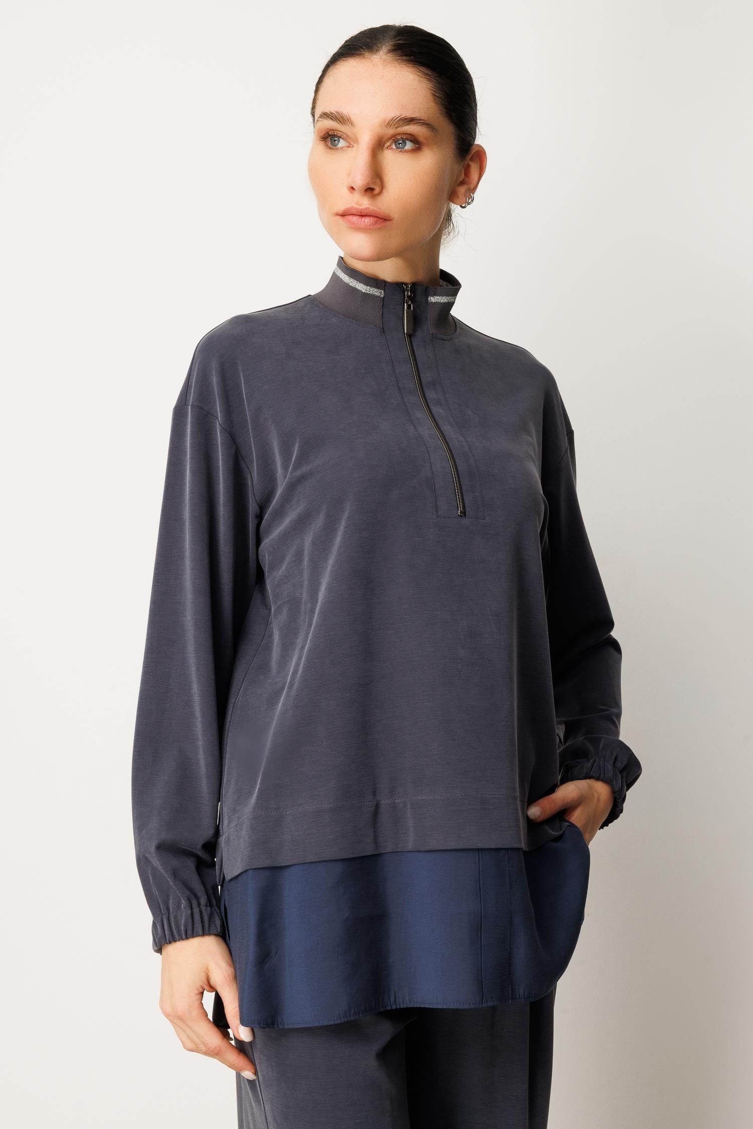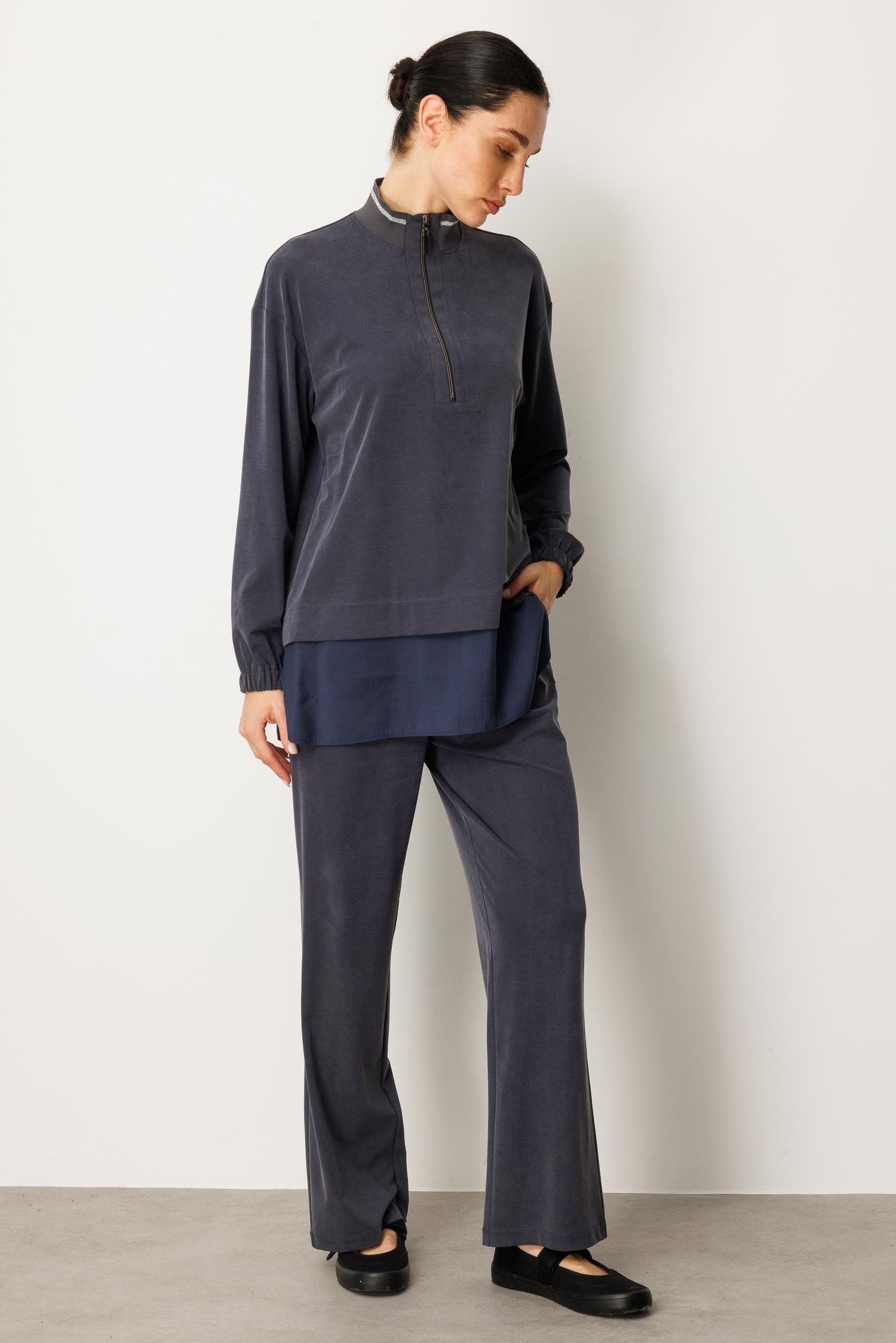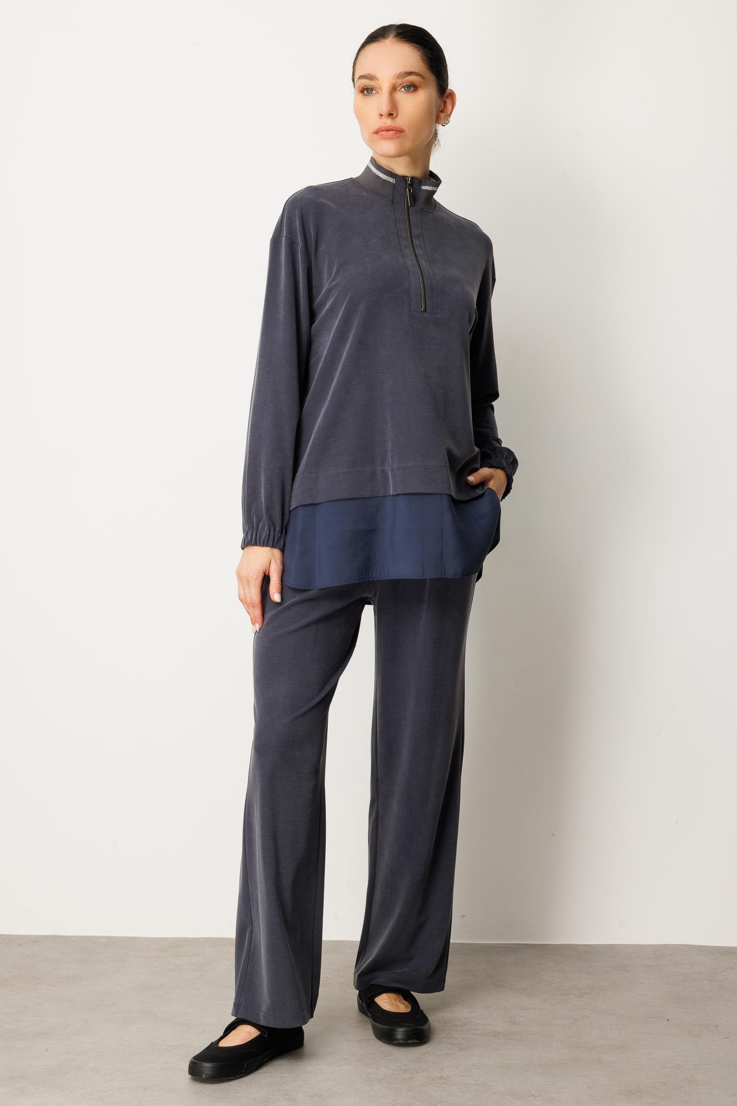 Micca 252827M Yarım Fermuar Yakası Biyeli Pantolonlu Takım - Lacivert