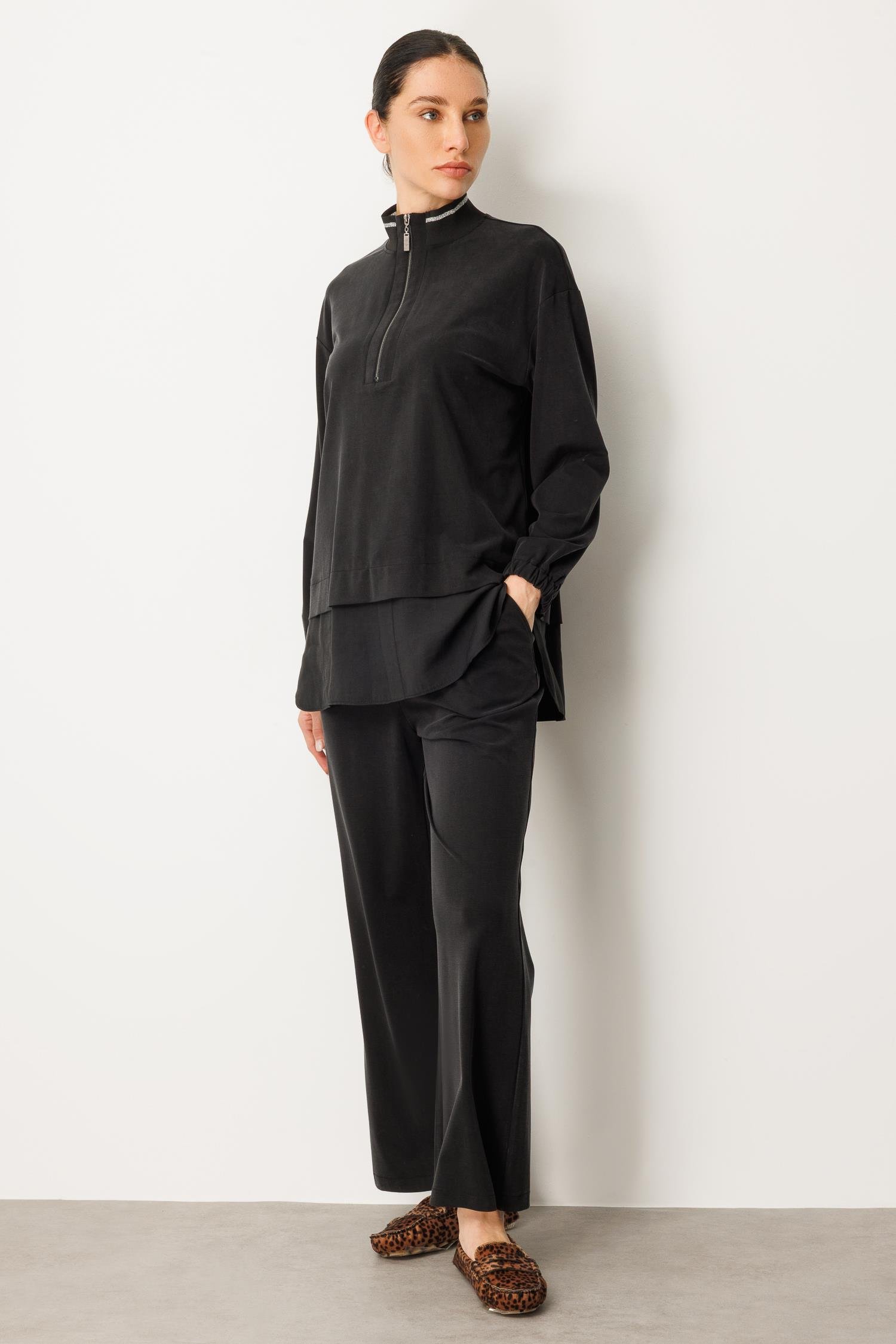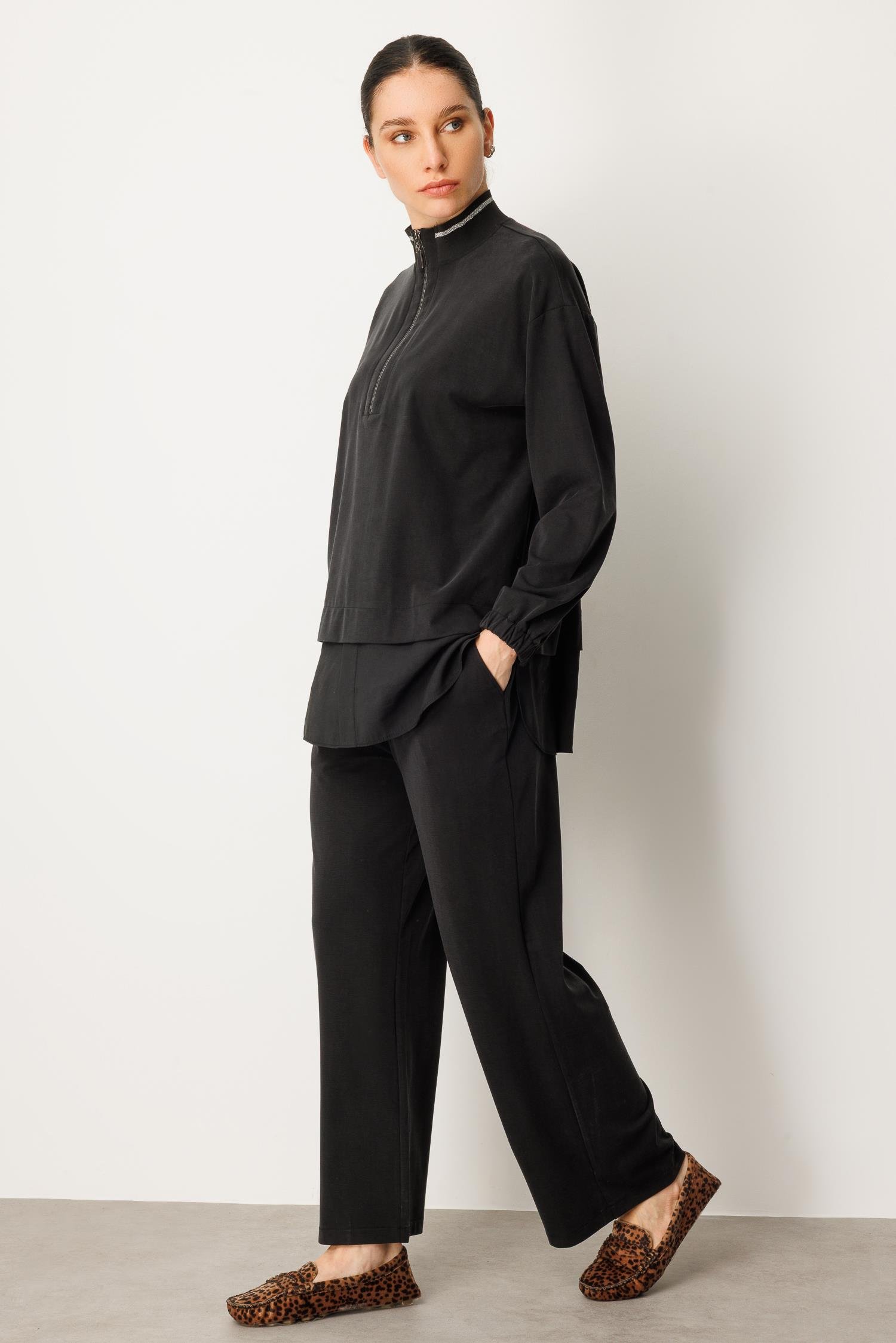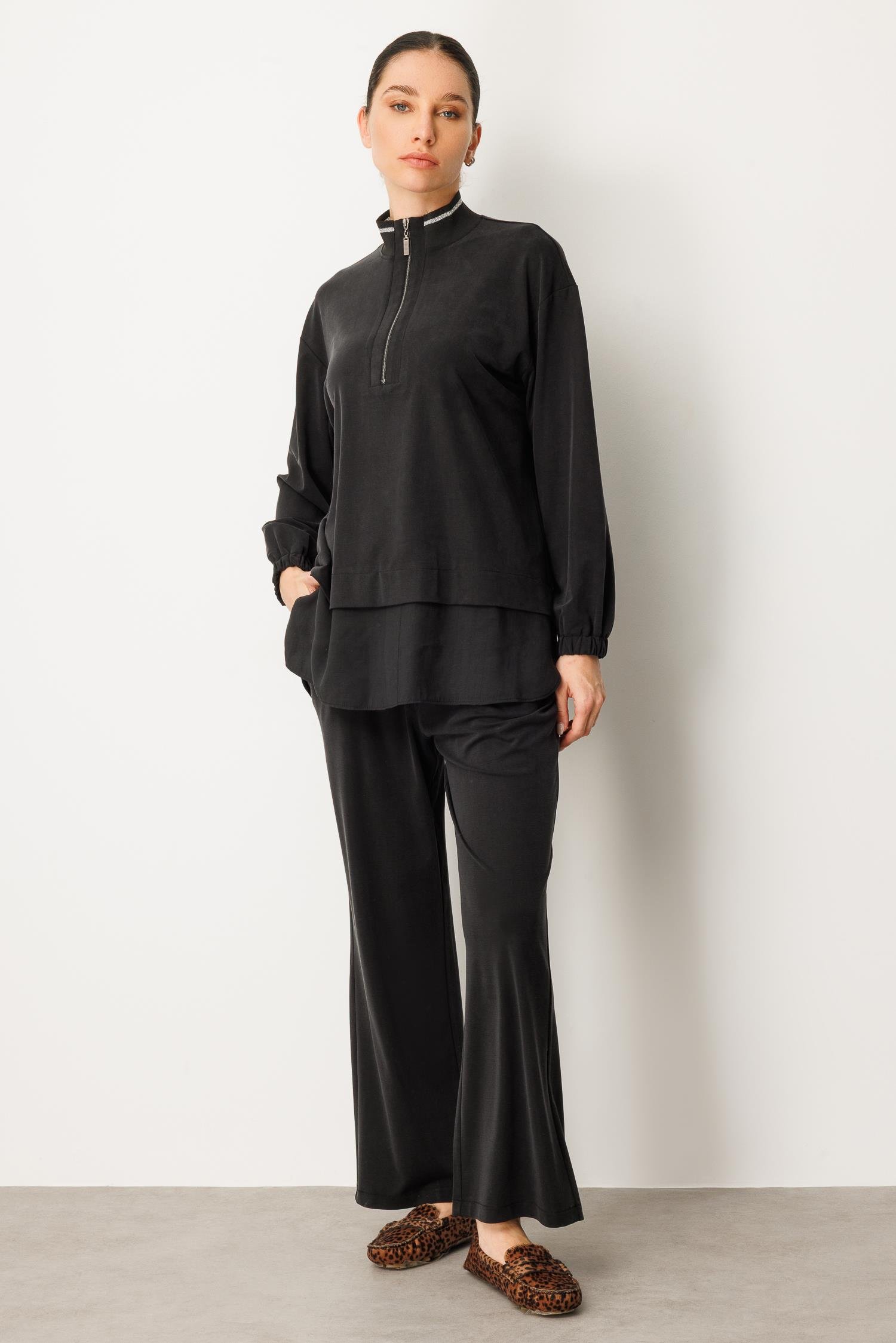 Micca 252827M Yarım Fermuar Yakası Biyeli Pantolonlu Takım - Siyah