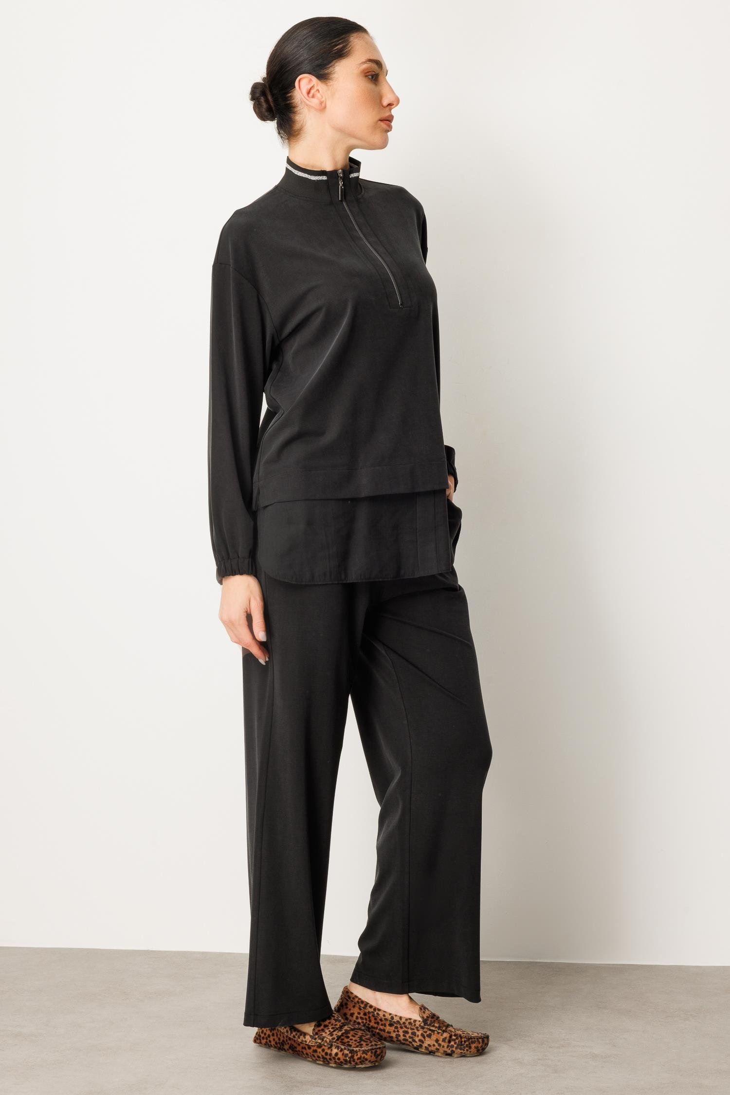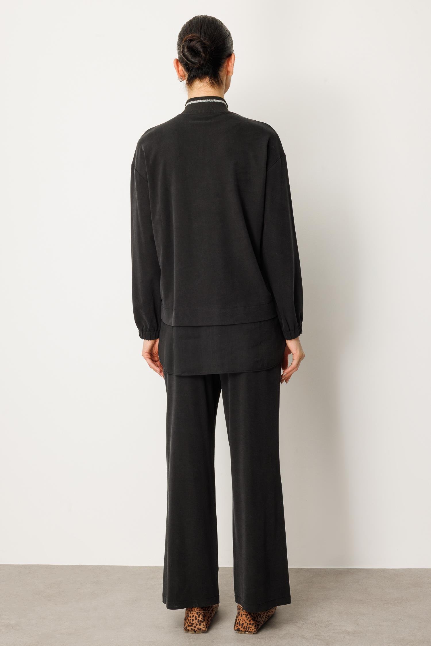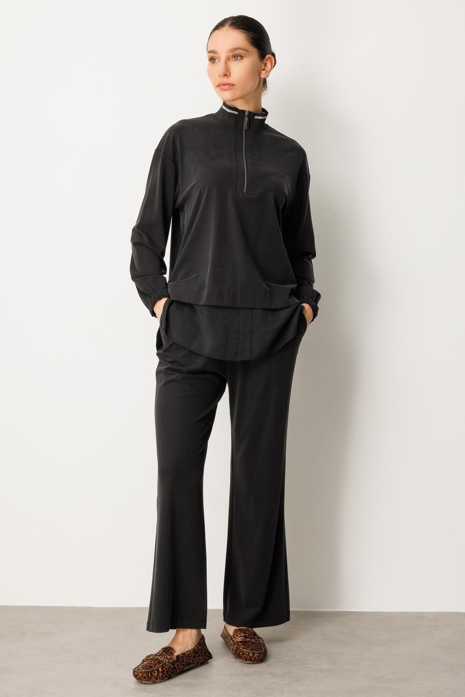 Micca 252827M Yarım Fermuar Yakası Biyeli Pantolonlu Takım - Siyah