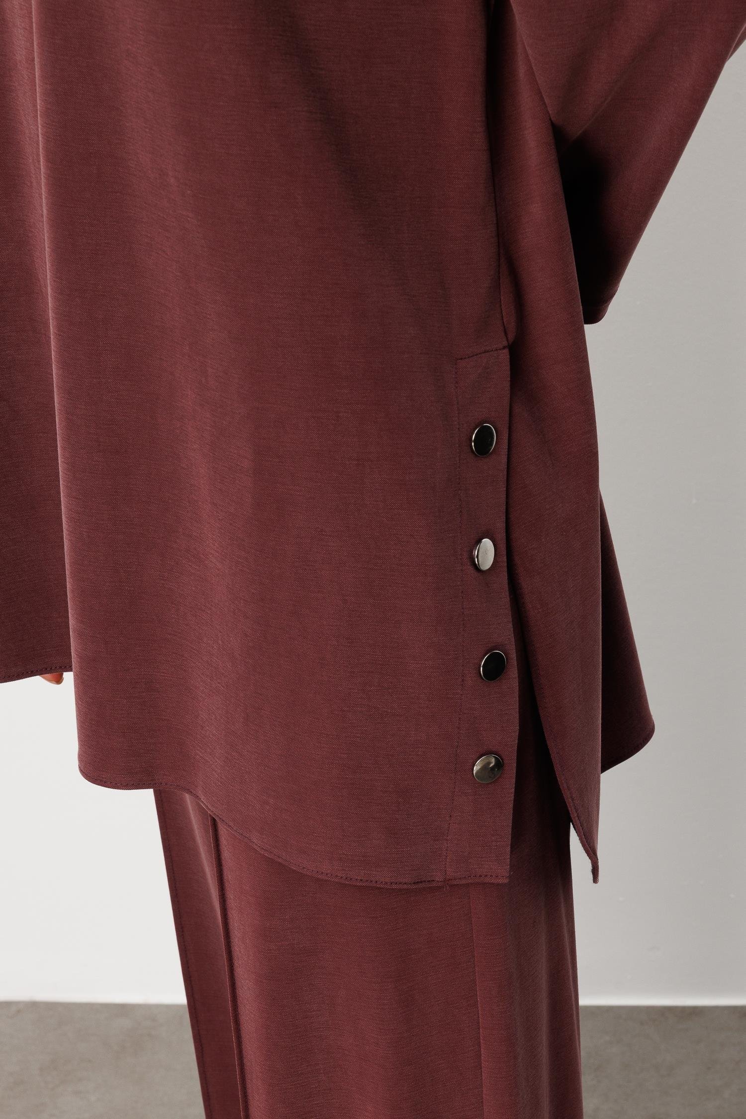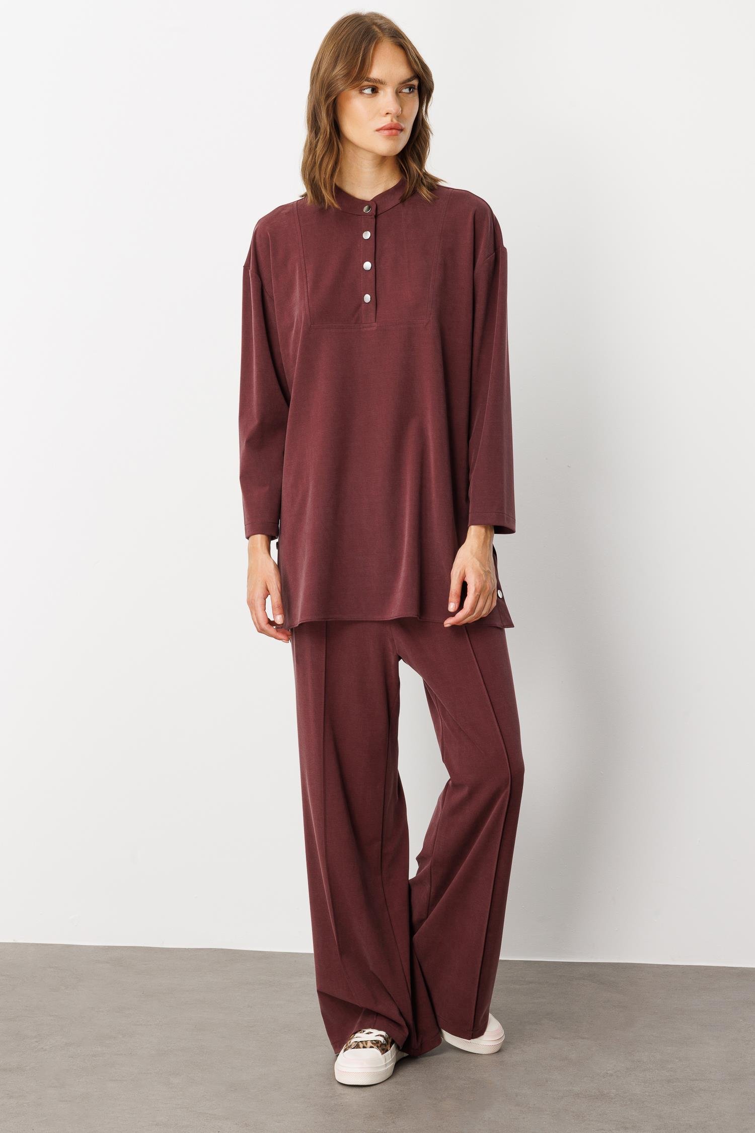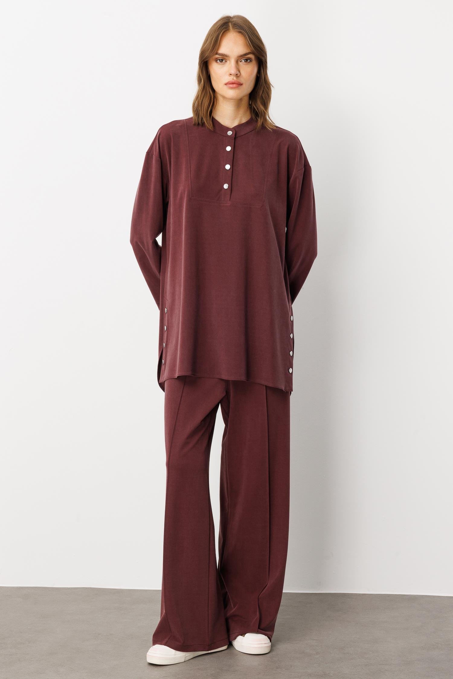 Micca 252845M Çıtçıt Detay Pantolonlu Takım - Bordo (350103909)