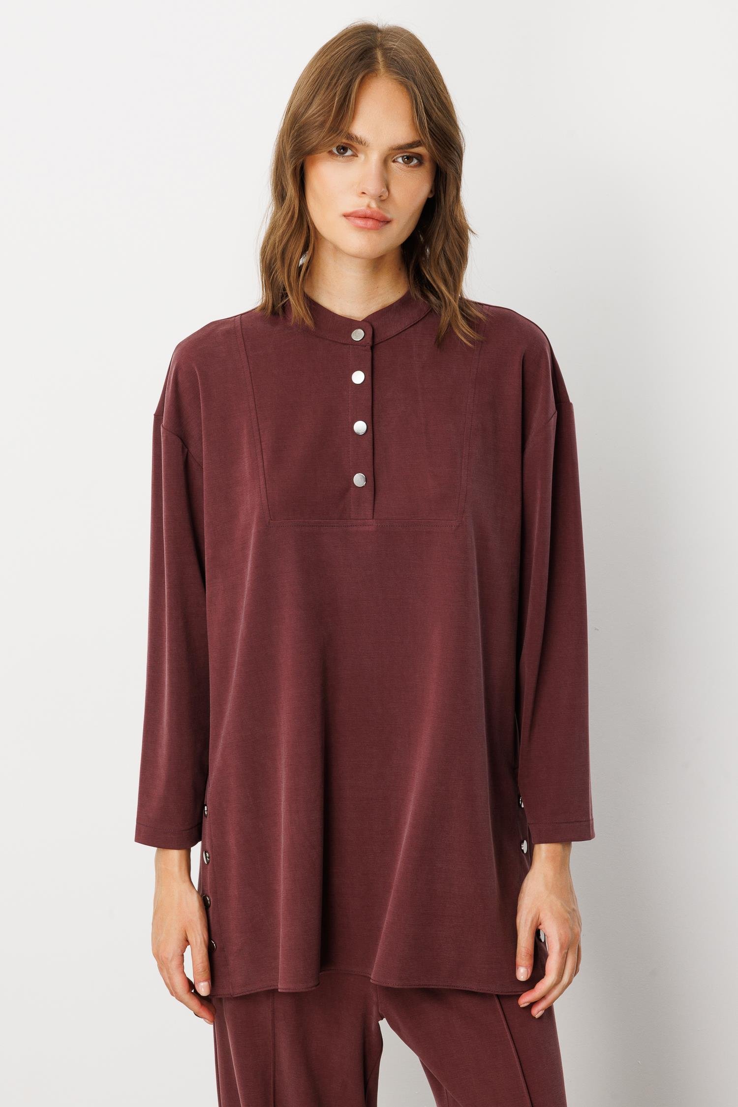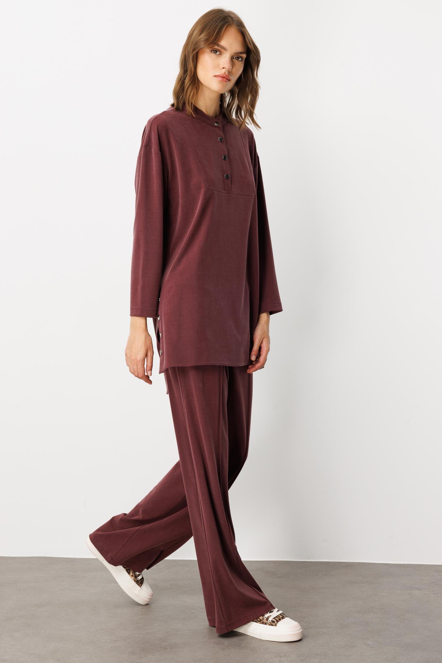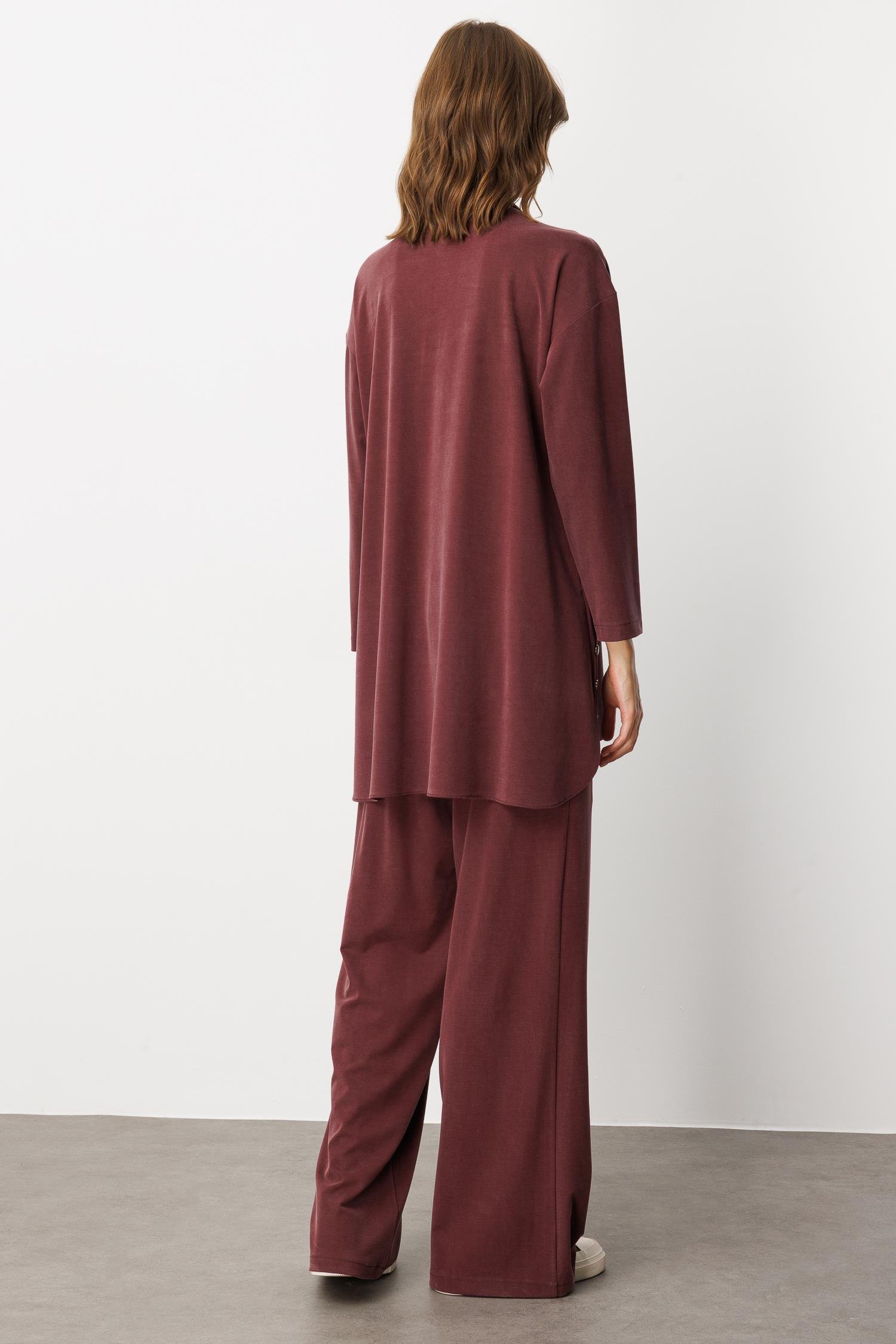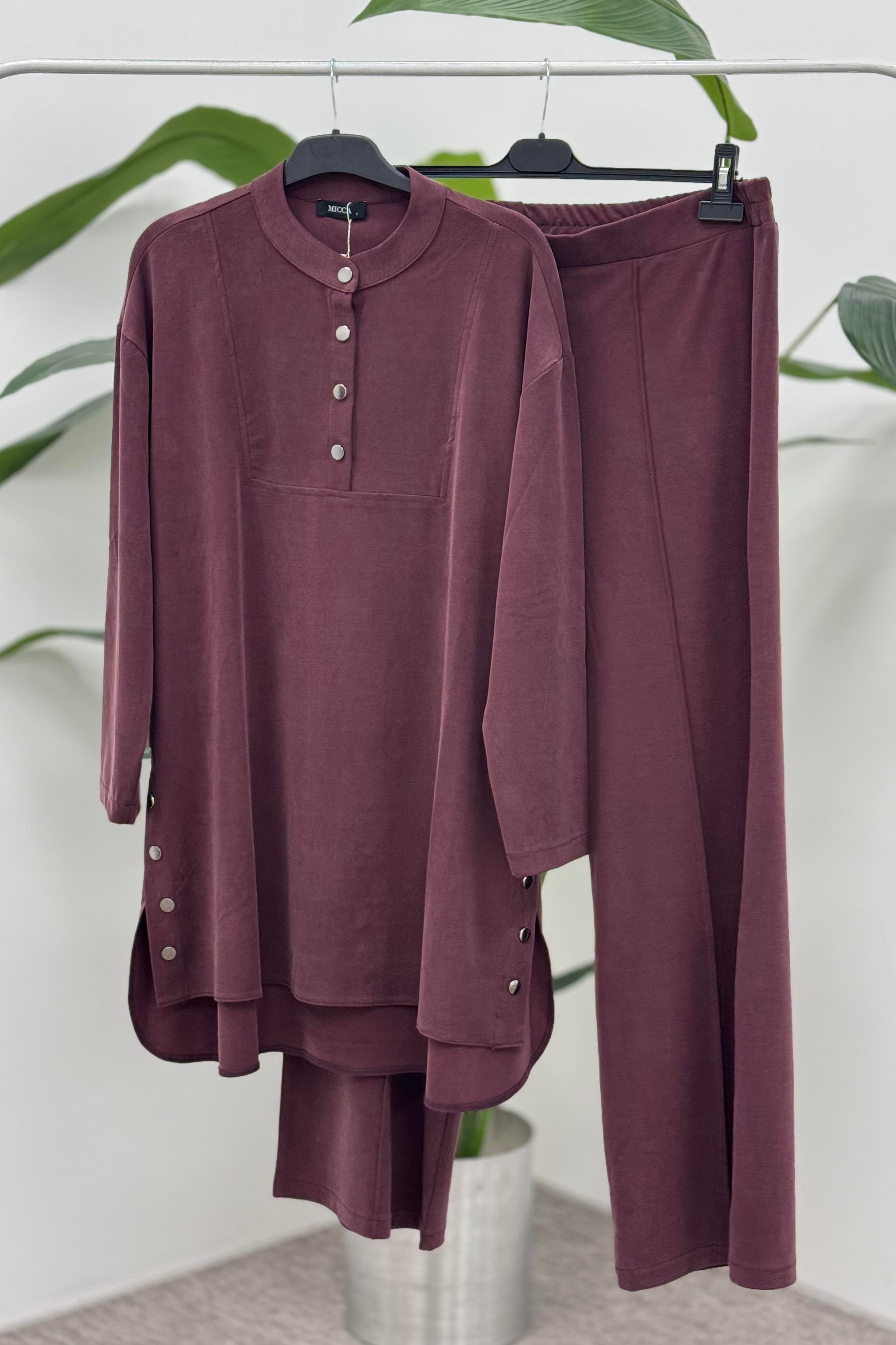 Micca 252845M Çıtçıt Detay Pantolonlu Takım - Bordo (350103909)